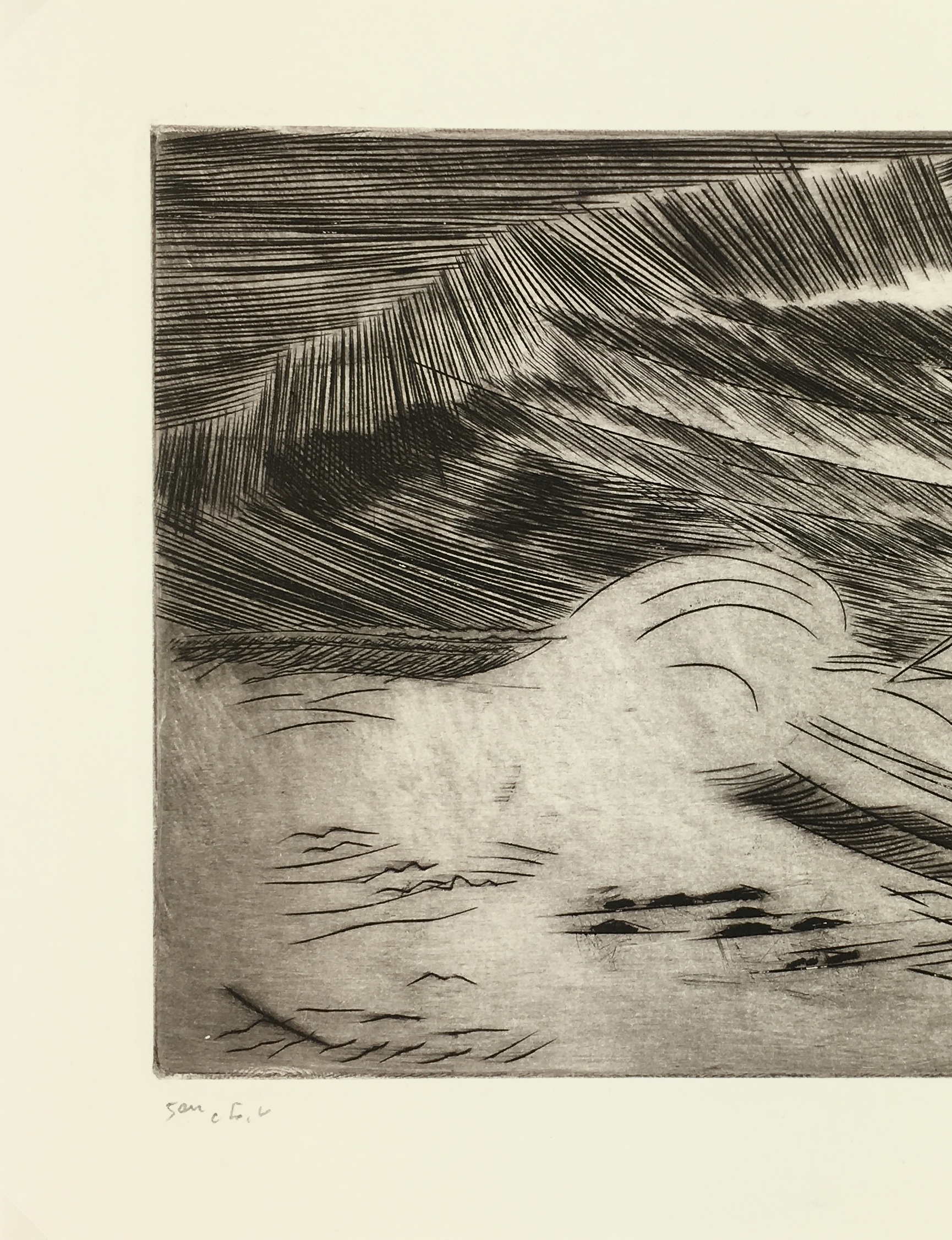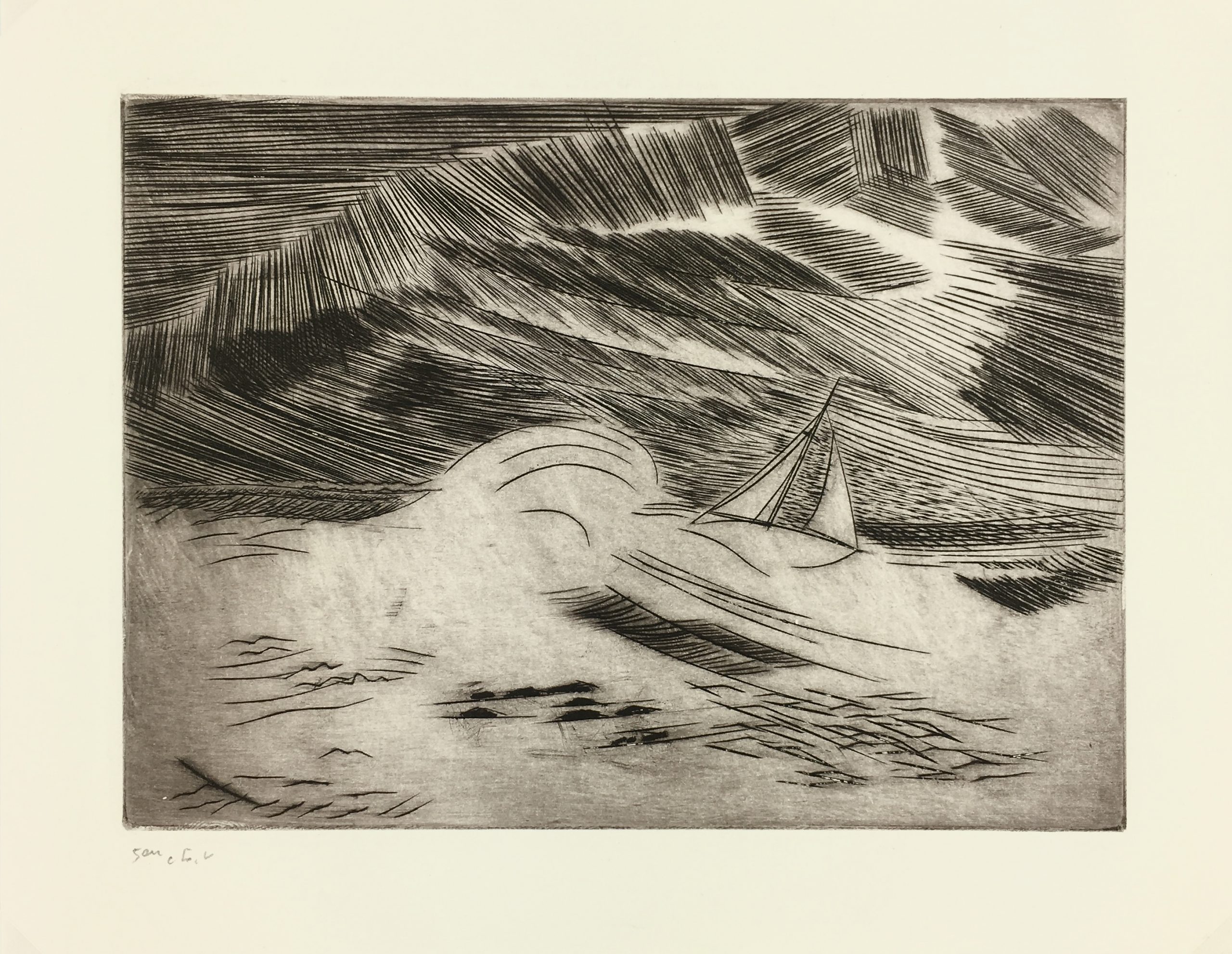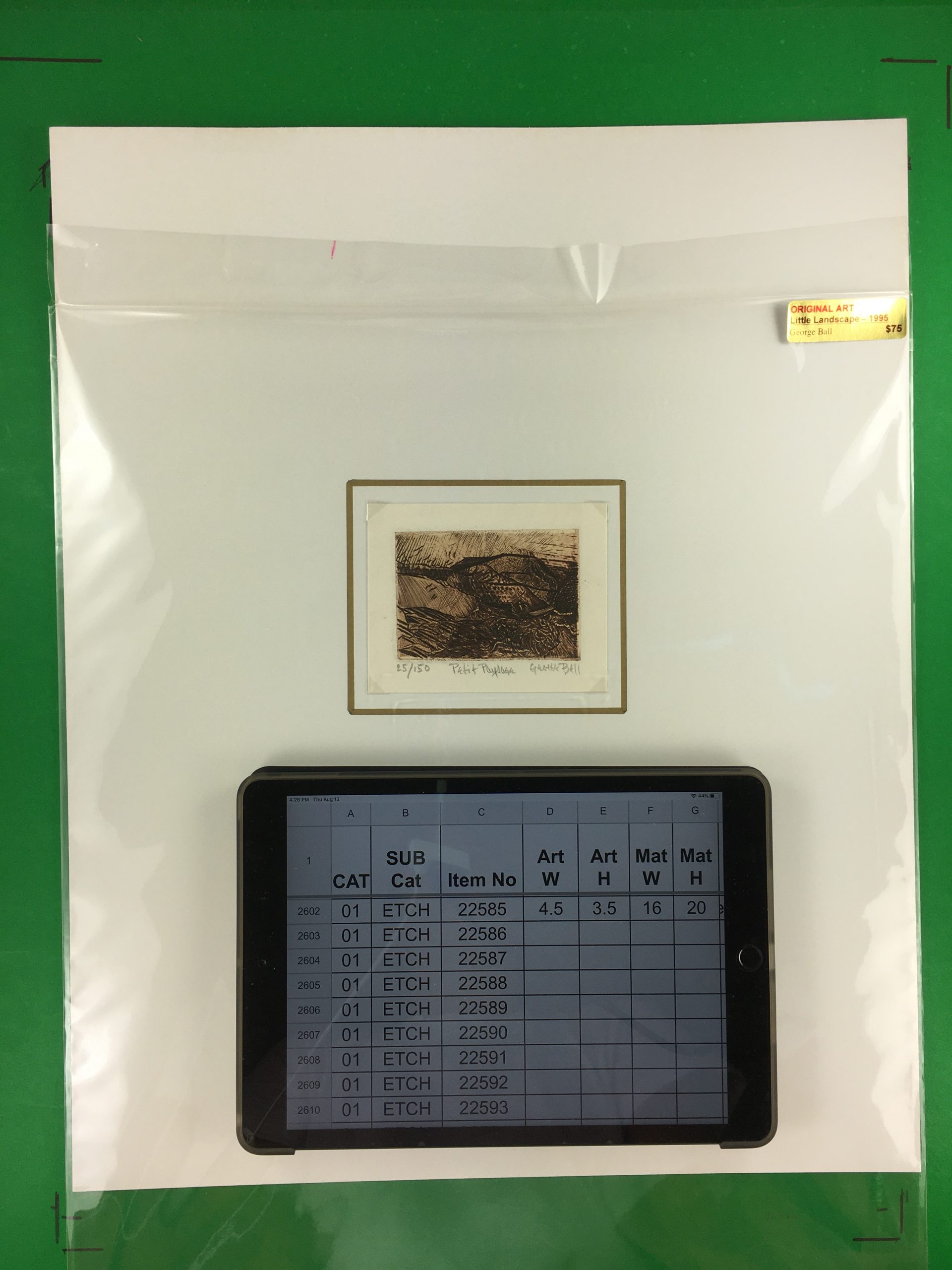 Original Art on paper displayed on a white mat with a gold border. Mat fits a standard-size frame. Archival plastic sleeve and Certificate of Authenticity included. Original Art, 8.5″W x 6.75″H; mat, 16″W x 20″H.