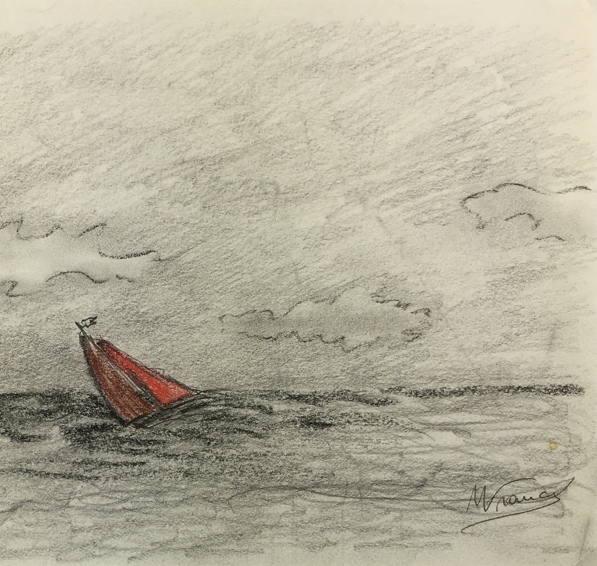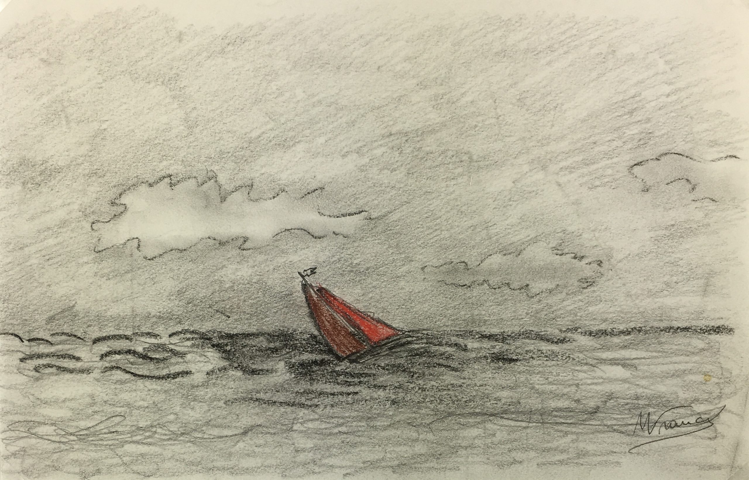 Original Art on paper displayed on a white mat with a gold border. Mat fits a standard-size frame. Archival plastic sleeve and Certificate of Authenticity included. Original Art, 10.5″W x 7″H; mat, 16″W x 20″H.