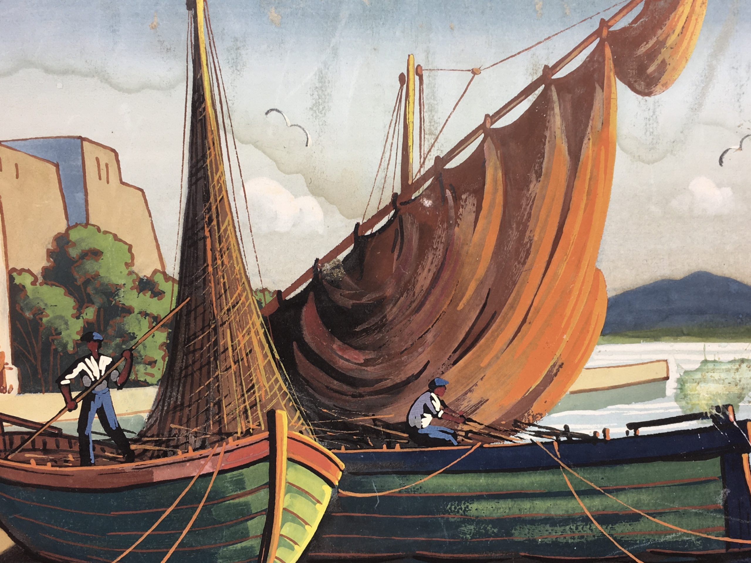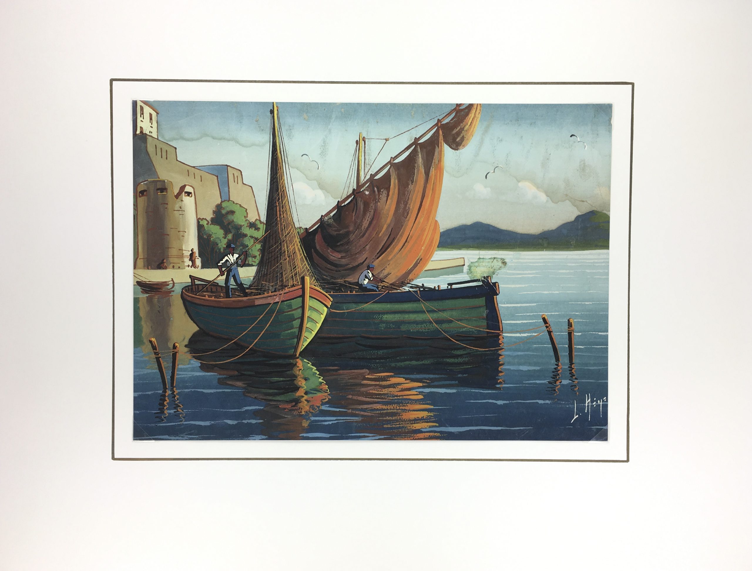 Maritime Original Art – Fishermen, L. Heron, C.1950