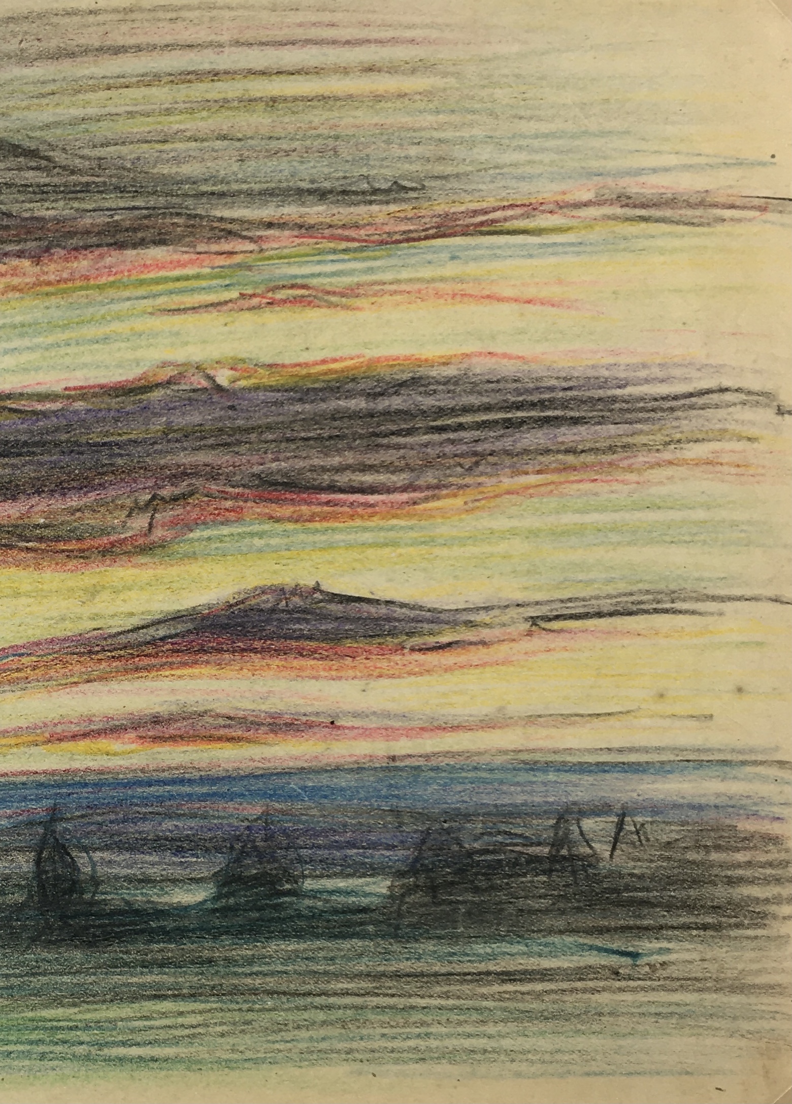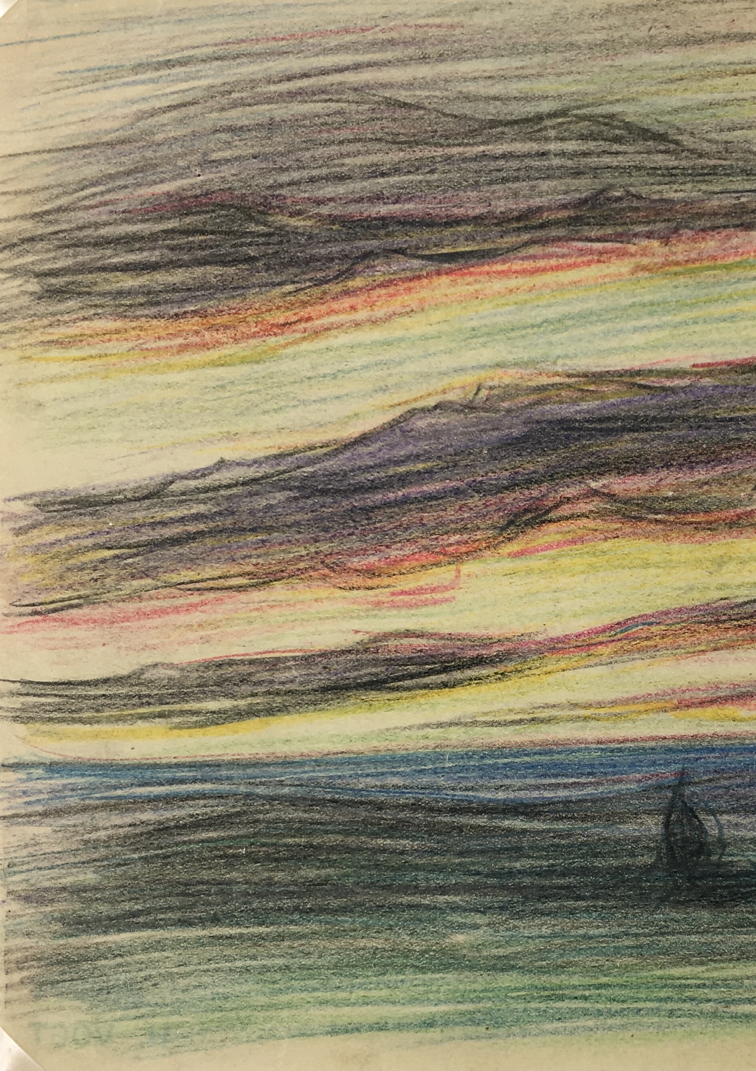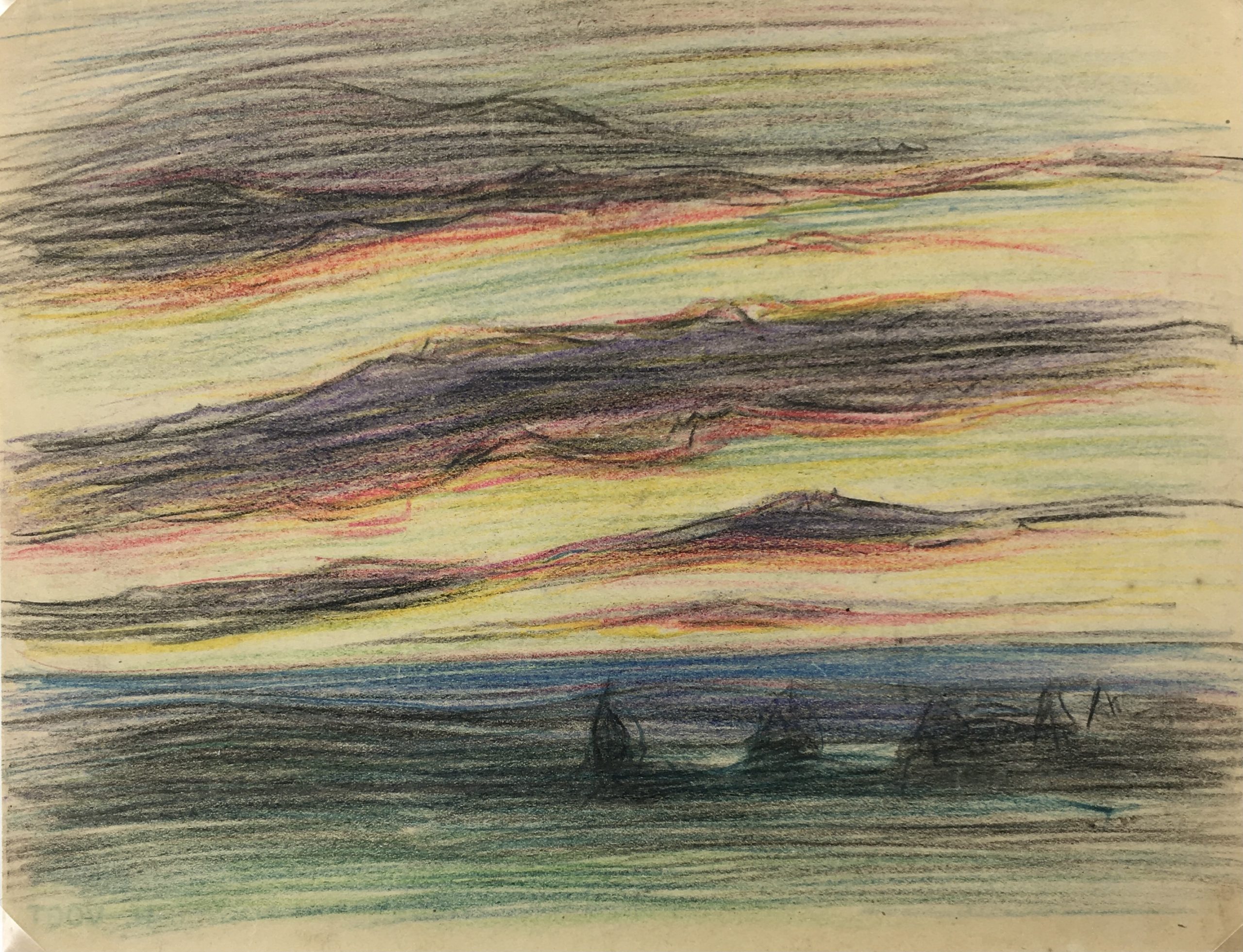 Maritime Original Art – Sunset Sail, French, c.1960