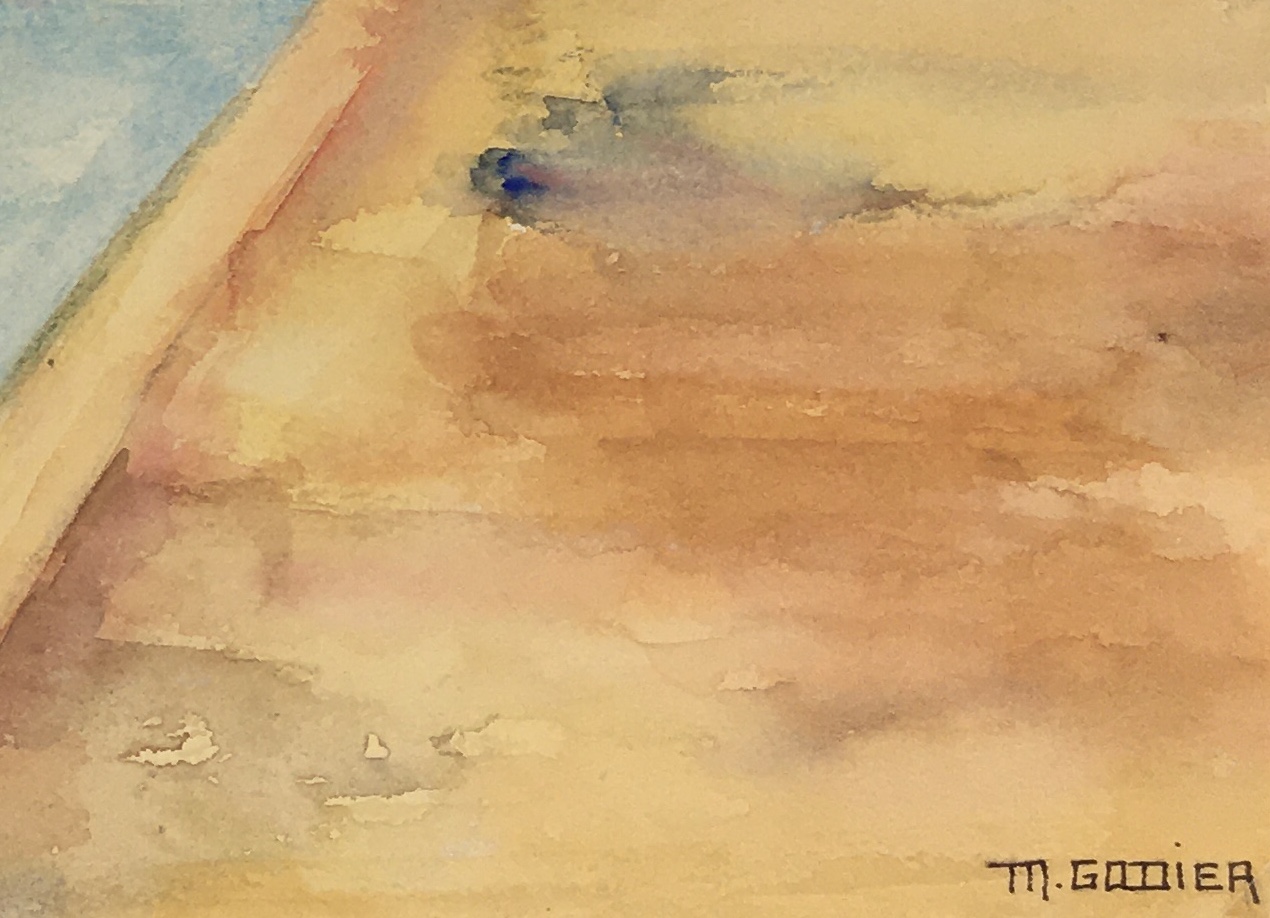Original Art on paper displayed on a white mat with a gold border. Mat fits a standard-size frame. Archival plastic sleeve and Certificate of Authenticity included. Original Art, 13.25″W x 17″H; mat, 18″W x 24″H.