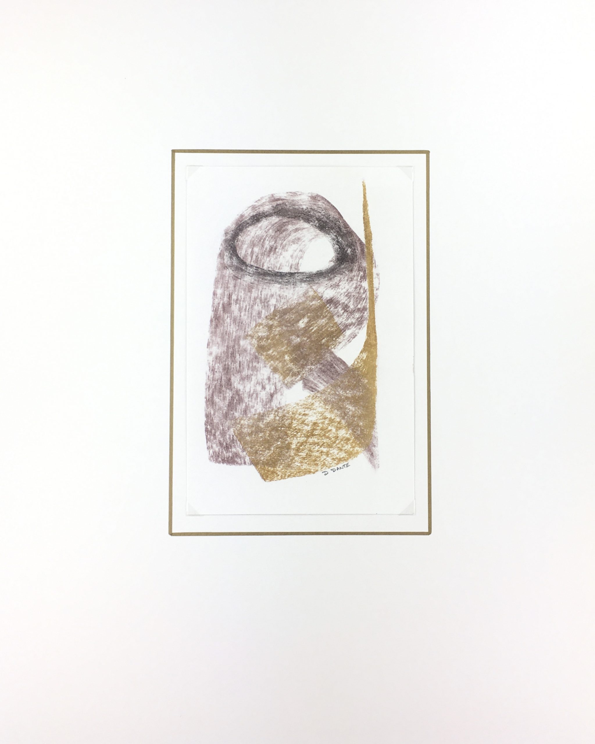 Original Art on paper displayed on a white mat with a gold border. Mat fits a standard-size frame. Archival plastic sleeve and Certificate of Authenticity included. Original Art, 5.75″W x 9″H; mat, 16″W x 20″H.