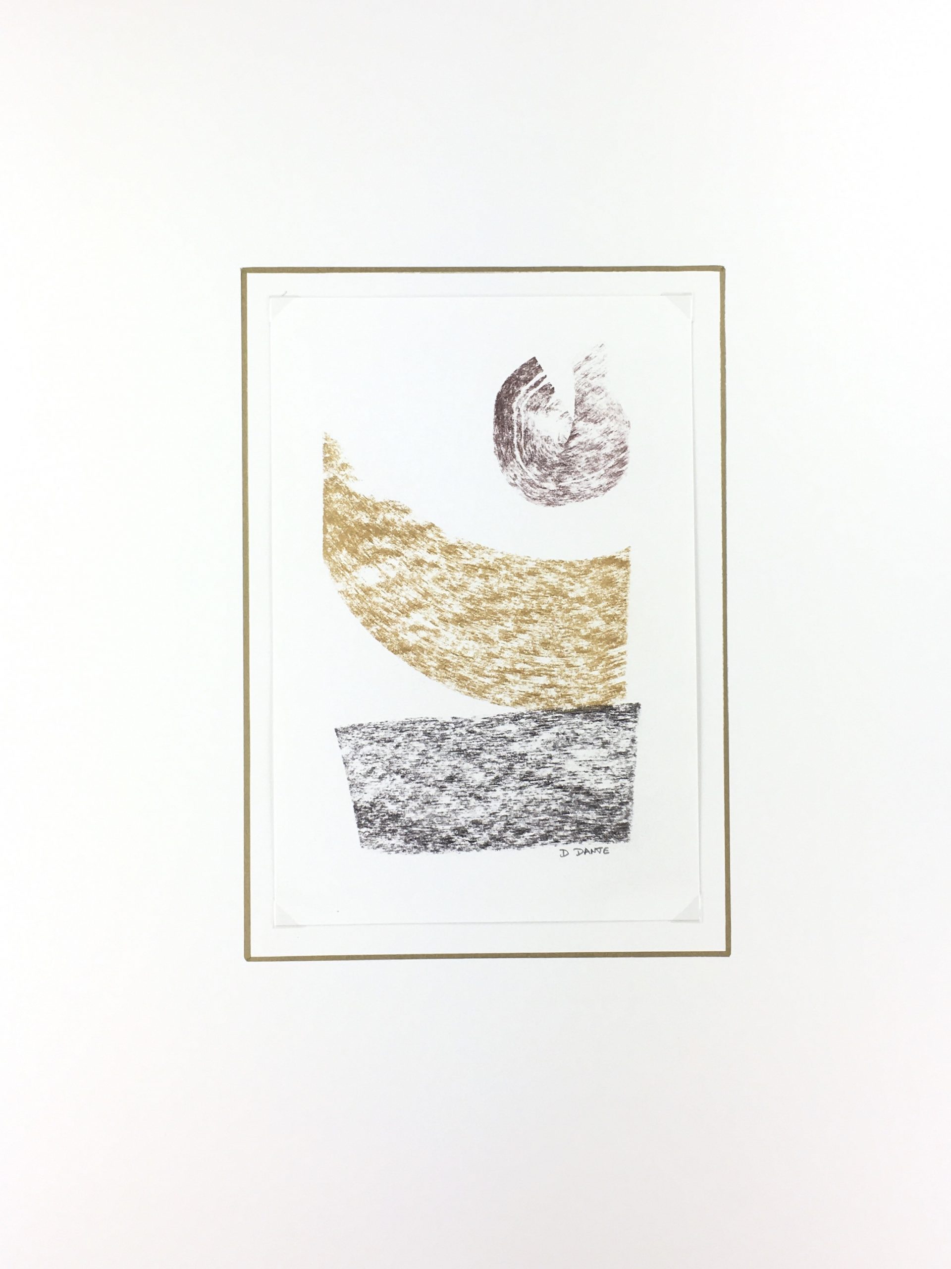 Original Art on paper displayed on a white mat with a gold border. Mat fits a standard-size frame. Archival plastic sleeve and Certificate of Authenticity included. Original Art, 5.75″W x 9″H; mat, 16″W x 20″H.