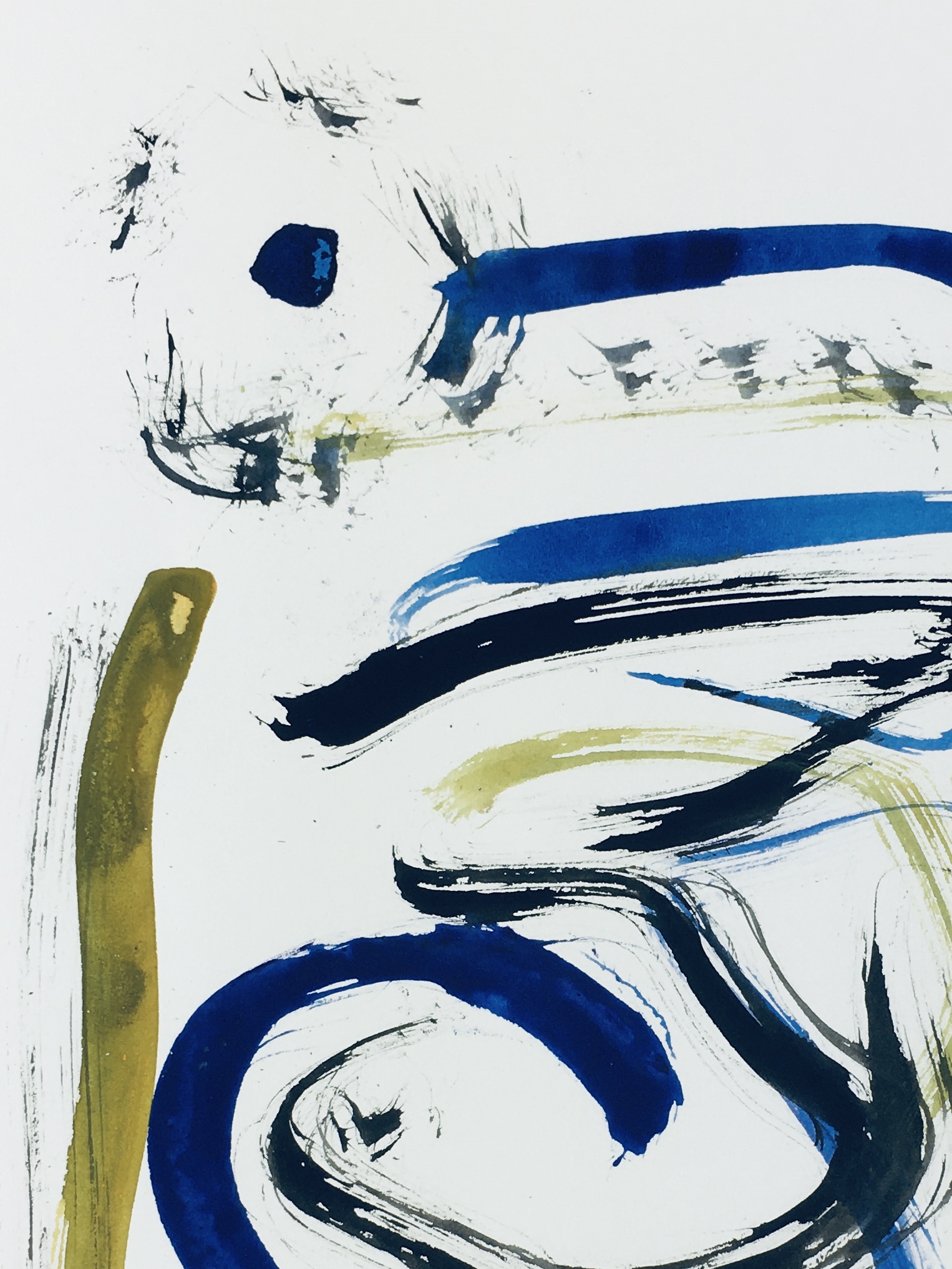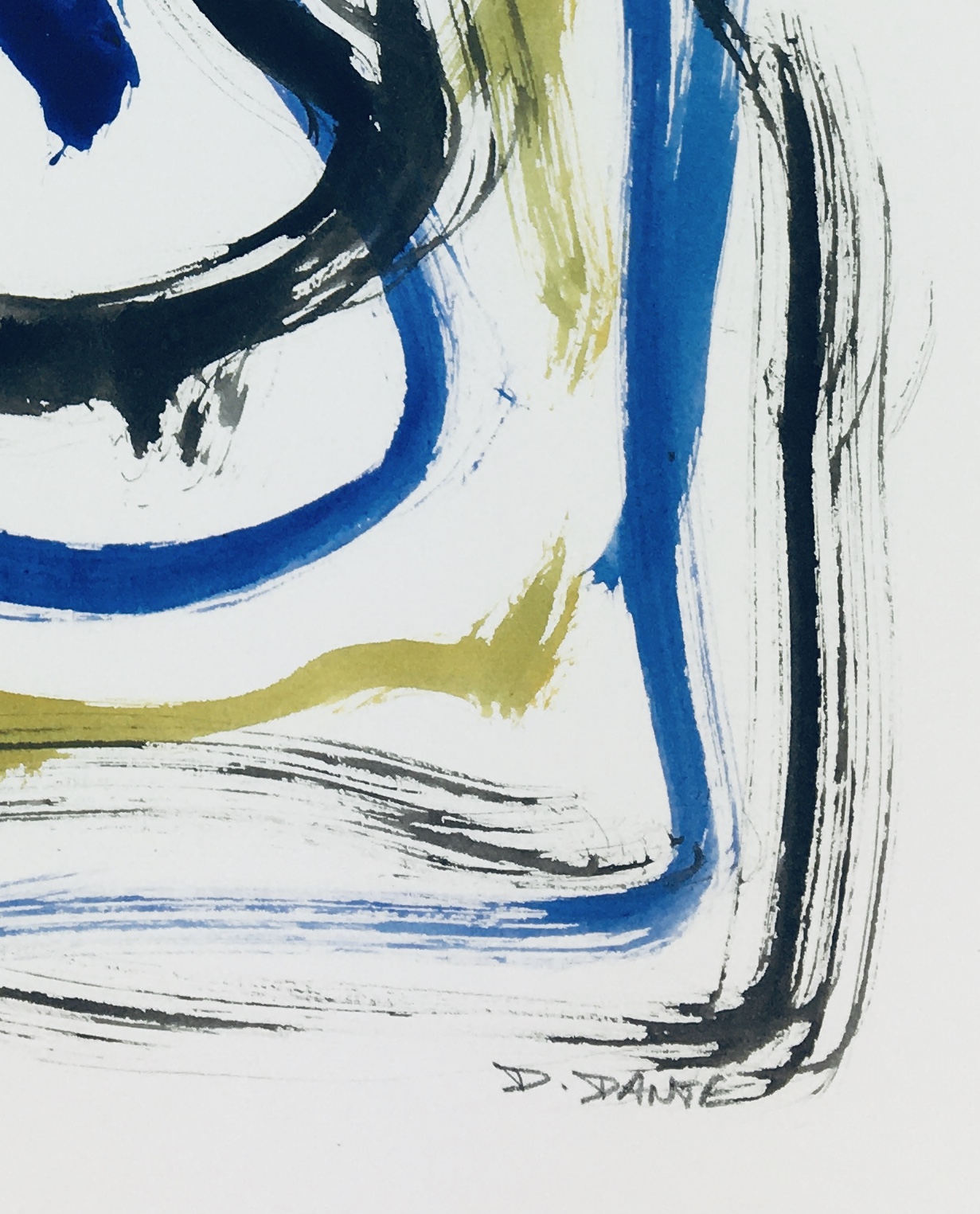 Original Art on paper displayed on a white mat with a gold border. Mat fits a standard-size frame. Archival plastic sleeve and Certificate of Authenticity included. Original Art, 9″W x 12″H; mat, 16″W x 20″H.