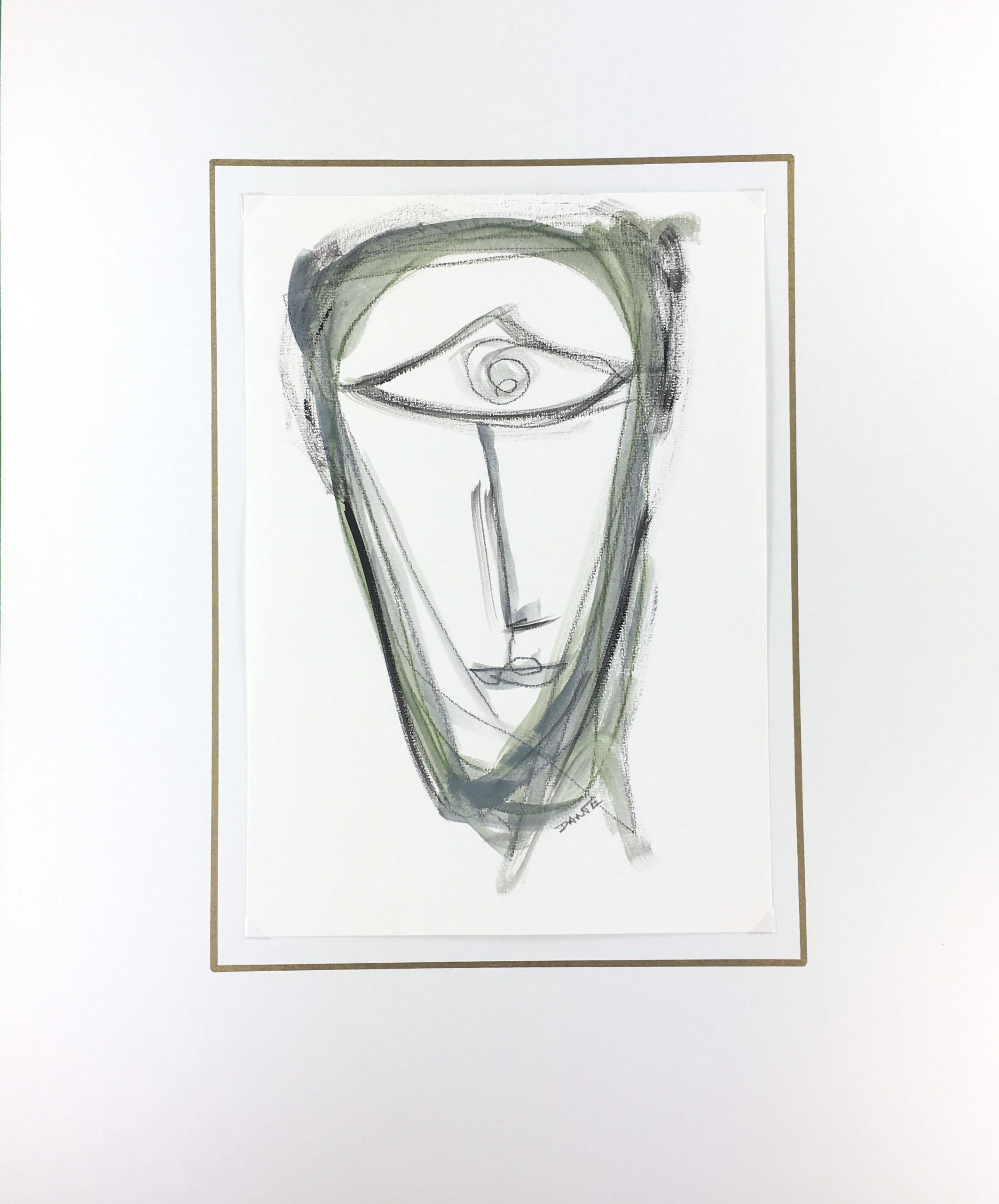Original Art on paper displayed on a white mat with a gold border. Mat fits a standard-size frame. Archival plastic sleeve and Certificate of Authenticity included. Original Art, 8.25″W x 11.75″H; mat, 16″W x 20″H.