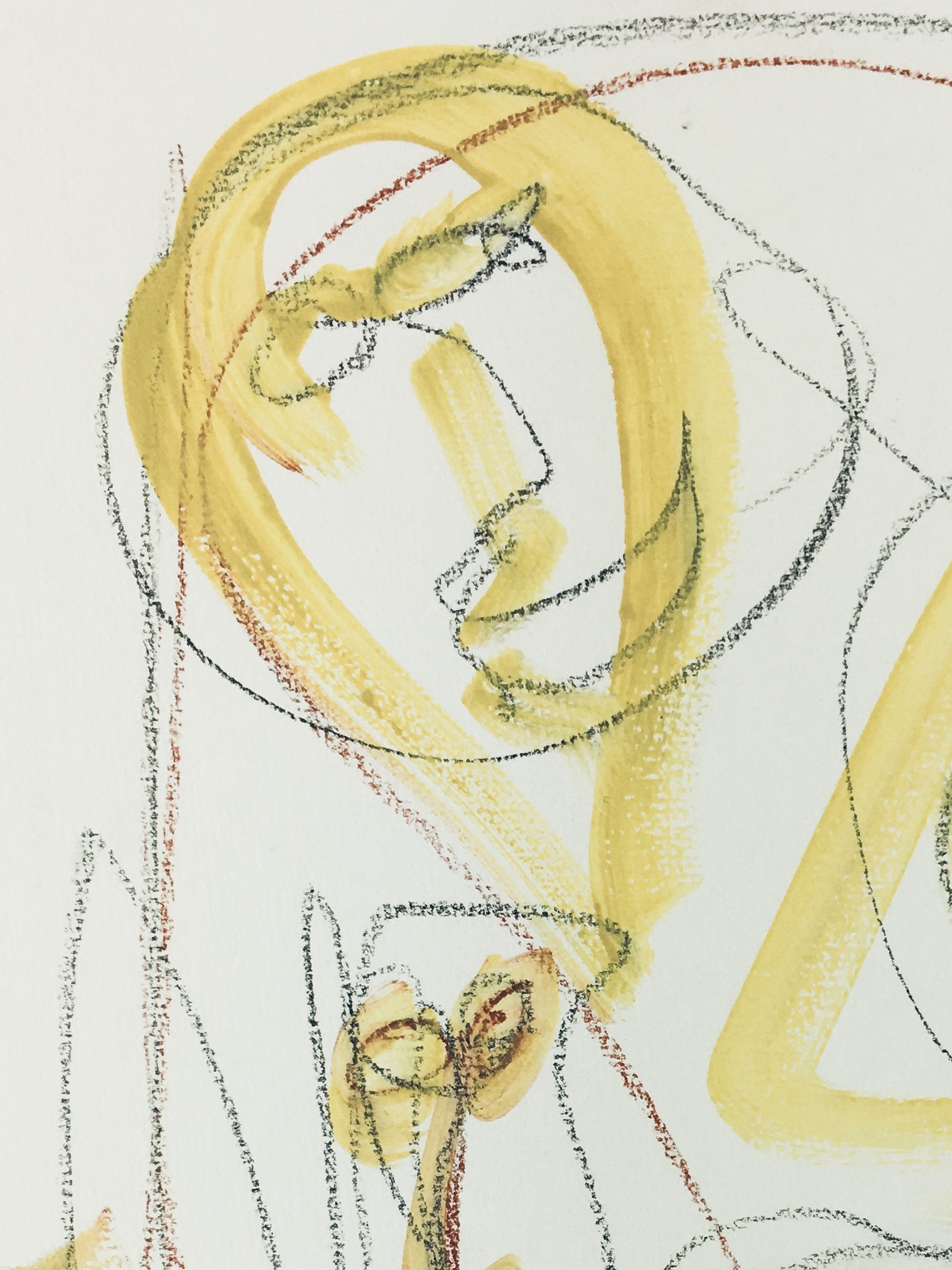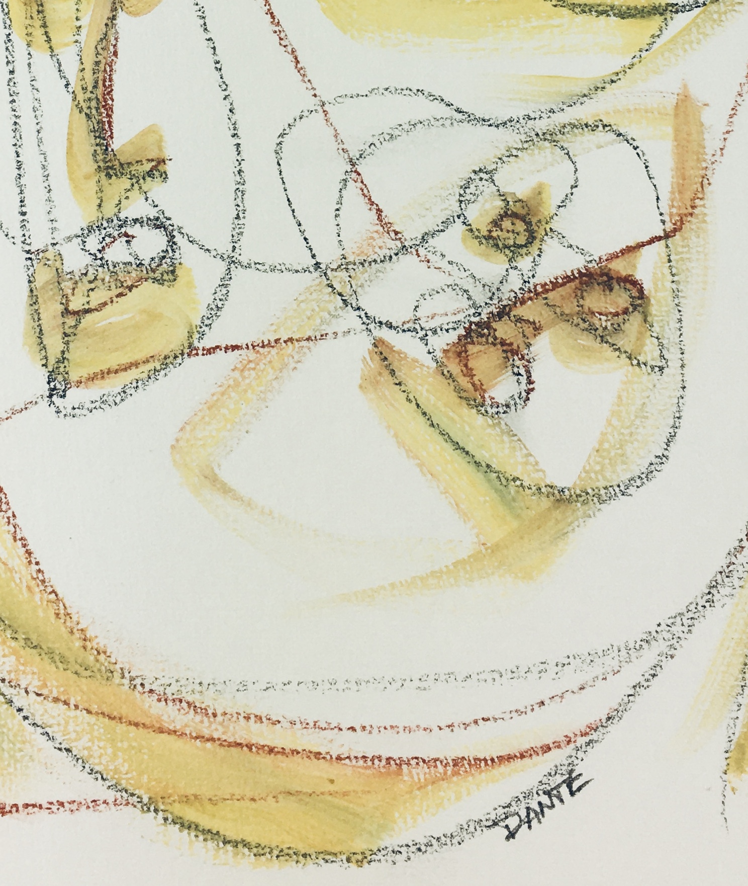 Original Art on paper displayed on a white mat with a gold border. Mat fits a standard-size frame. Archival plastic sleeve and Certificate of Authenticity included. Original Art, 8.25″W x 11.75″H; mat, 16″W x 20″H.
