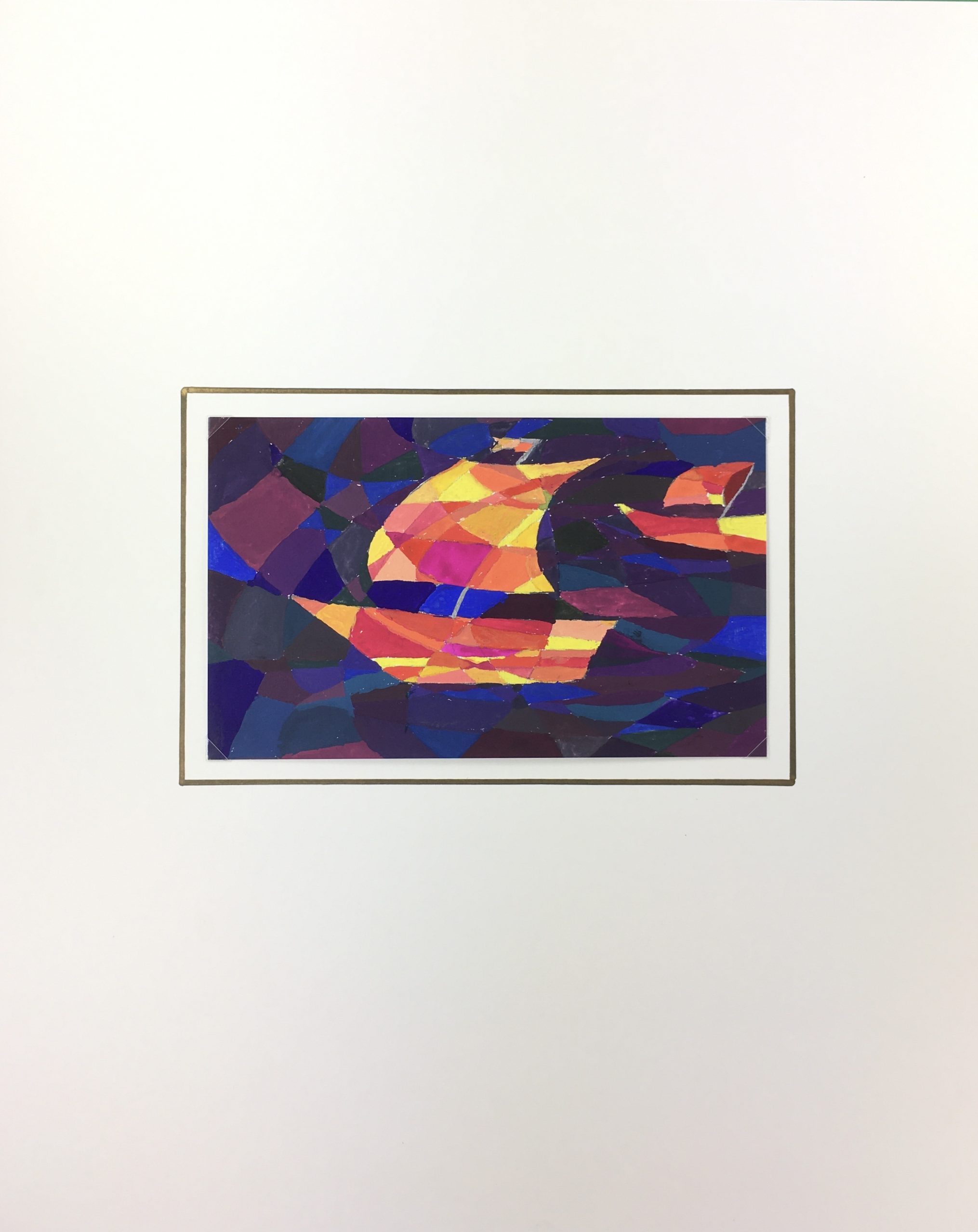 Original Art on paper displayed on a white mat with a gold border. Mat fits a standard-size frame. Archival plastic sleeve and Certificate of Authenticity included. Original Art, 9″W x 5.5″H; mat, 16″W x 20″H.
