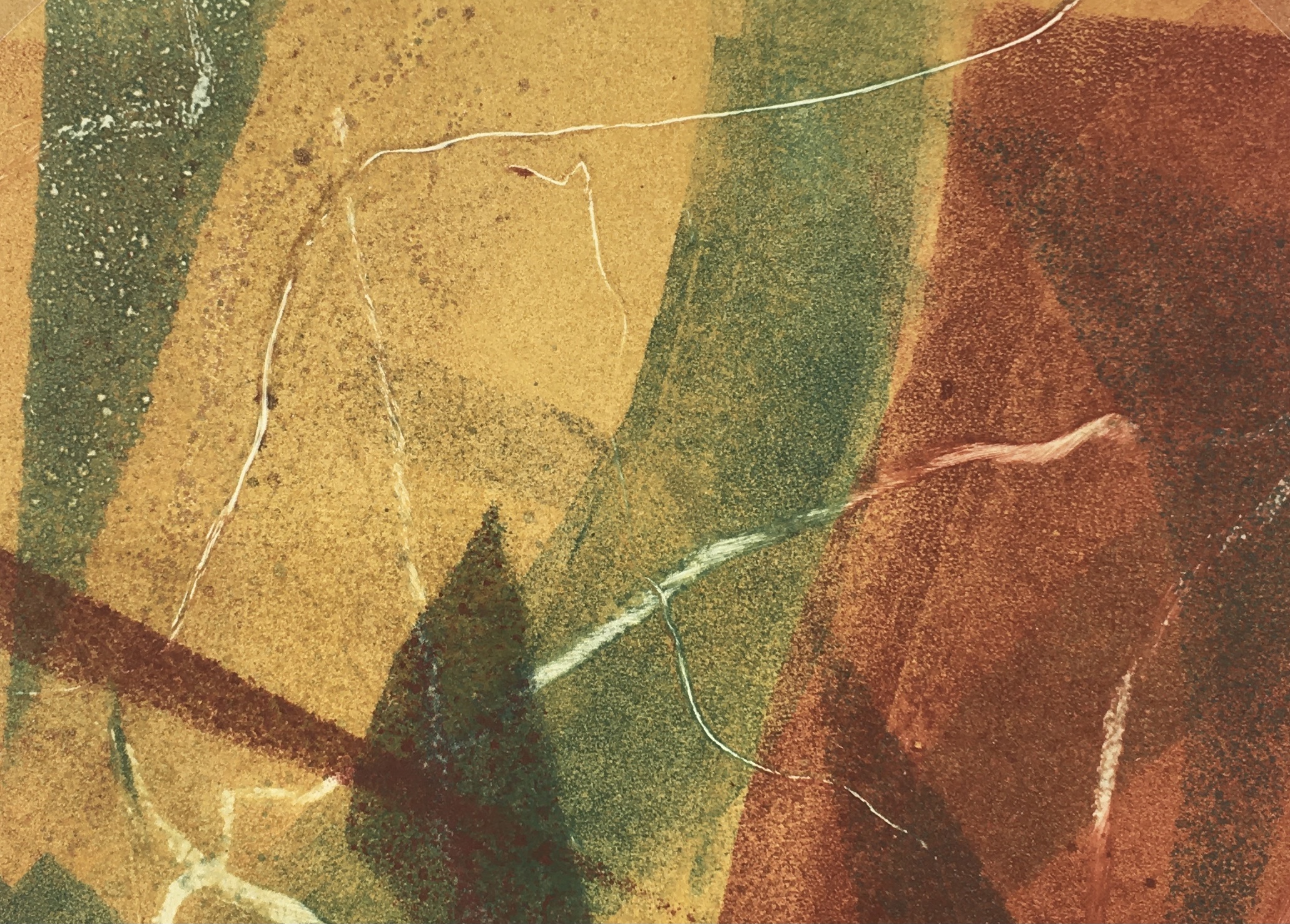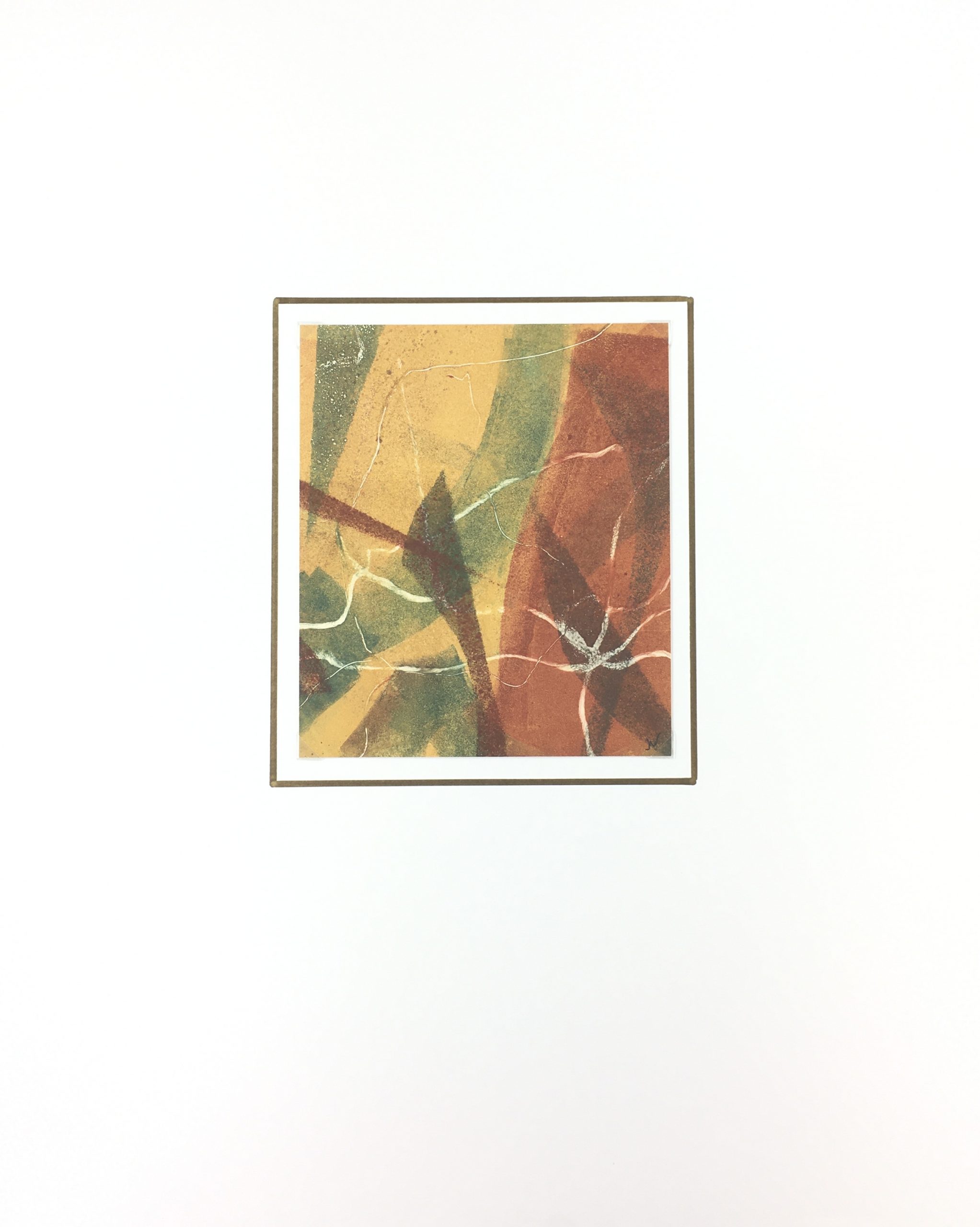 Original Art on paper displayed on a white mat with a gold border. Mat fits a standard-size frame. Archival plastic sleeve and Certificate of Authenticity included. Original Art, 6″W x 6″H; mat, 16″W x 20″H.