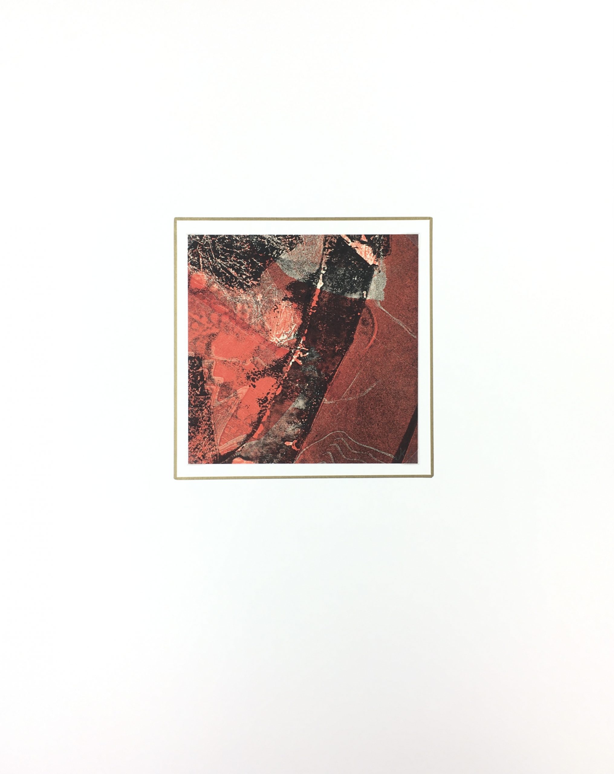 Original Art on paper displayed on a white mat with a gold border. Mat fits a standard-size frame. Archival plastic sleeve and Certificate of Authenticity included. Original Art, 6″W x 6″H; mat, 16″W x 20″H.