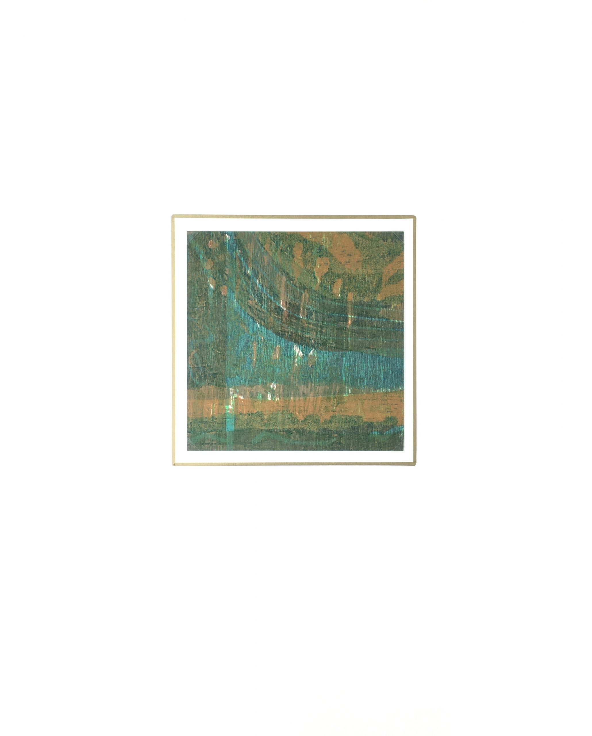 Original Art on paper displayed on a white mat with a gold border. Mat fits a standard-size frame. Archival plastic sleeve and Certificate of Authenticity included. Original Art, 6″W x 6″H; mat, 16″W x 20″H.