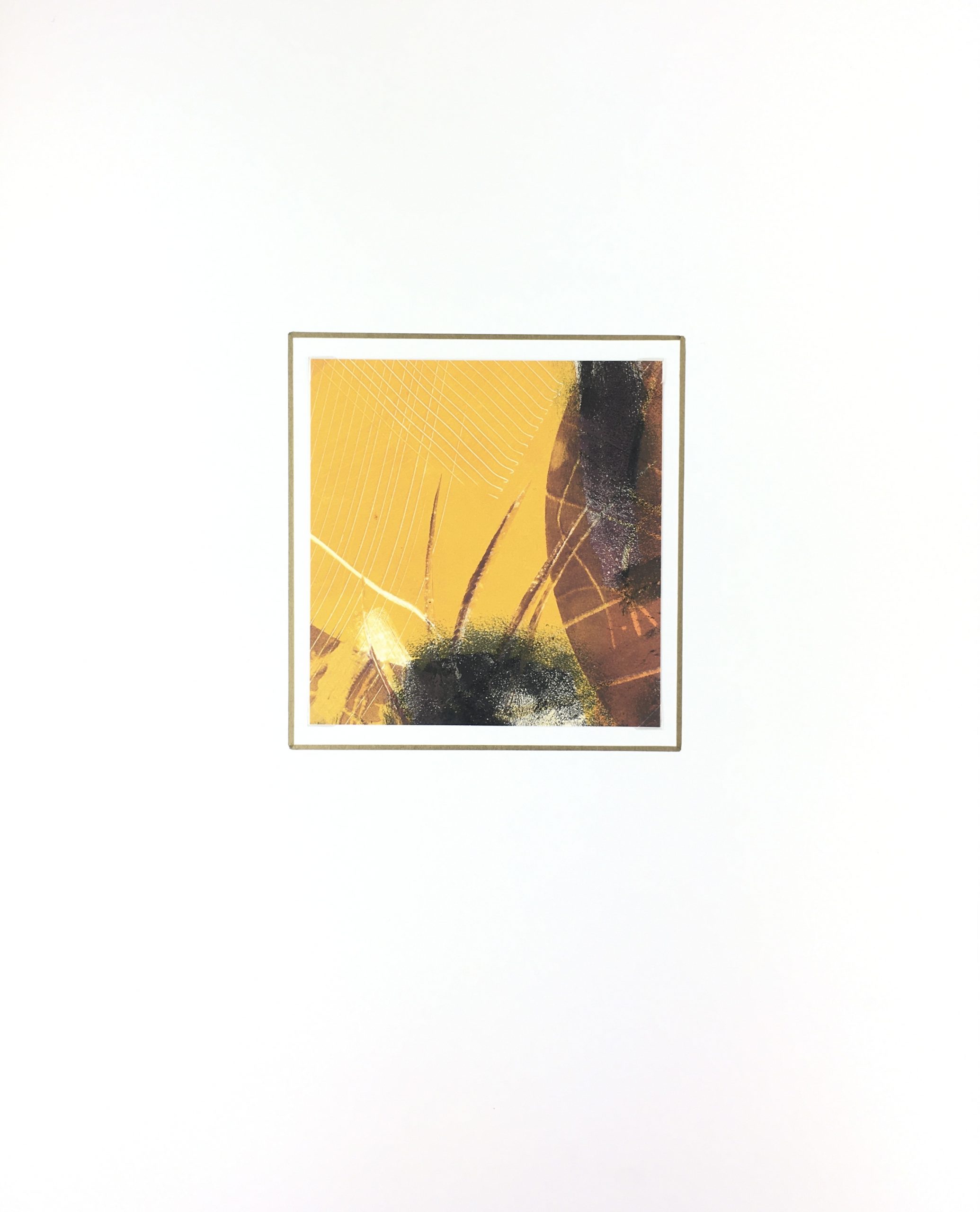 Original Art on paper displayed on a white mat with a gold border. Mat fits a standard-size frame. Archival plastic sleeve and Certificate of Authenticity included. Original Art, 6″W x 6″H; mat, 16″W x 20″H.