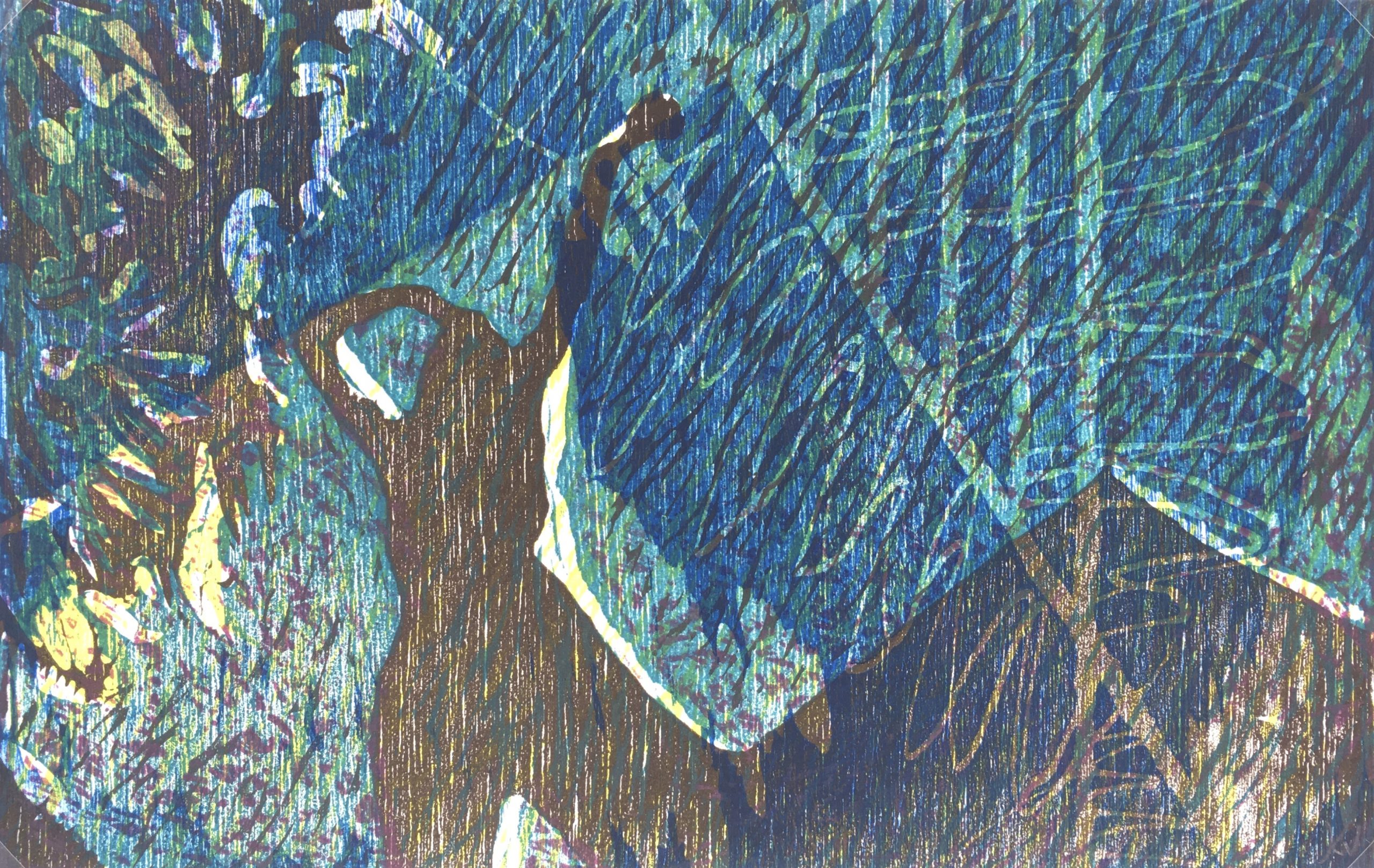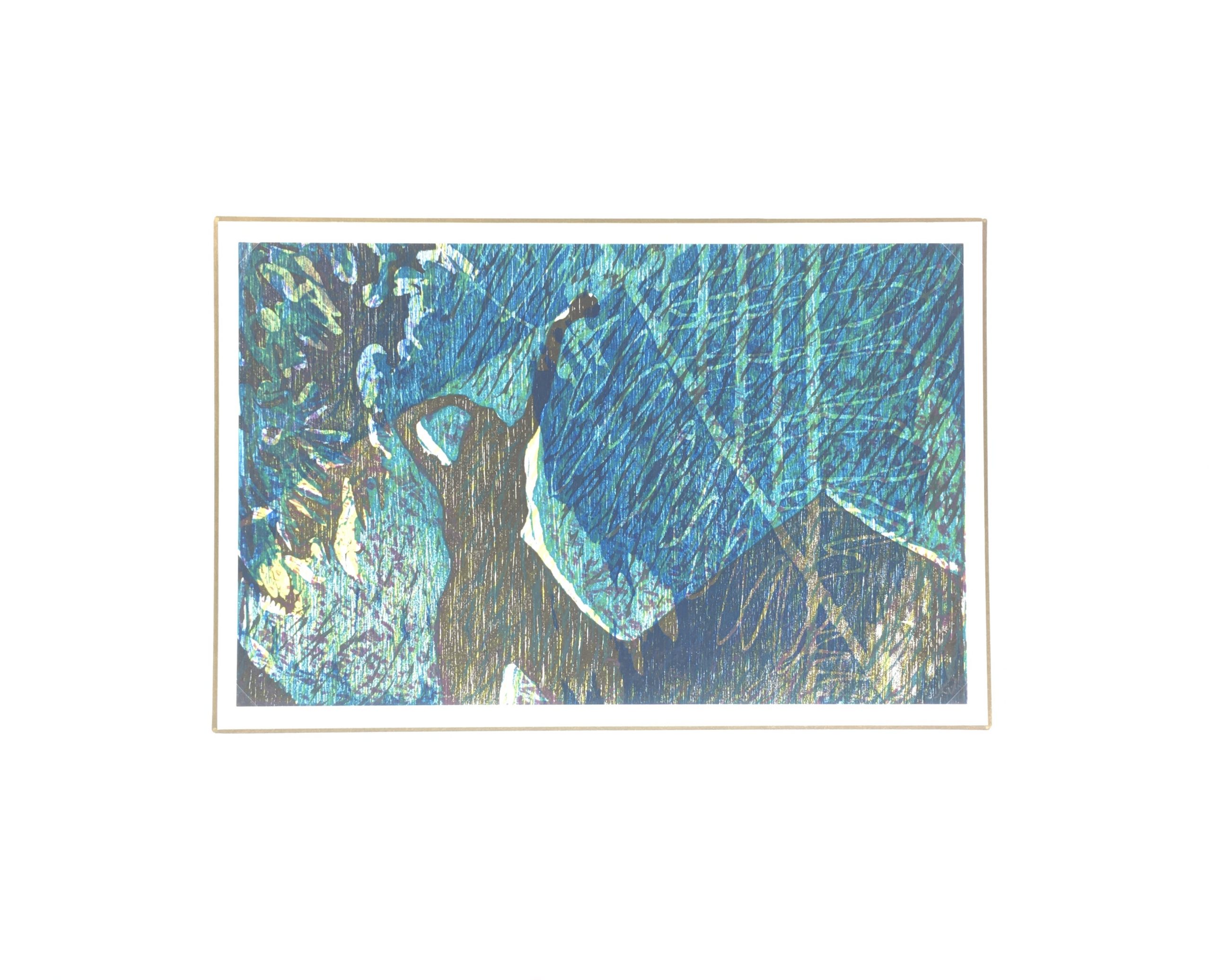 Original Art on paper displayed on a white mat with a gold border. Mat fits a standard-size frame. Archival plastic sleeve and Certificate of Authenticity included. Original Art, 12″W x 7.5″H; mat, 16″W x 20″H.