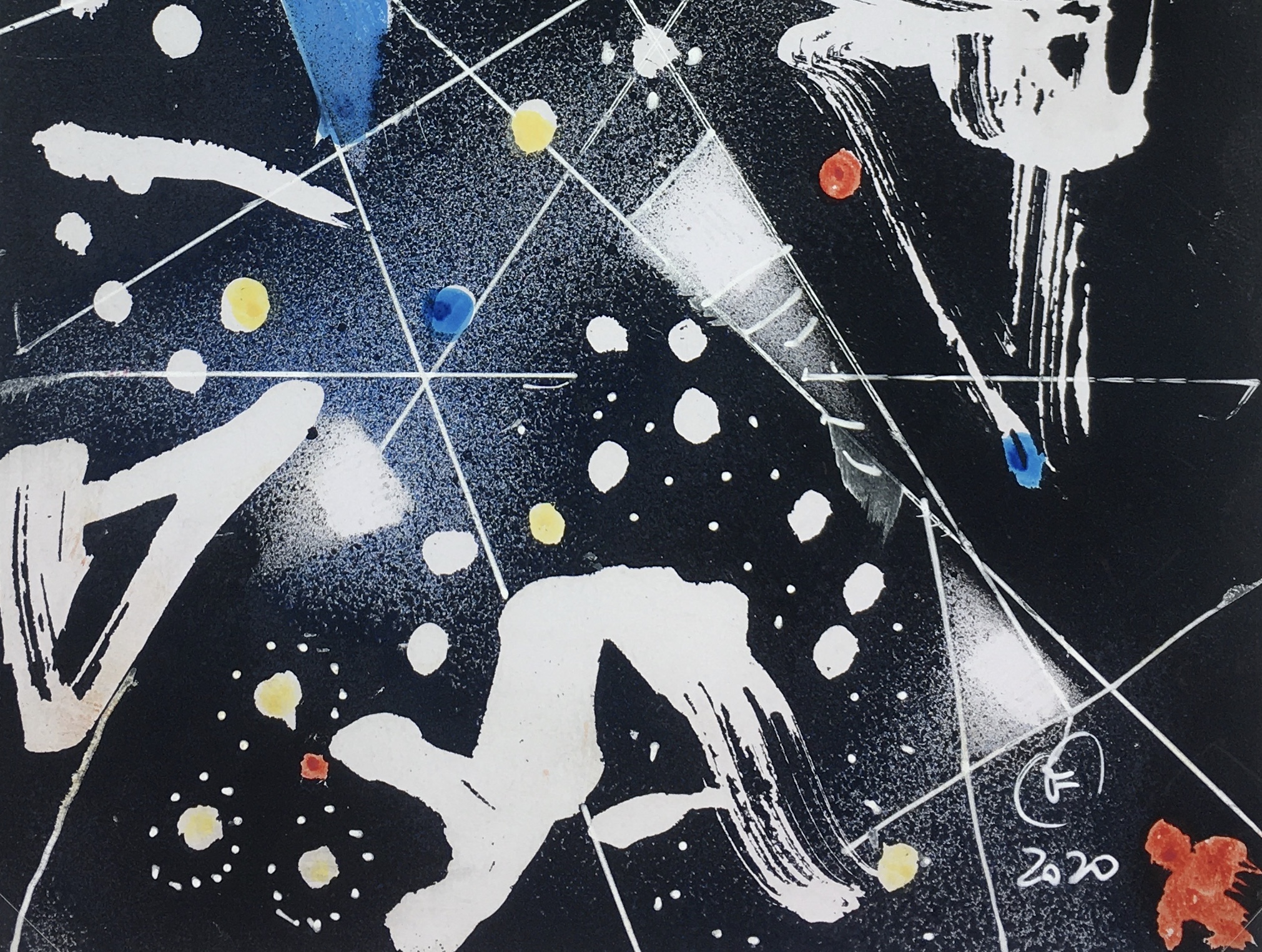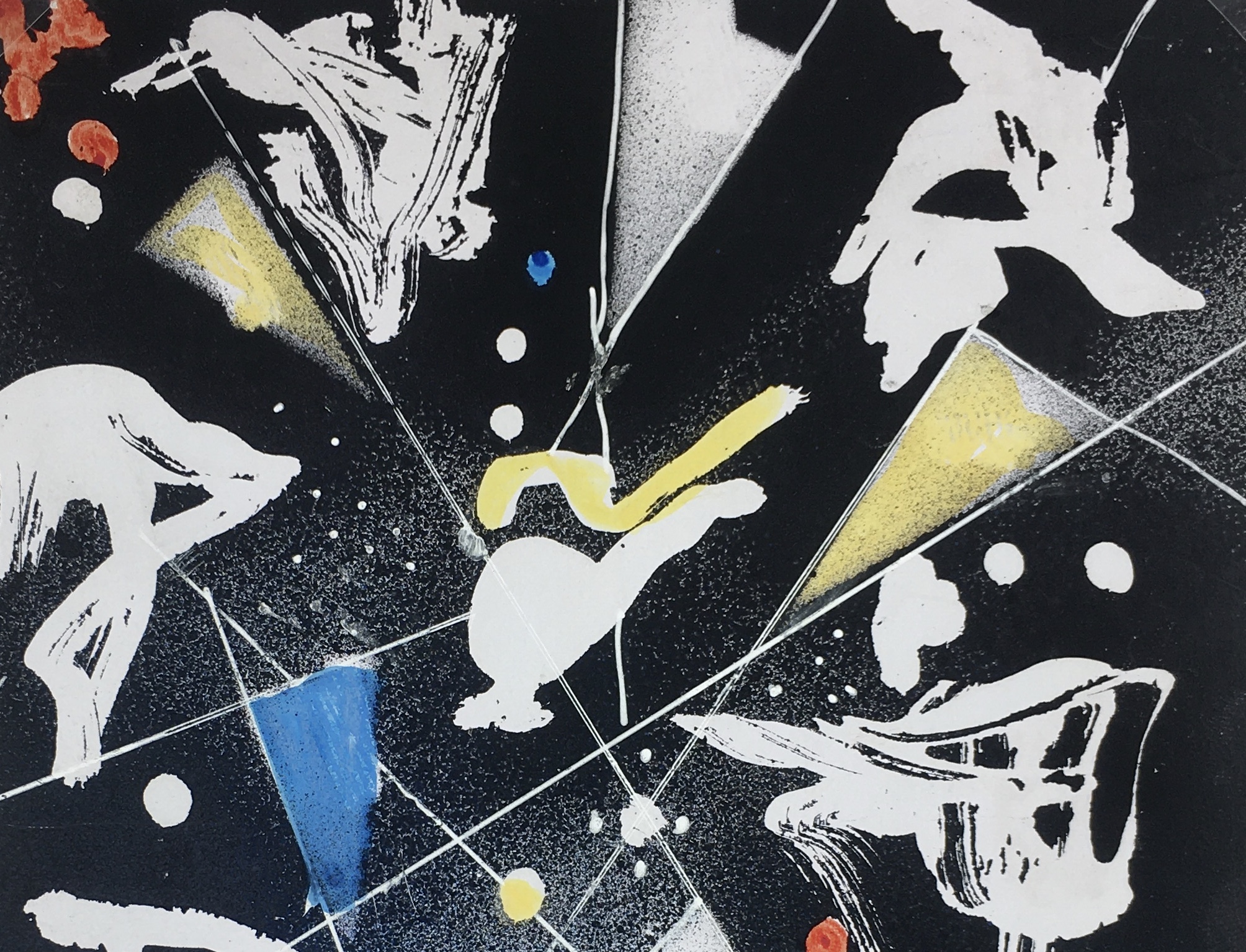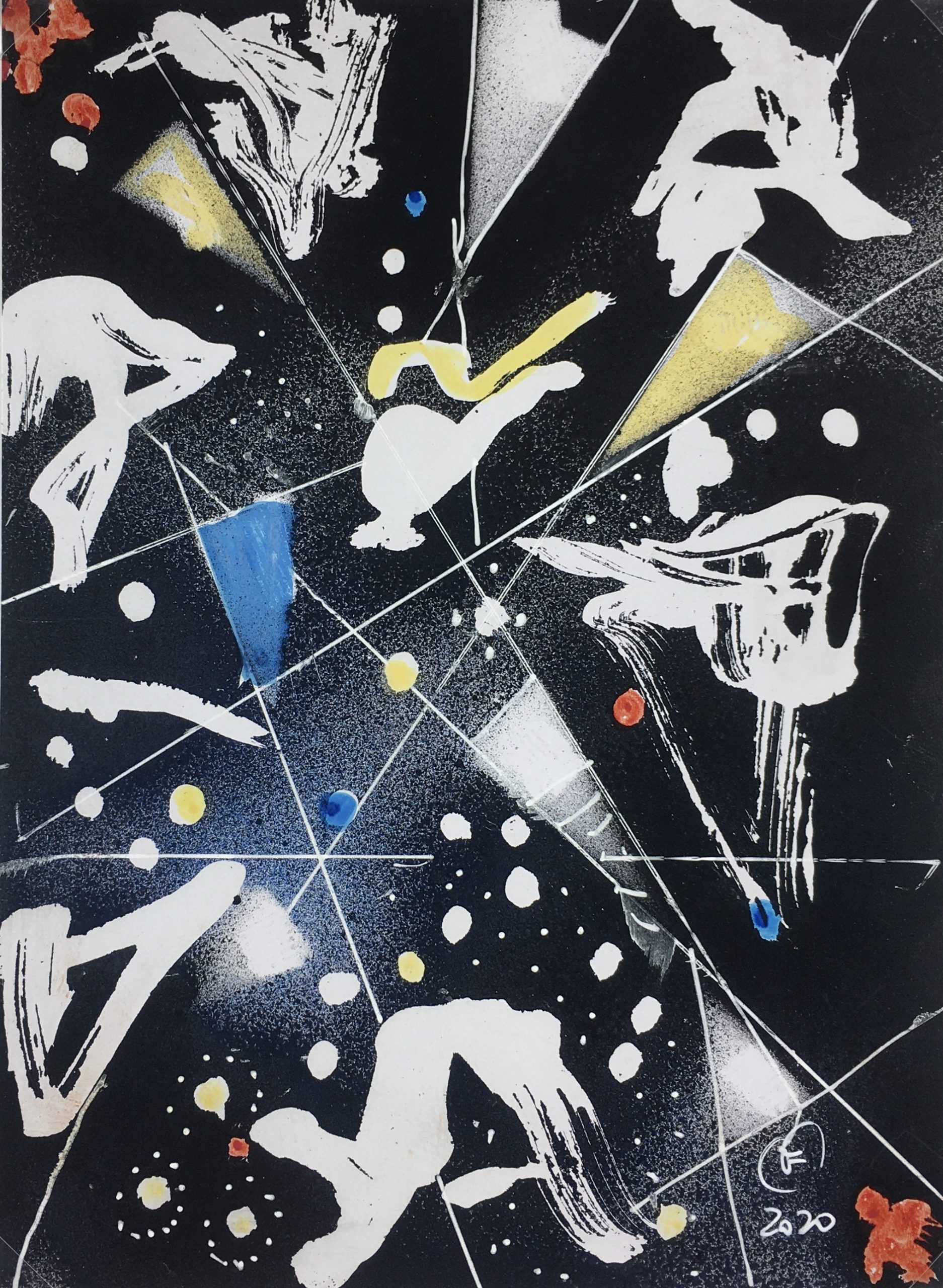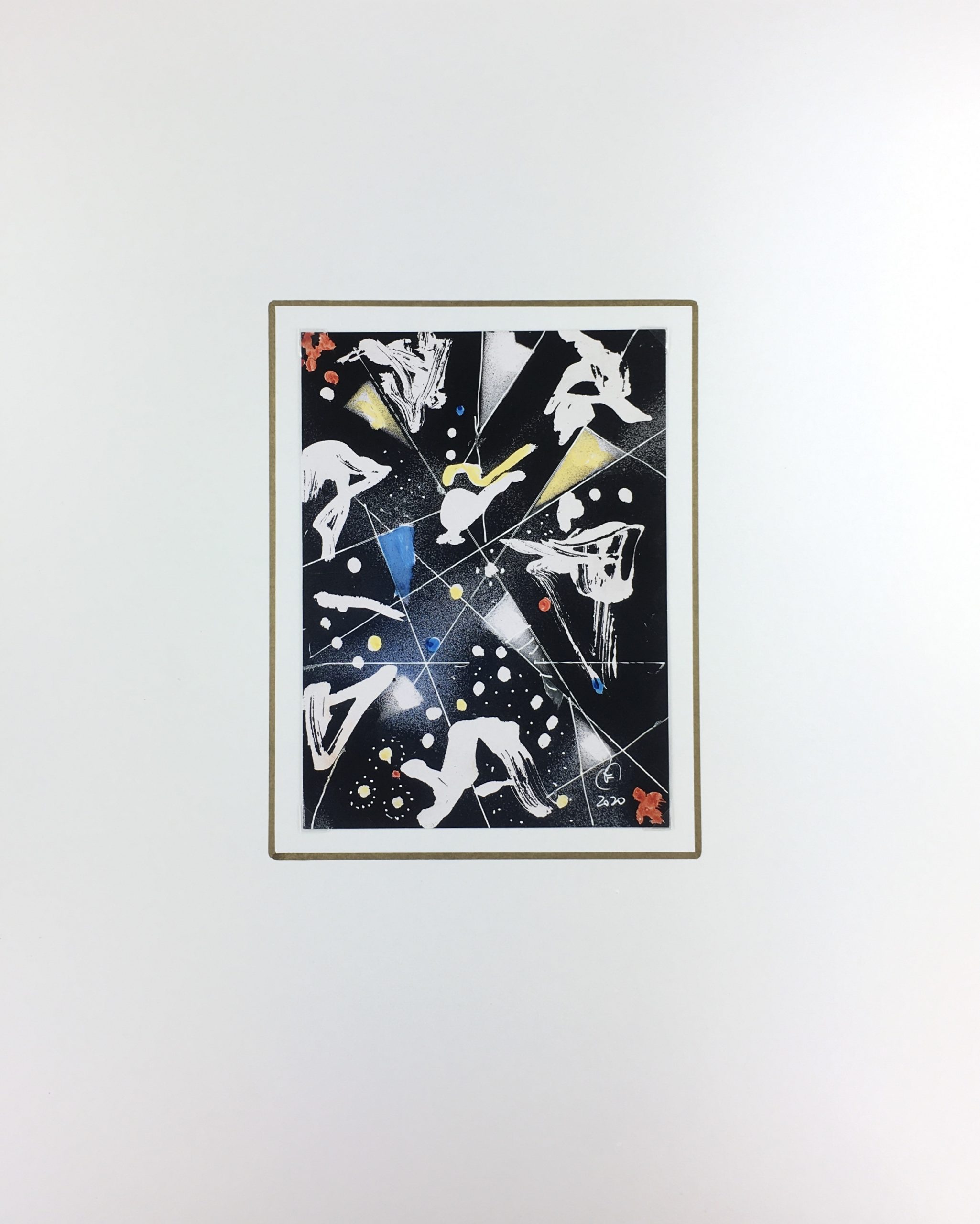 Original Art on paper displayed on a white mat with a gold border. Mat fits a standard-size frame. Archival plastic sleeve and Certificate of Authenticity included. Original Art, 5.75″W x 8″H; mat, 16″W x 20″H.