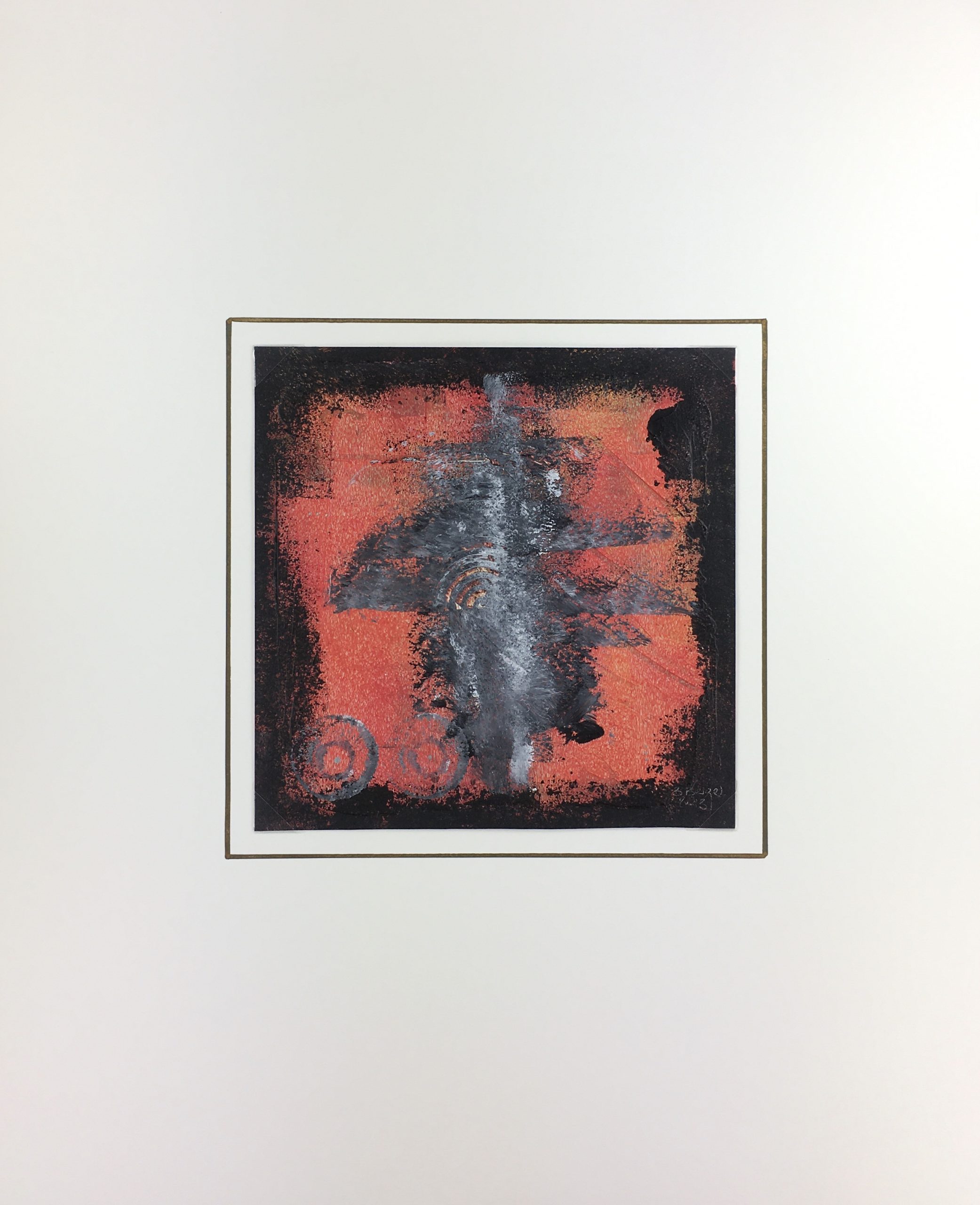 Original Art on paper displayed on a white mat with a gold border. Mat fits a standard-size frame. Archival plastic sleeve and Certificate of Authenticity included. Original Art, 8″W x 8″H; mat, 16″W x 20″H.