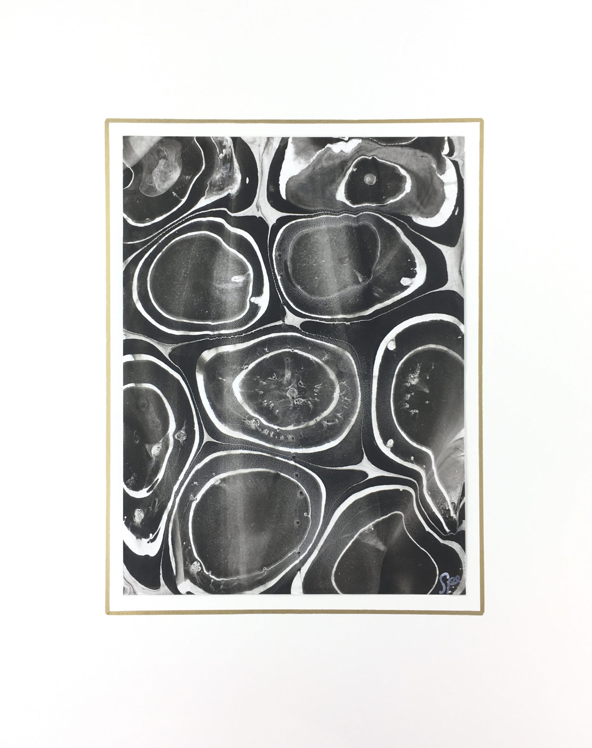 Original Art on paper displayed on a white mat with a gold border. Mat fits a standard-size frame. Archival plastic sleeve and Certificate of Authenticity included. Original Art, 9″W x 12″H; mat, 16″W x 20″H.