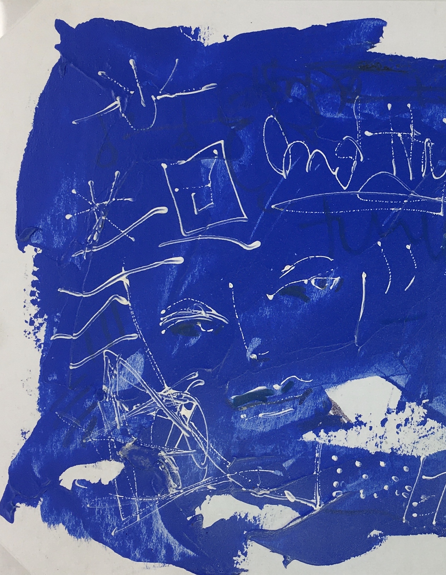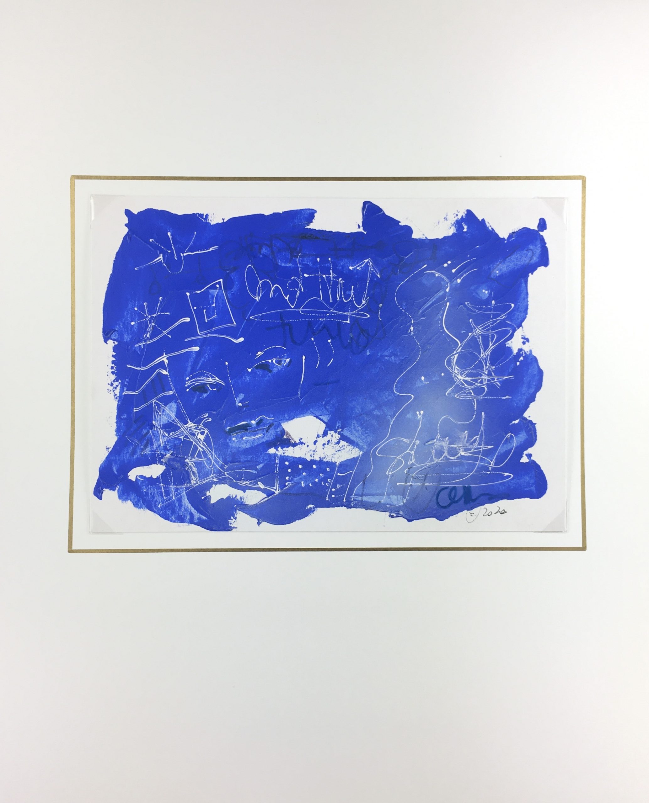 Modern Original Art – Blue Abstract, Signed F, 2020