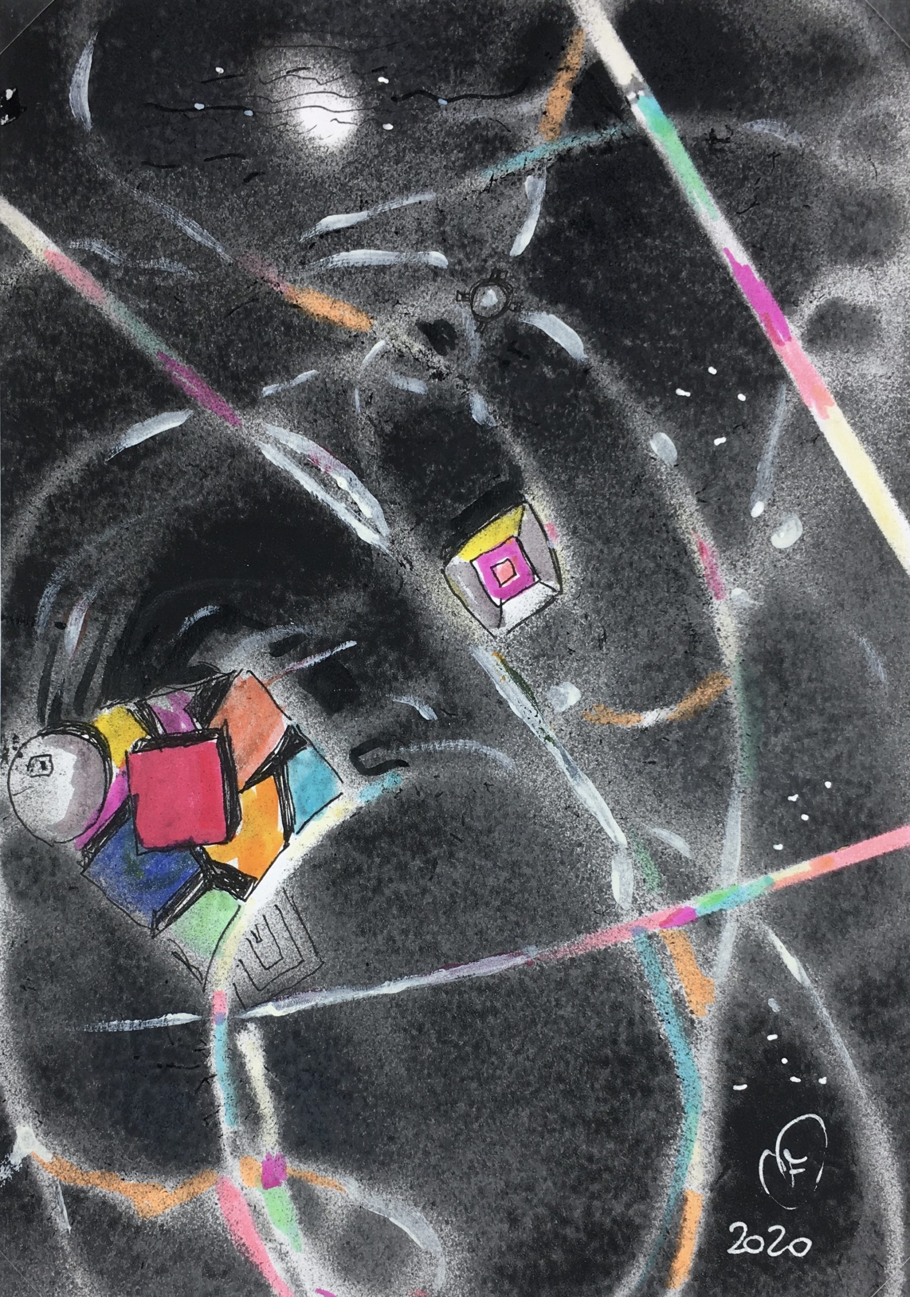 Modern Original Art – Color Grid, Signed F, 2020