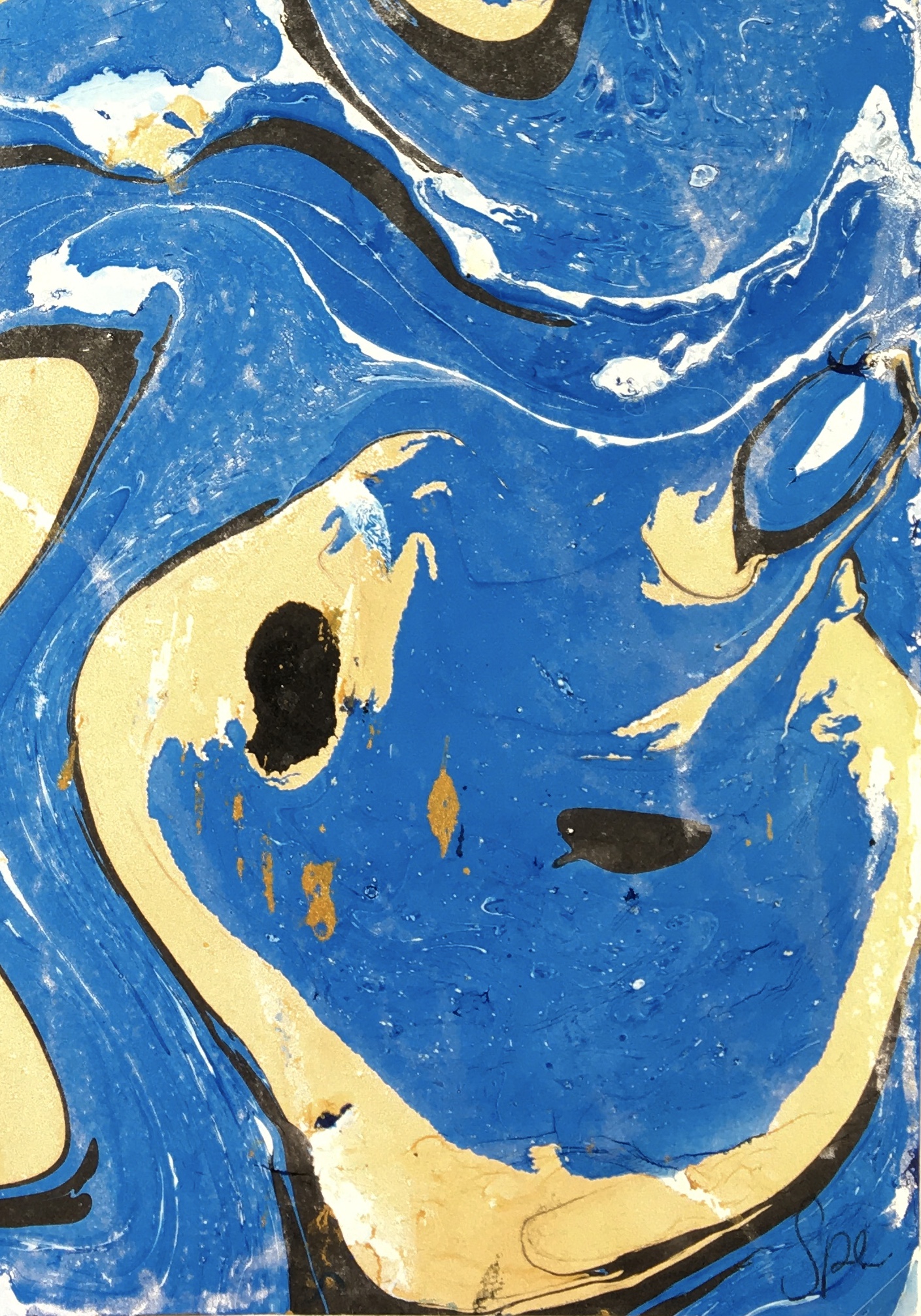Original Art on paper displayed on a white mat with a gold border. Mat fits a standard-size frame. Archival plastic sleeve and Certificate of Authenticity included. Original Art, 8.75″W x 11.75″H; mat, 16″W x 20″H.