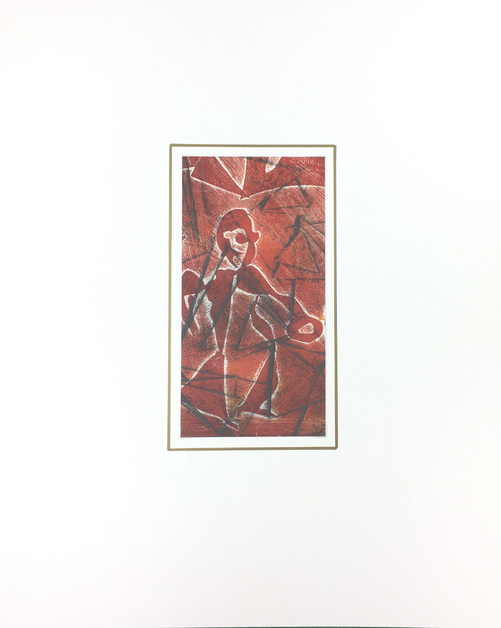 Original Art on paper displayed on a white mat with a gold border. Mat fits a standard-size frame. Archival plastic sleeve and Certificate of Authenticity included. Original Art, 4.5″W x 9″H; mat, 16″W x 20″H.