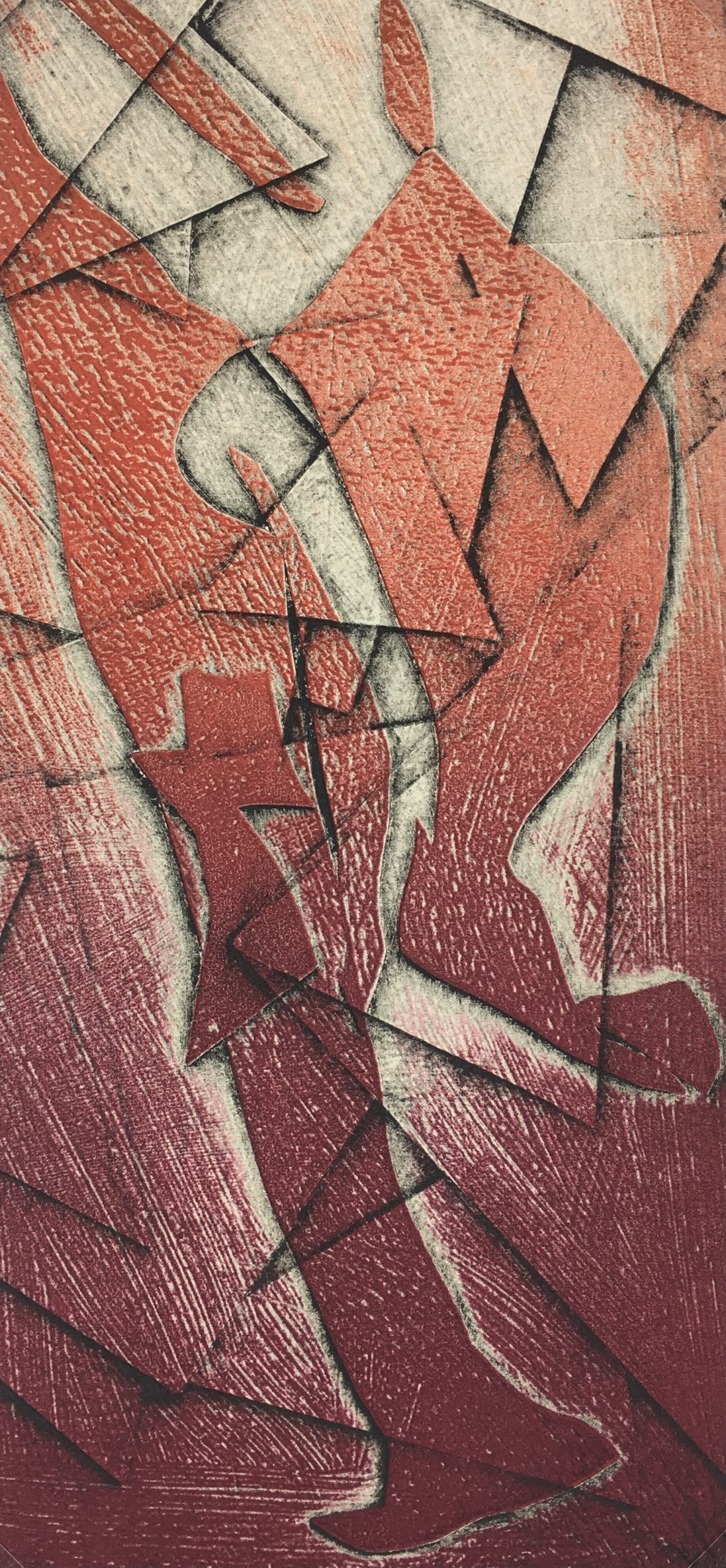 Original Art on paper displayed on a white mat with a gold border. Mat fits a standard-size frame. Archival plastic sleeve and Certificate of Authenticity included. Original Art, 4.25″W x 8.75″H; mat, 16″W x 20″H.