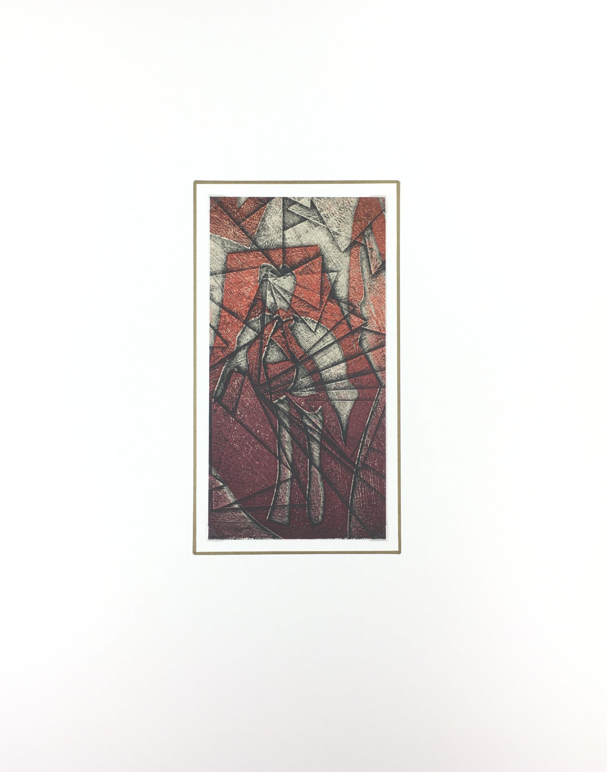 Original Art on paper displayed on a white mat with a gold border. Mat fits a standard-size frame. Archival plastic sleeve and Certificate of Authenticity included. Original Art, 4.5″W x 9″H; mat, 16″W x 20″H.