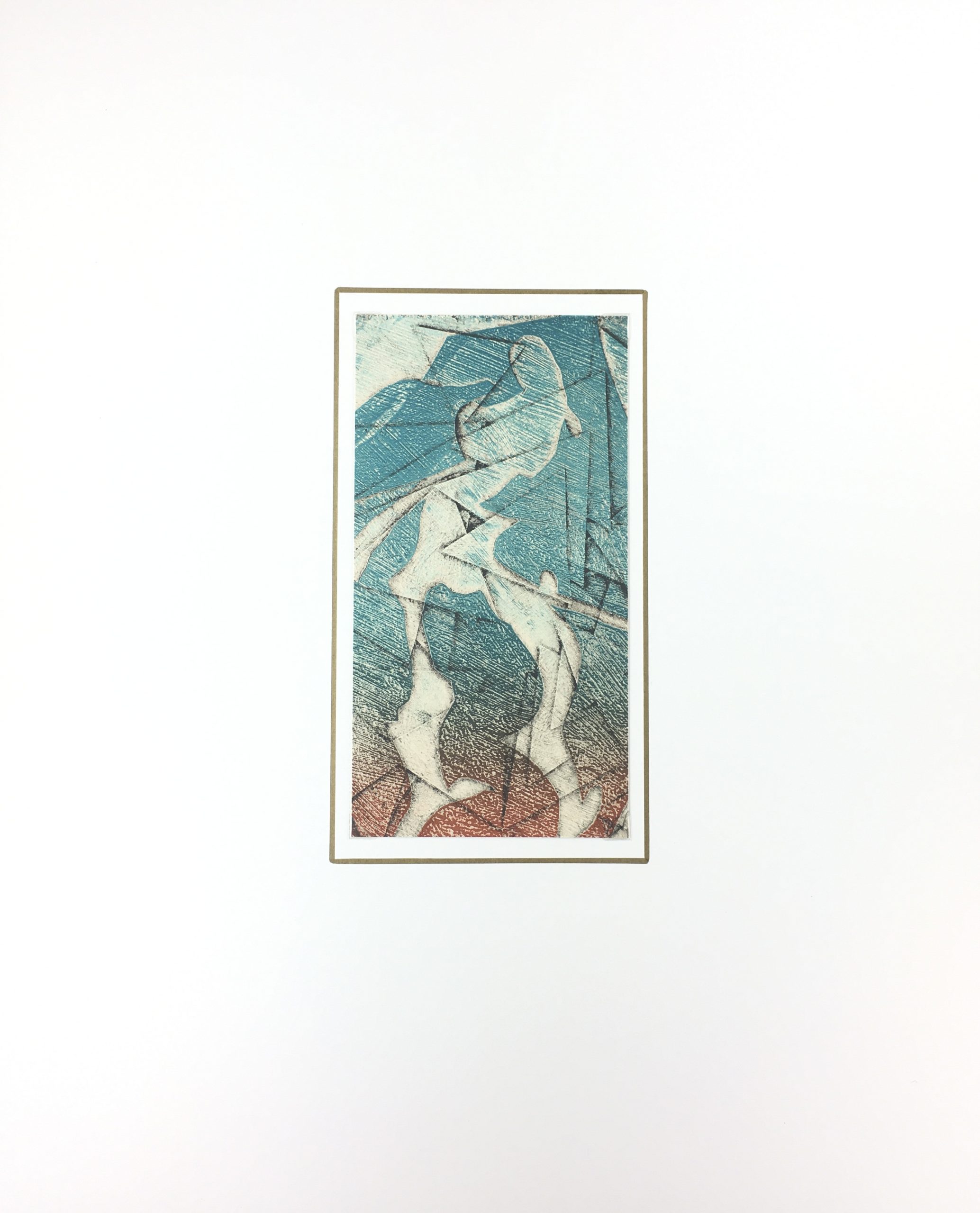 Original Art on paper displayed on a white mat with a gold border. Mat fits a standard-size frame. Archival plastic sleeve and Certificate of Authenticity included. Original Art, 4.5″W x 8.5″H; mat, 16″W x 20″H.