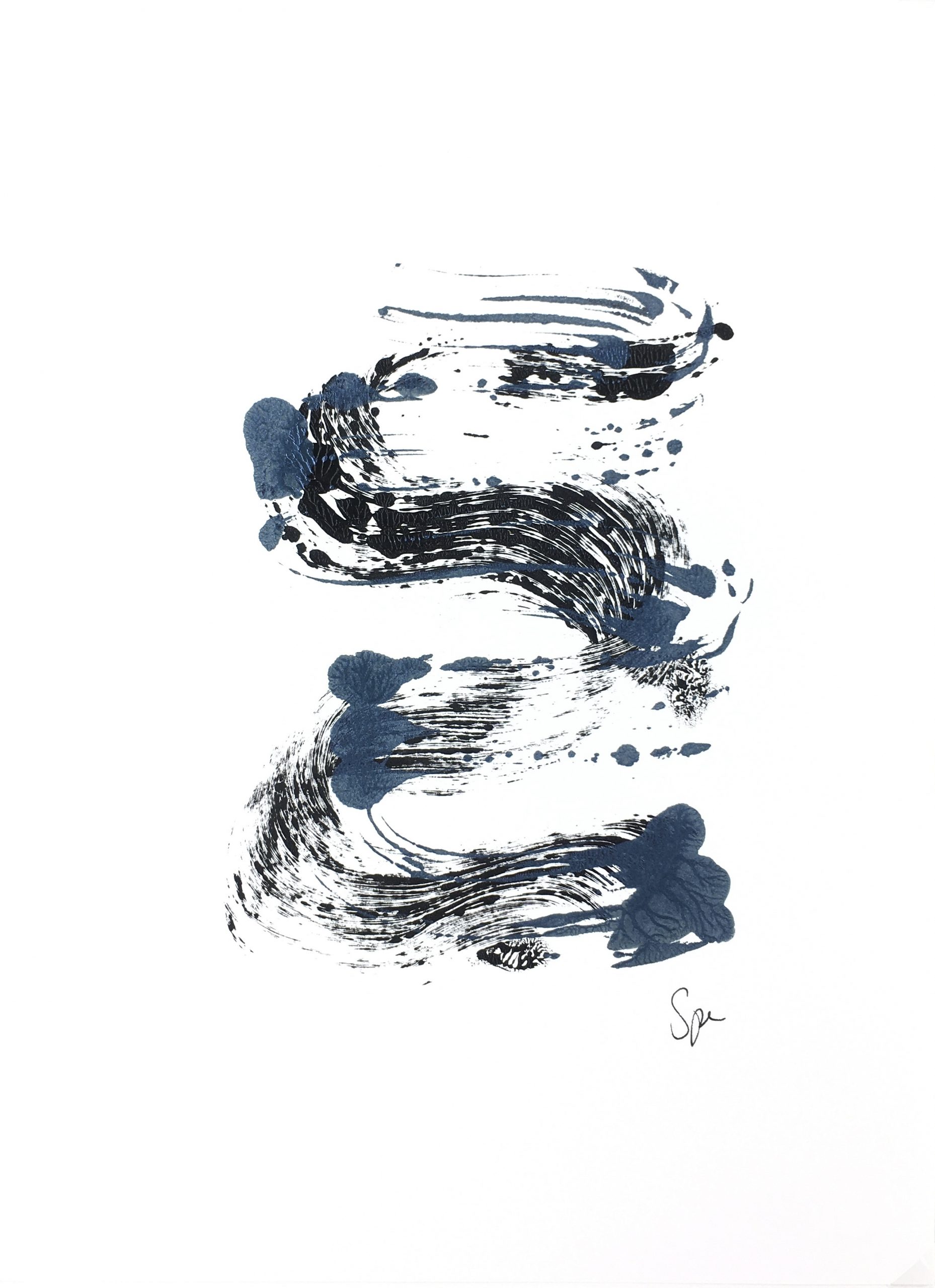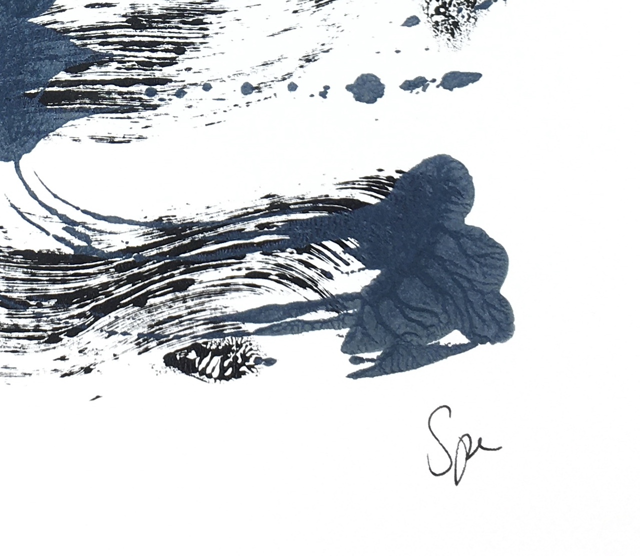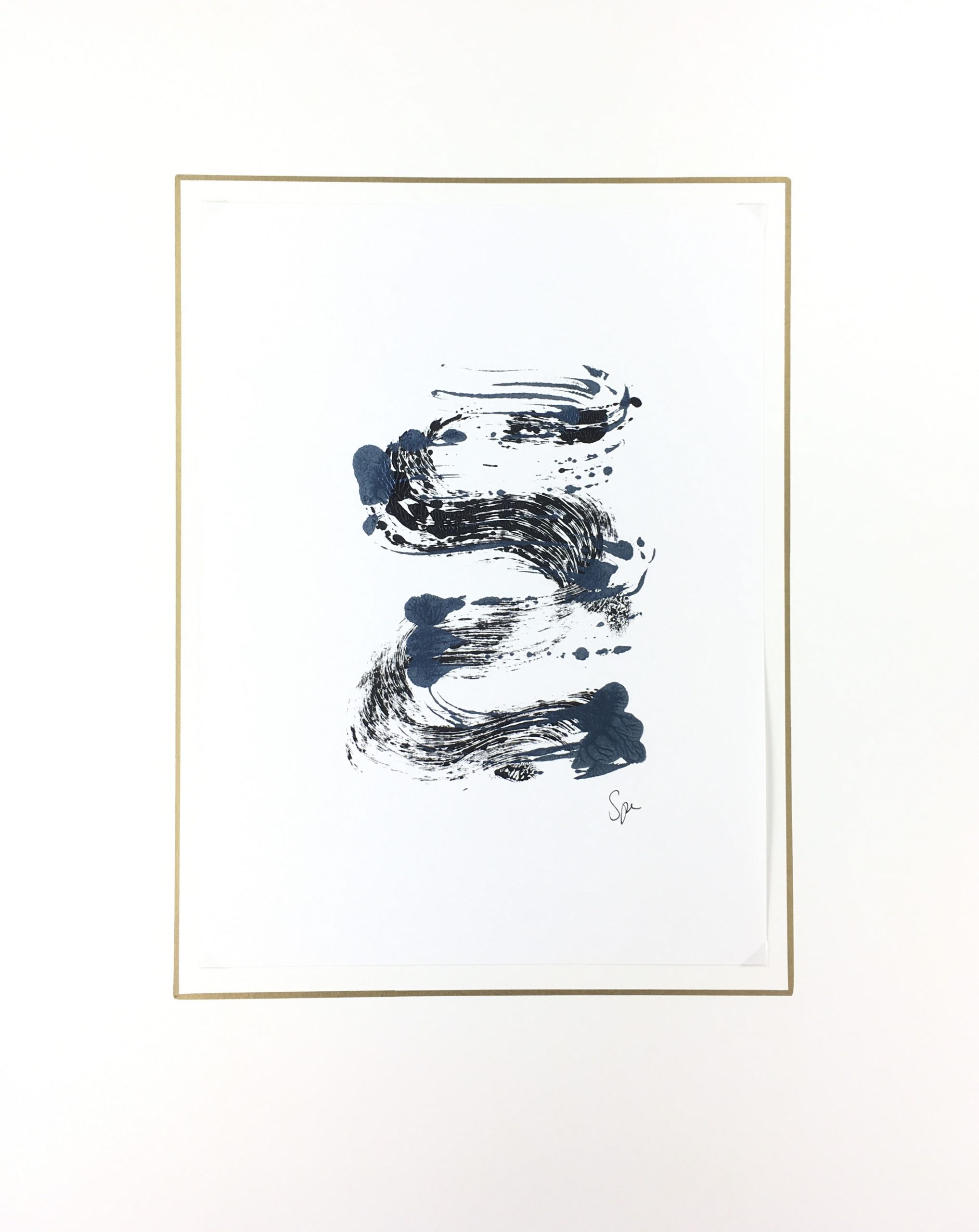 Original Art on paper displayed on a white mat with a gold border. Mat fits a standard-size frame. Archival plastic sleeve and Certificate of Authenticity included. Original Art, 9″W x 12″H; mat, 16″W x 20″H.