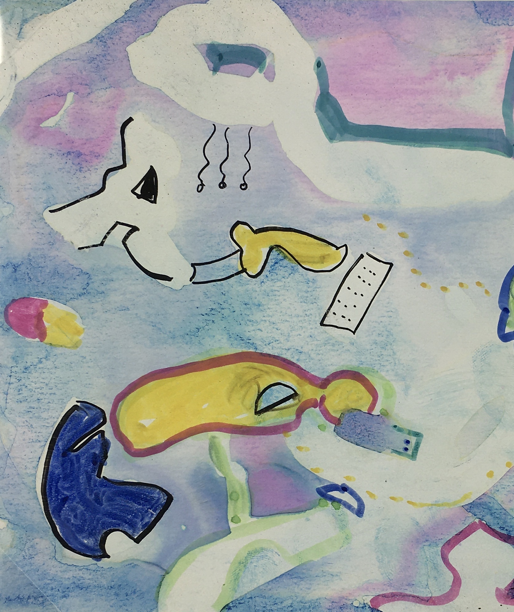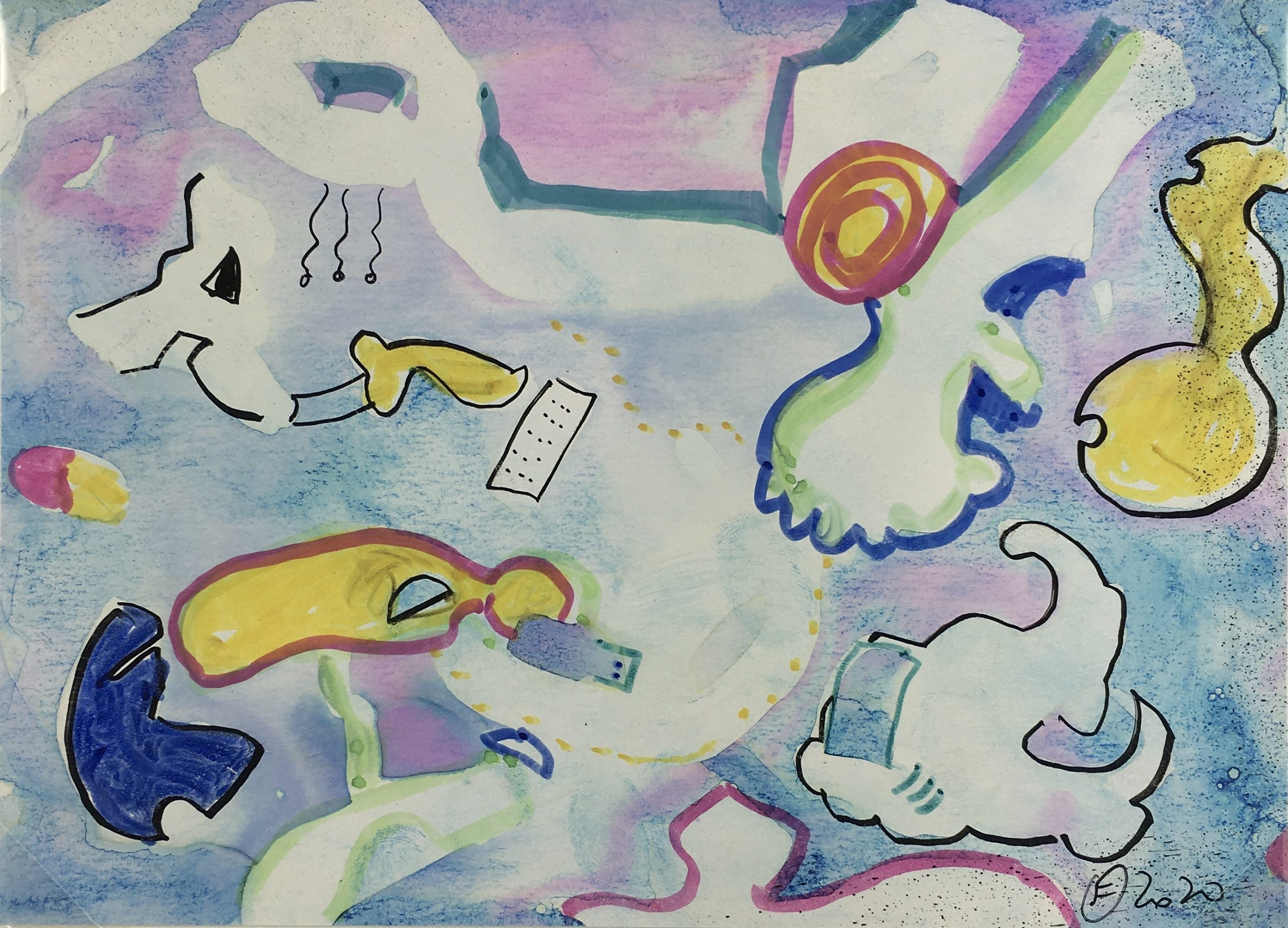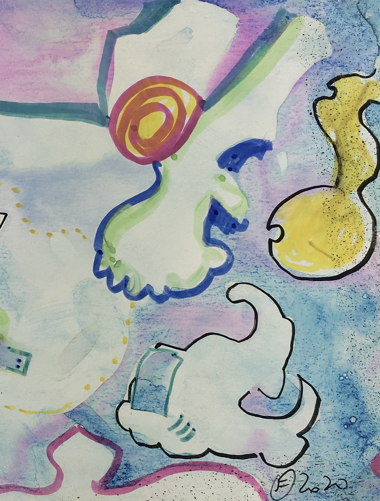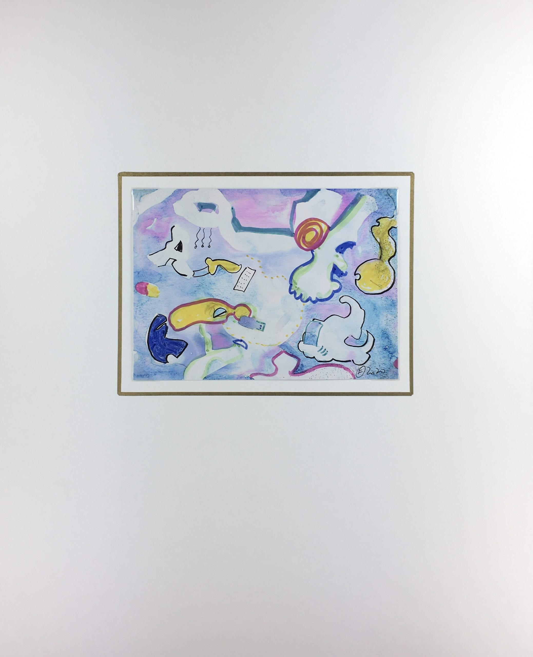 Original Art on paper displayed on a white mat with a gold border. Mat fits a standard-size frame. Archival plastic sleeve and Certificate of Authenticity included. Original Art, 7.75″W x 5.75″H; mat, 16″W x 20″H.