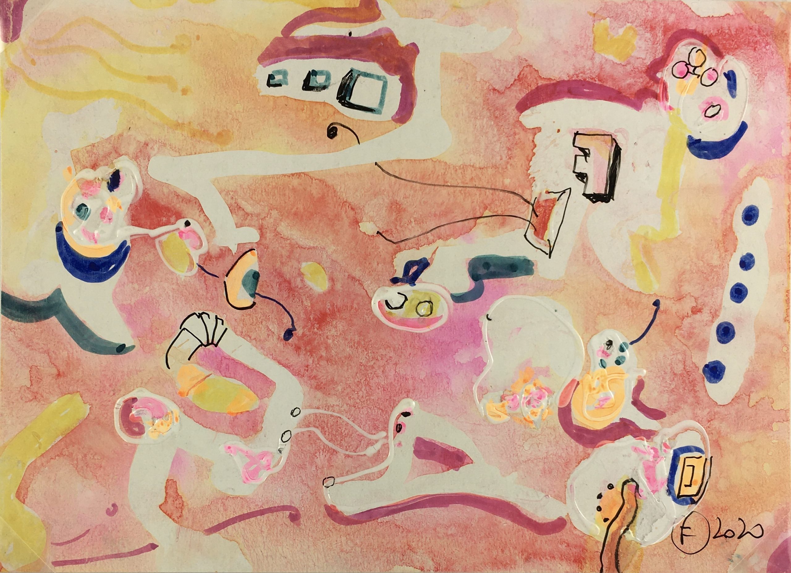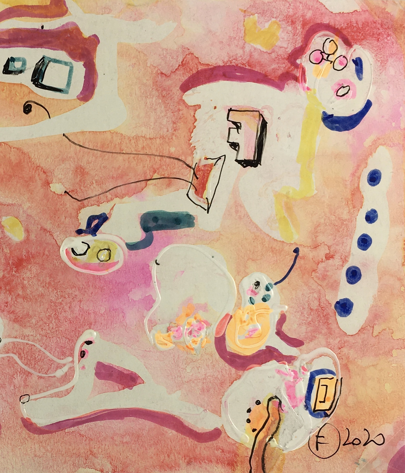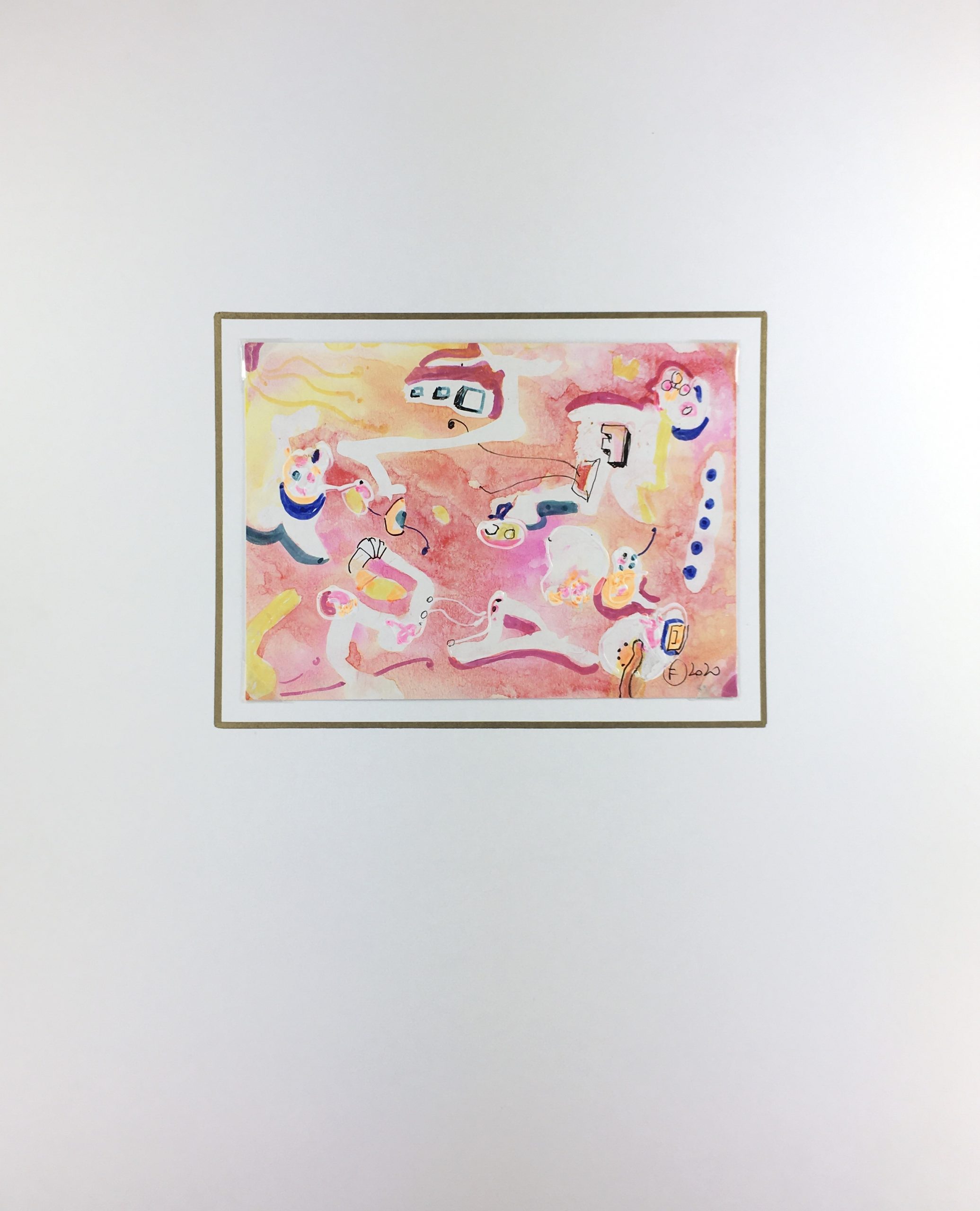 Original Art on paper displayed on a white mat with a gold border. Mat fits a standard-size frame. Archival plastic sleeve and Certificate of Authenticity included. Original Art, 8″W x 5.75″H; mat, 16″W x 20″H.
