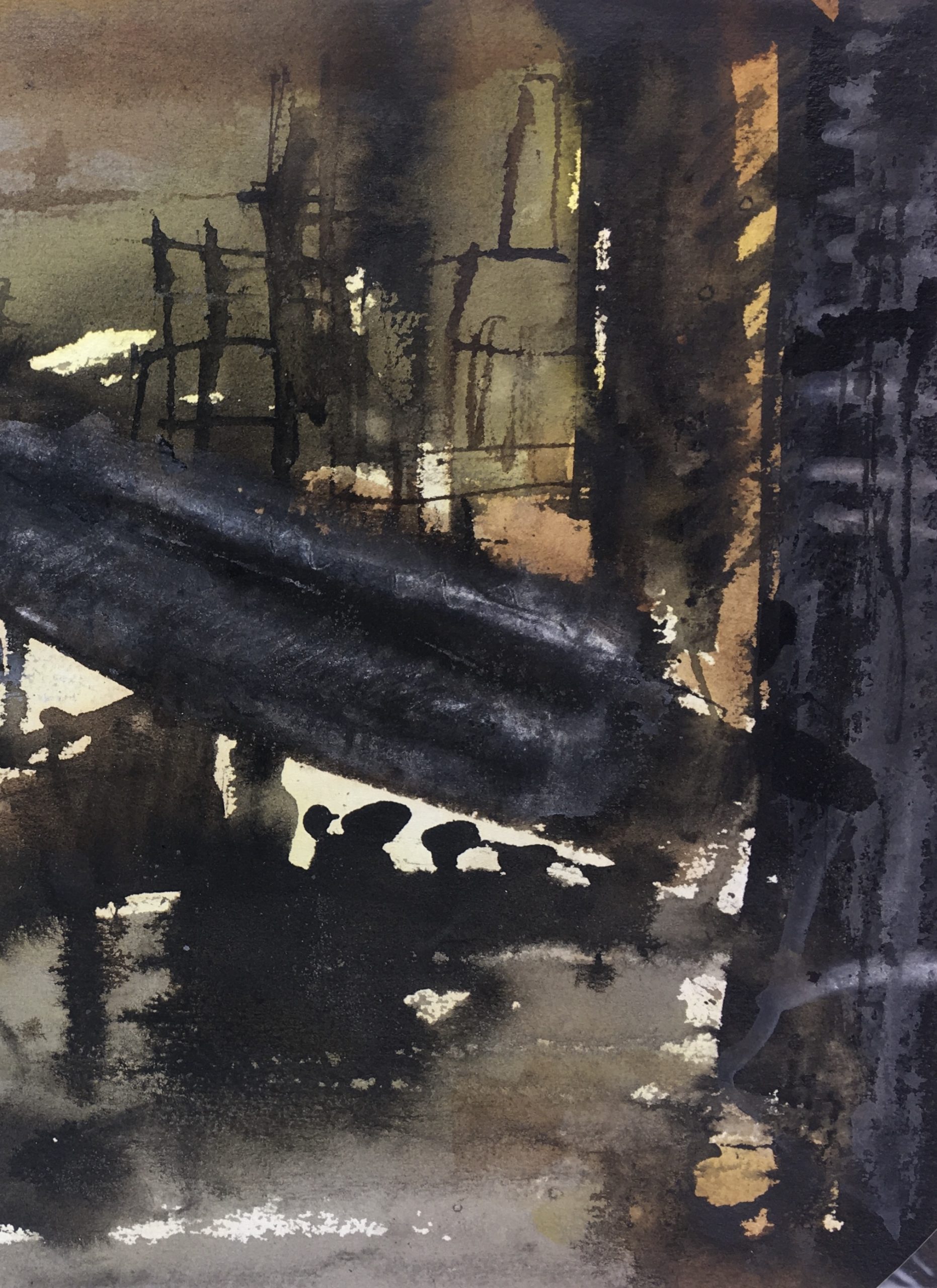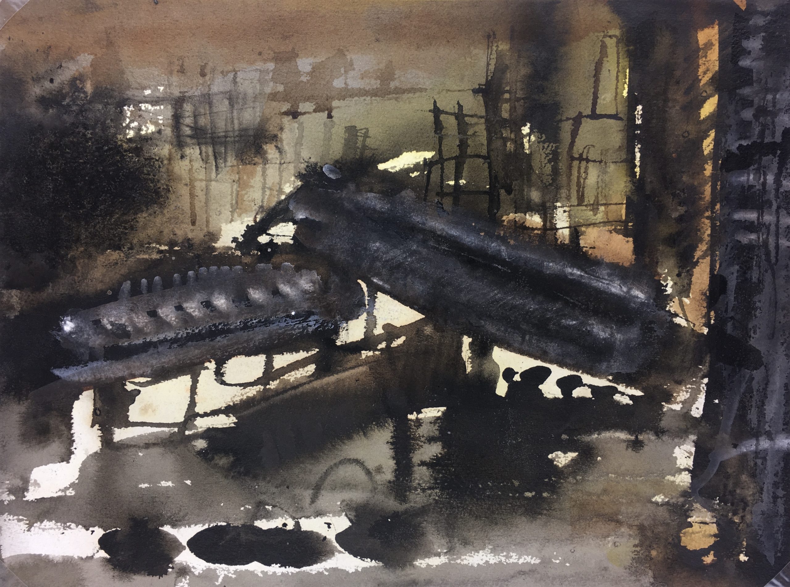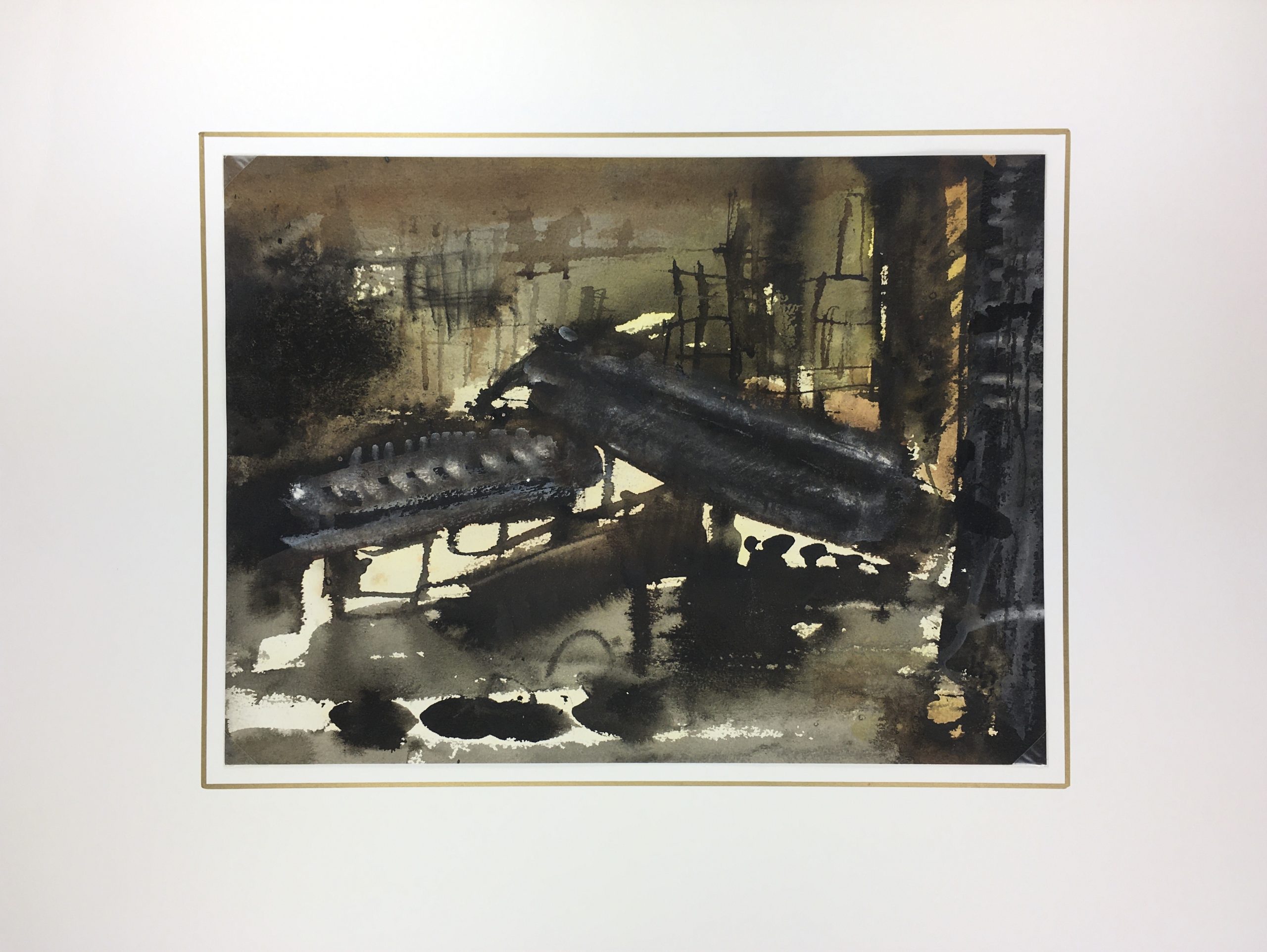 Original Art on paper displayed on a white mat with a gold border. Mat fits a standard-size frame. Archival plastic sleeve and Certificate of Authenticity included. Original Art, 15.5″W x 11.5″H; mat, 24″W x 18″H.