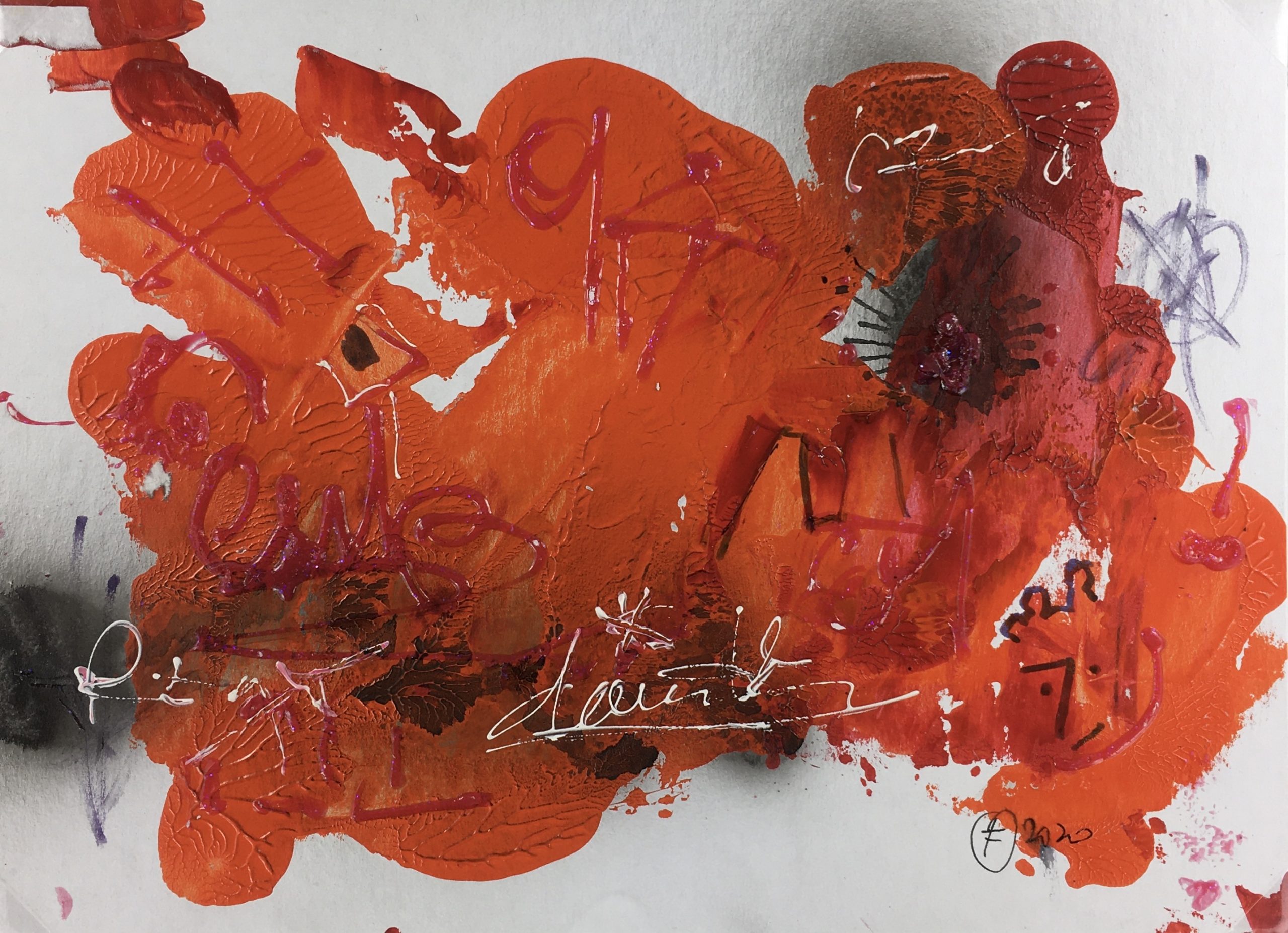 Modern Original Art – Orange Abstract, Signed F, 2020