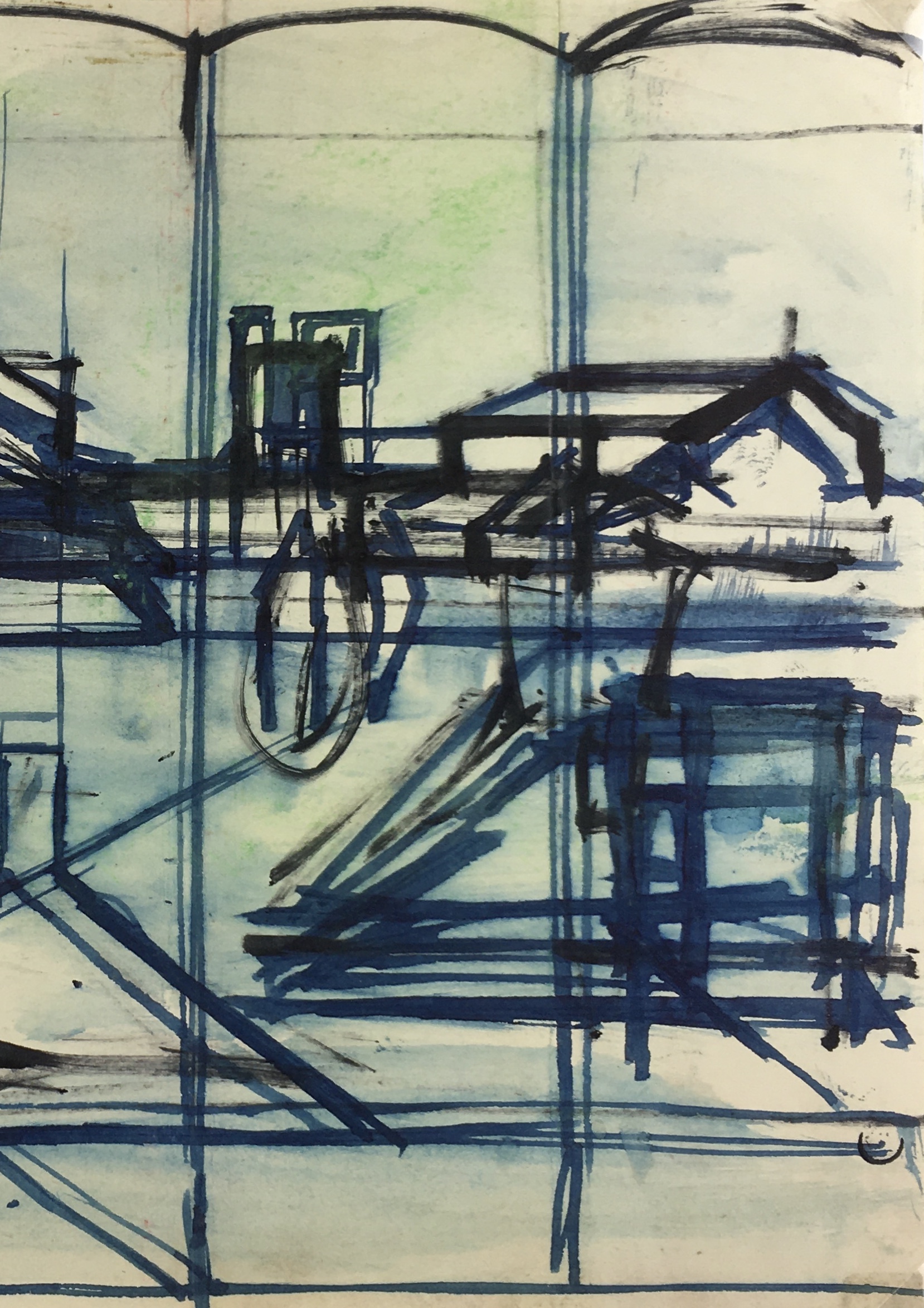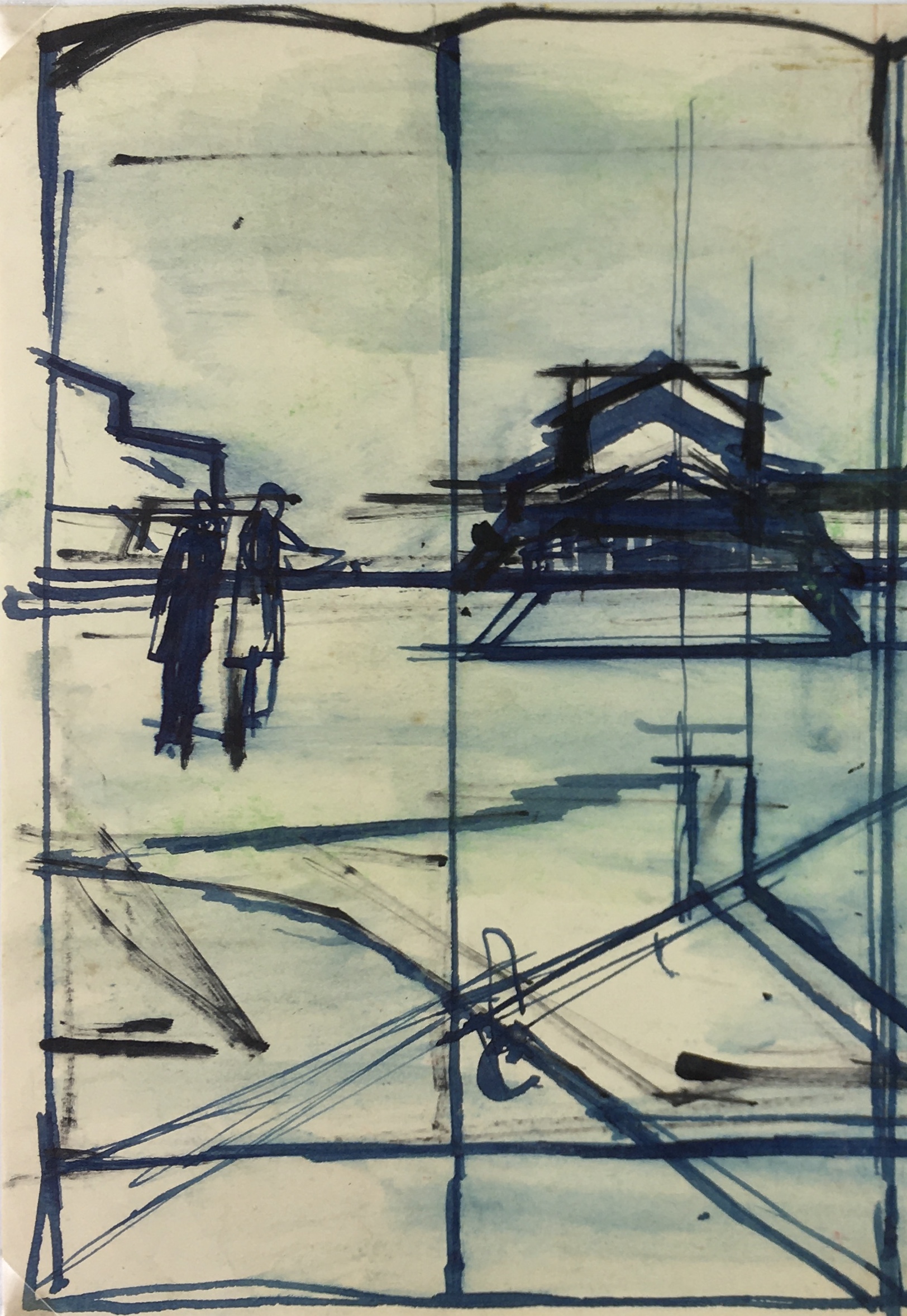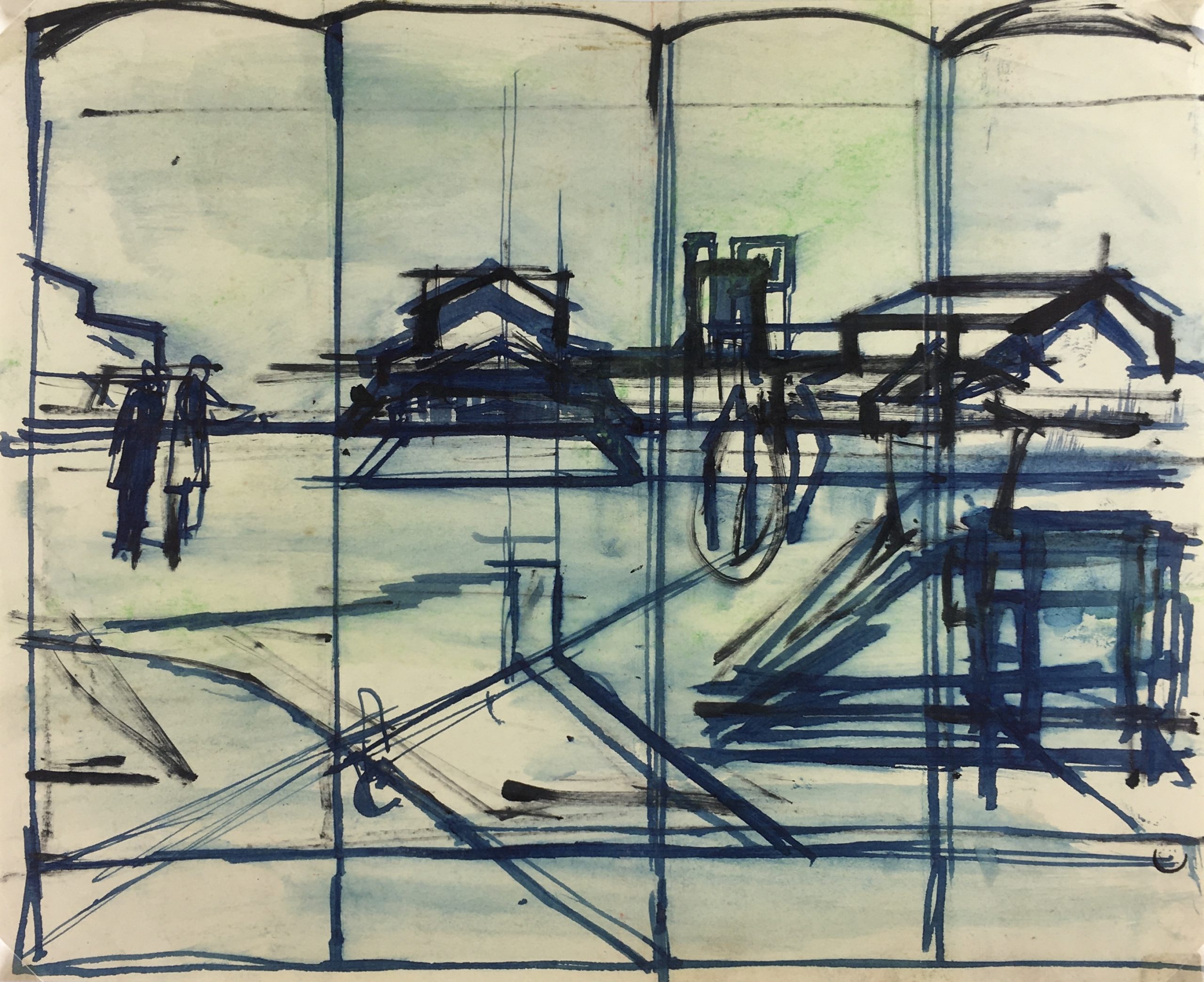 Modern Original Art – Spatial Study, R. Kitts, c.1950