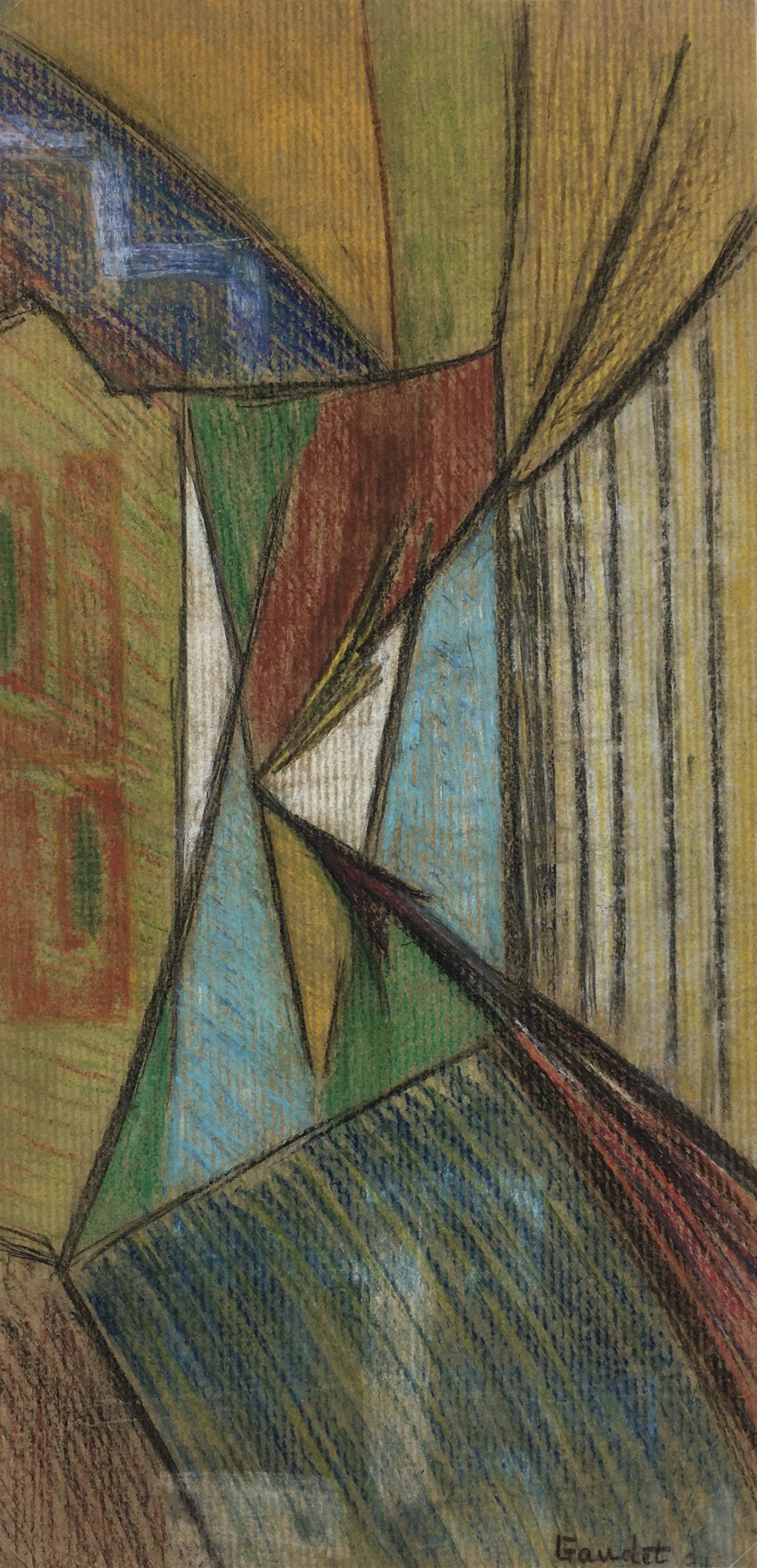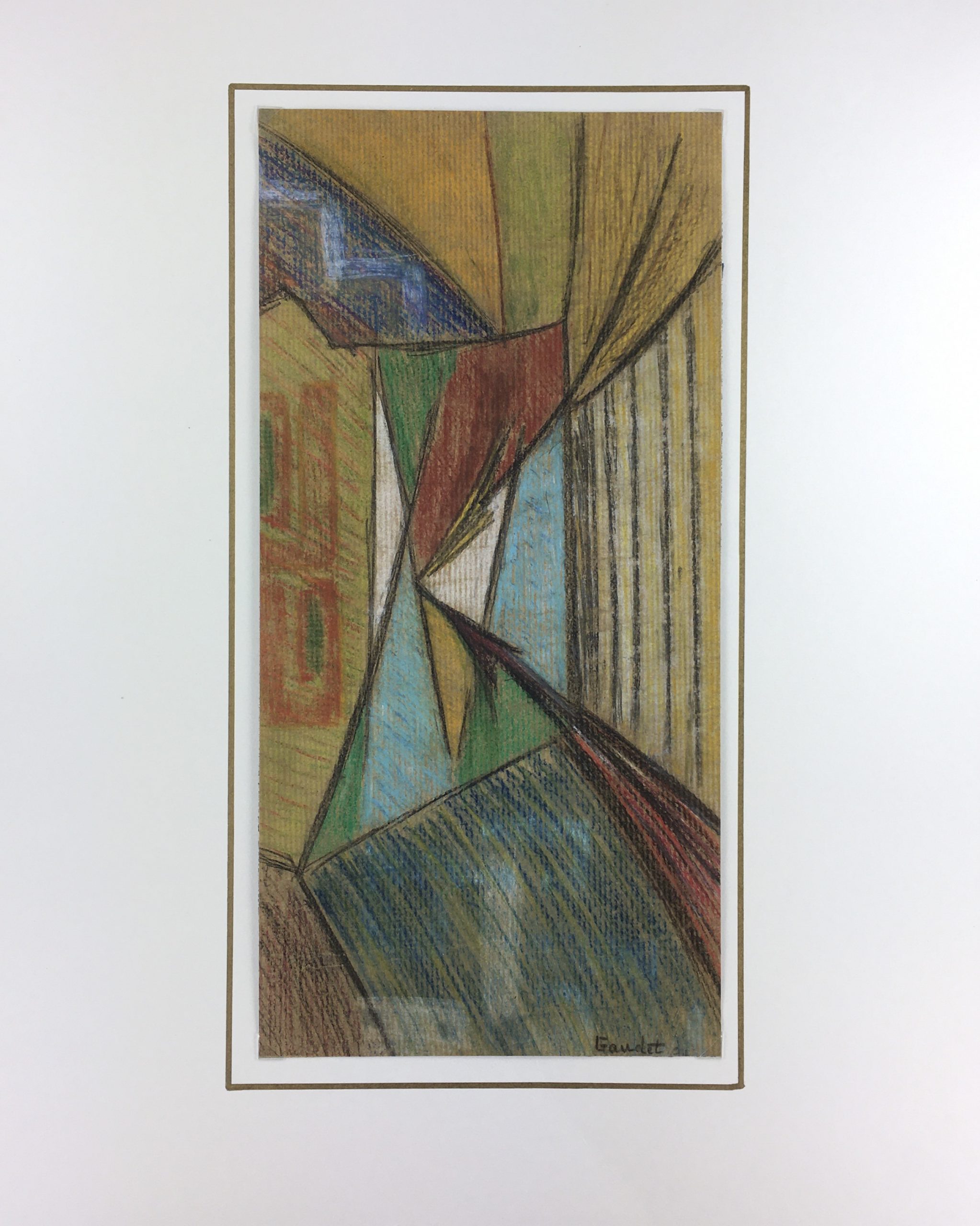 Original Art on paper displayed on a white mat with a gold border. Mat fits a standard-size frame. Archival plastic sleeve and Certificate of Authenticity included. Original Art, 7.5″W x 15″H; mat, 16″W x 20″H.