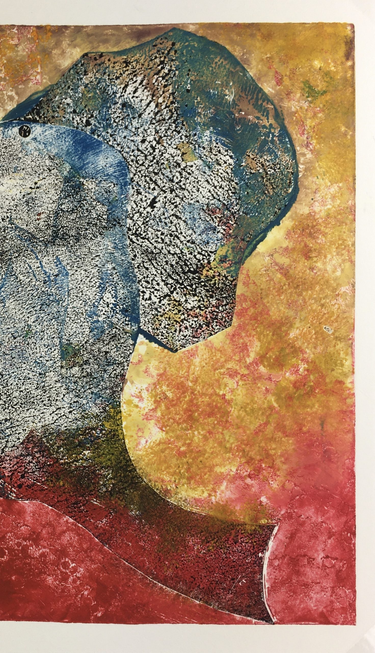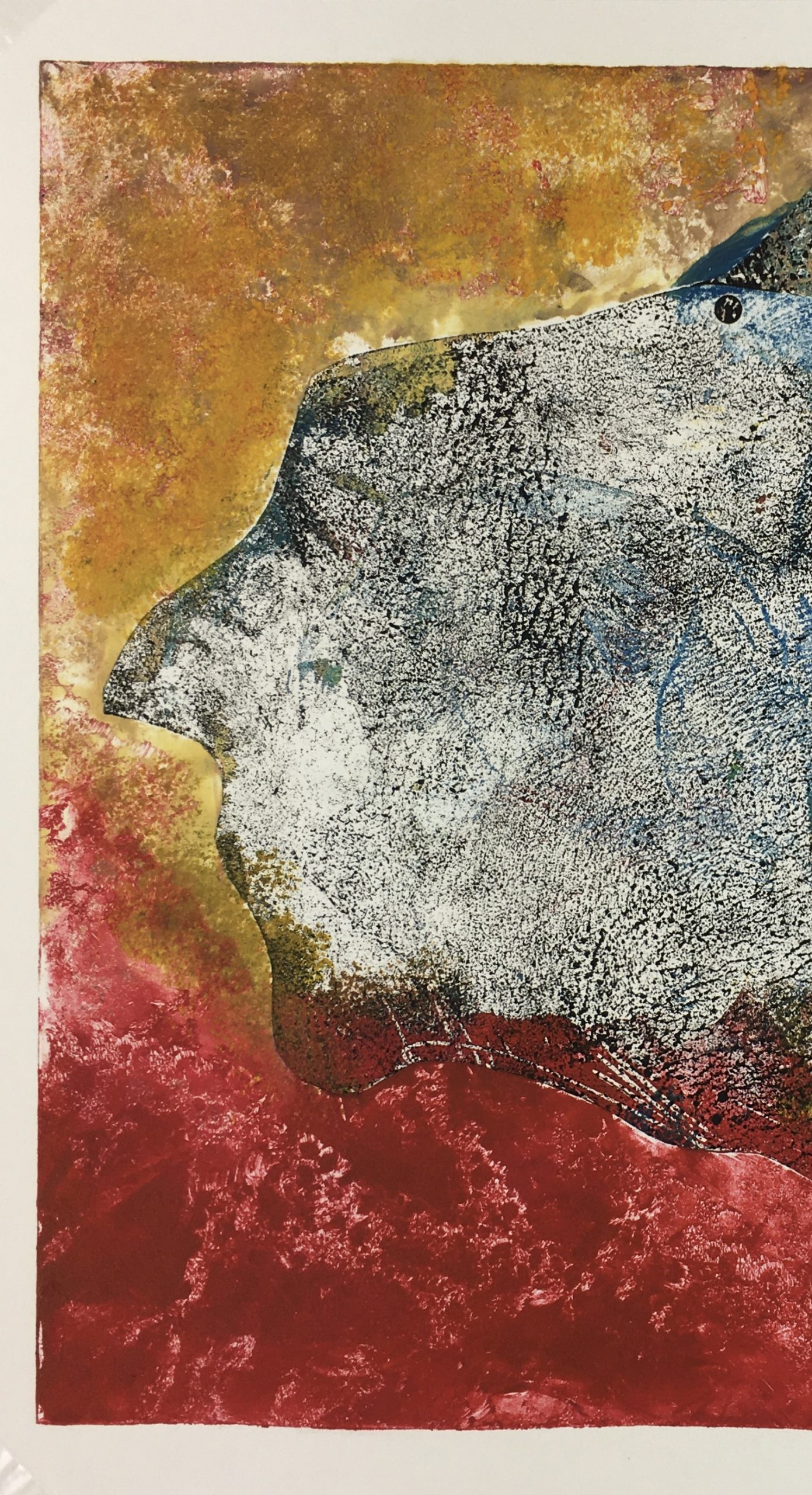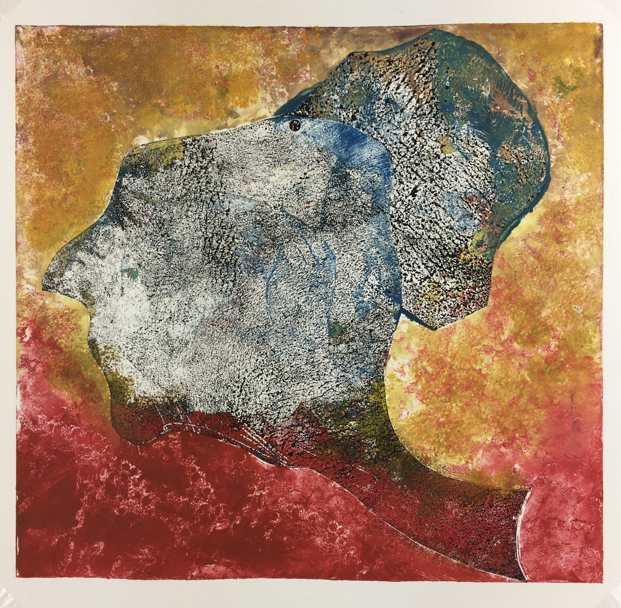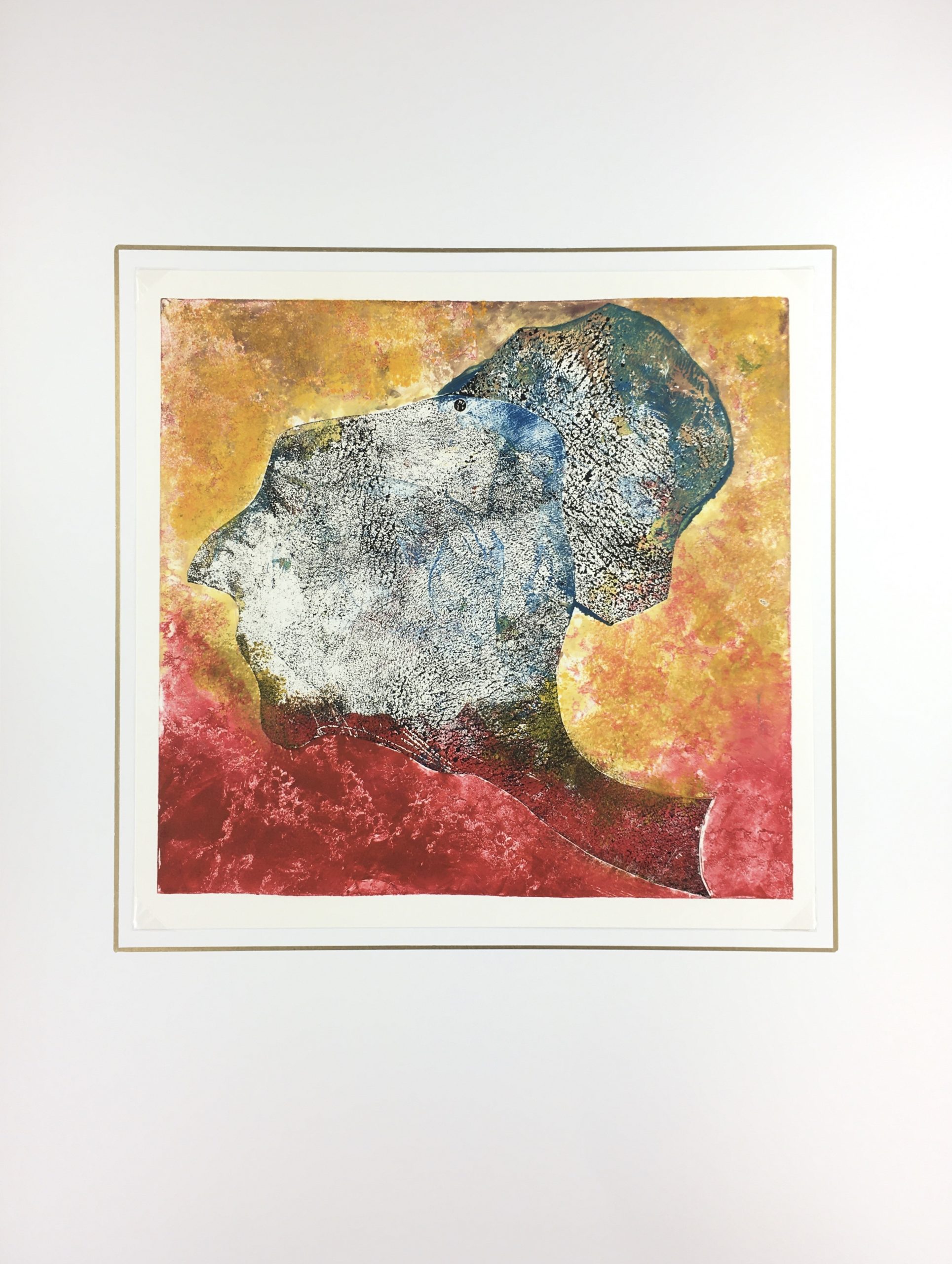 Original Art on paper displayed on a white mat with a gold border. Mat fits a standard-size frame. Archival plastic sleeve and Certificate of Authenticity included. Original Art, 12.75″W x 12.5″H; mat, 18″W x 24″H.
