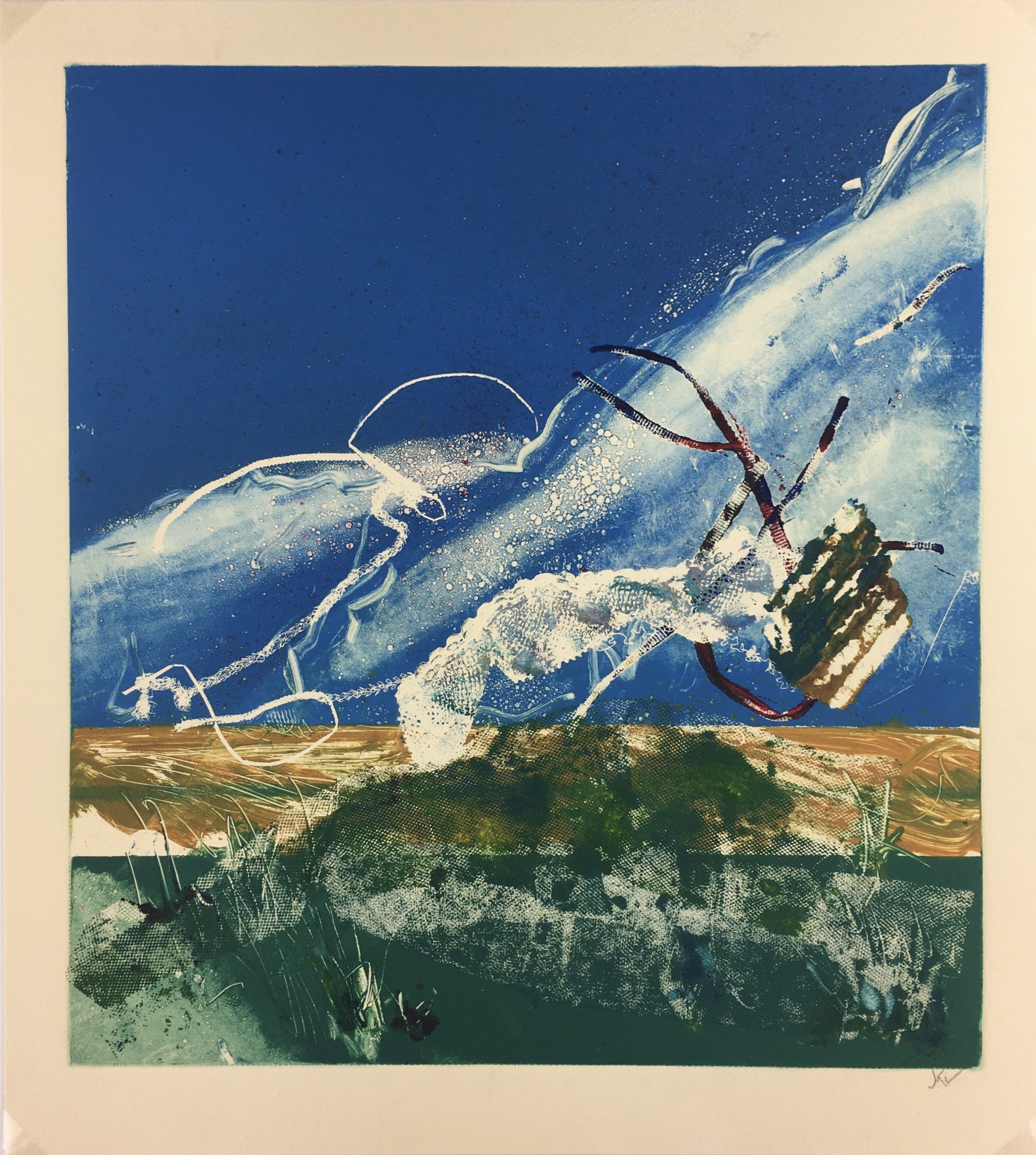 Original Art on paper displayed on a white mat with a gold border. Mat fits a standard-size frame. Archival plastic sleeve and Certificate of Authenticity included. Original Art, 13.5″W x 15″H; mat, 18″W x 24″H.