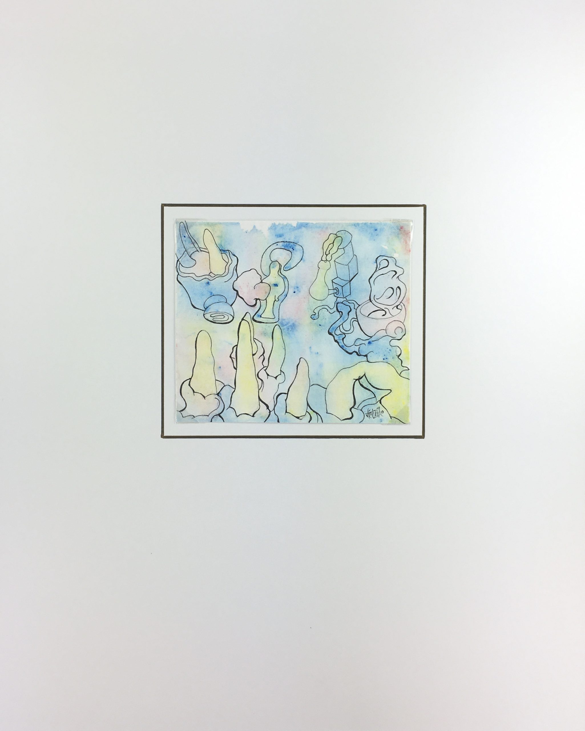 Original Art on paper displayed on a white mat with a gold border. Mat fits a standard-size frame. Archival plastic sleeve and Certificate of Authenticity included. Original Art, 6.5″W x 5.5″H; mat, 16″W x 20″H.
