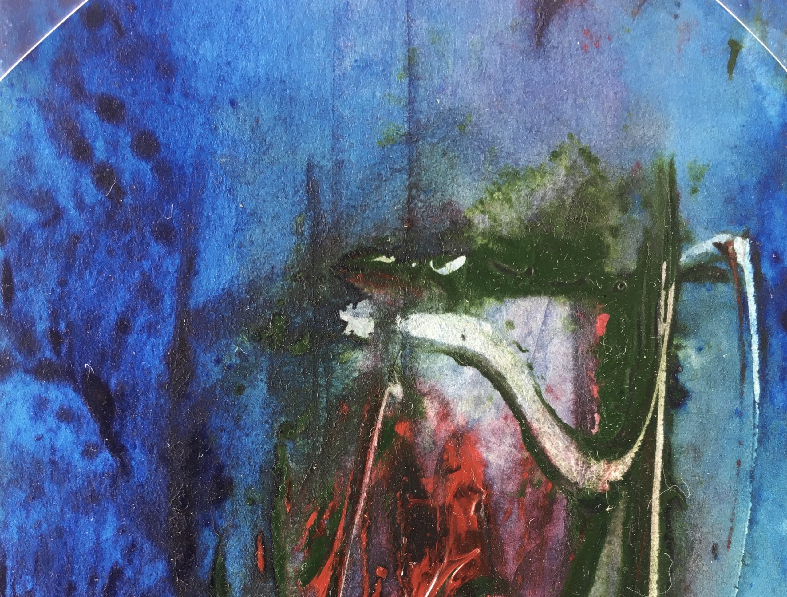 Original Art on paper displayed on a white mat with a gold border. Mat fits a standard-size frame. Archival plastic sleeve and Certificate of Authenticity included. Original Art, 2.75″W x 3.5″H; mat, 12″W x 16″H.