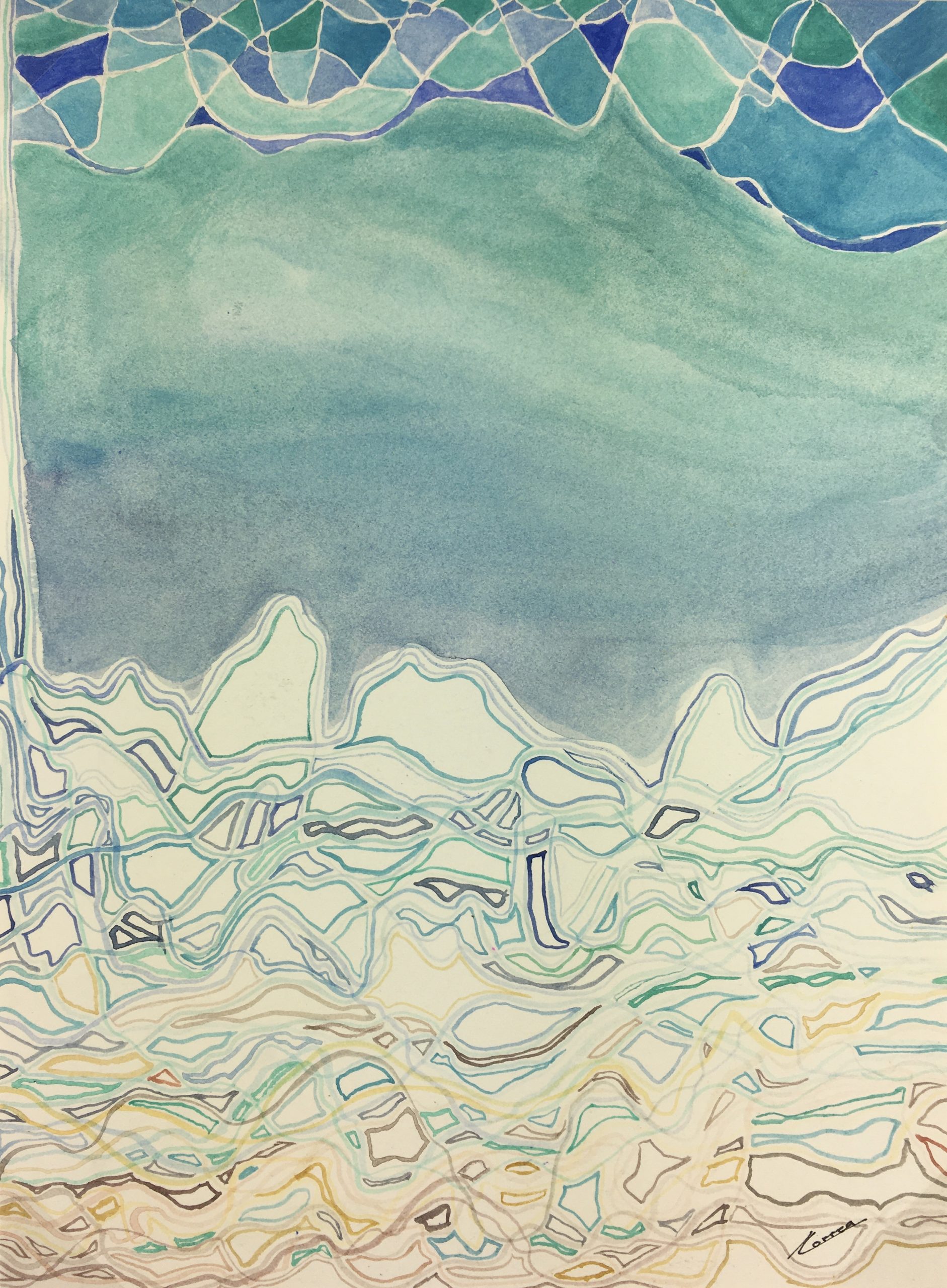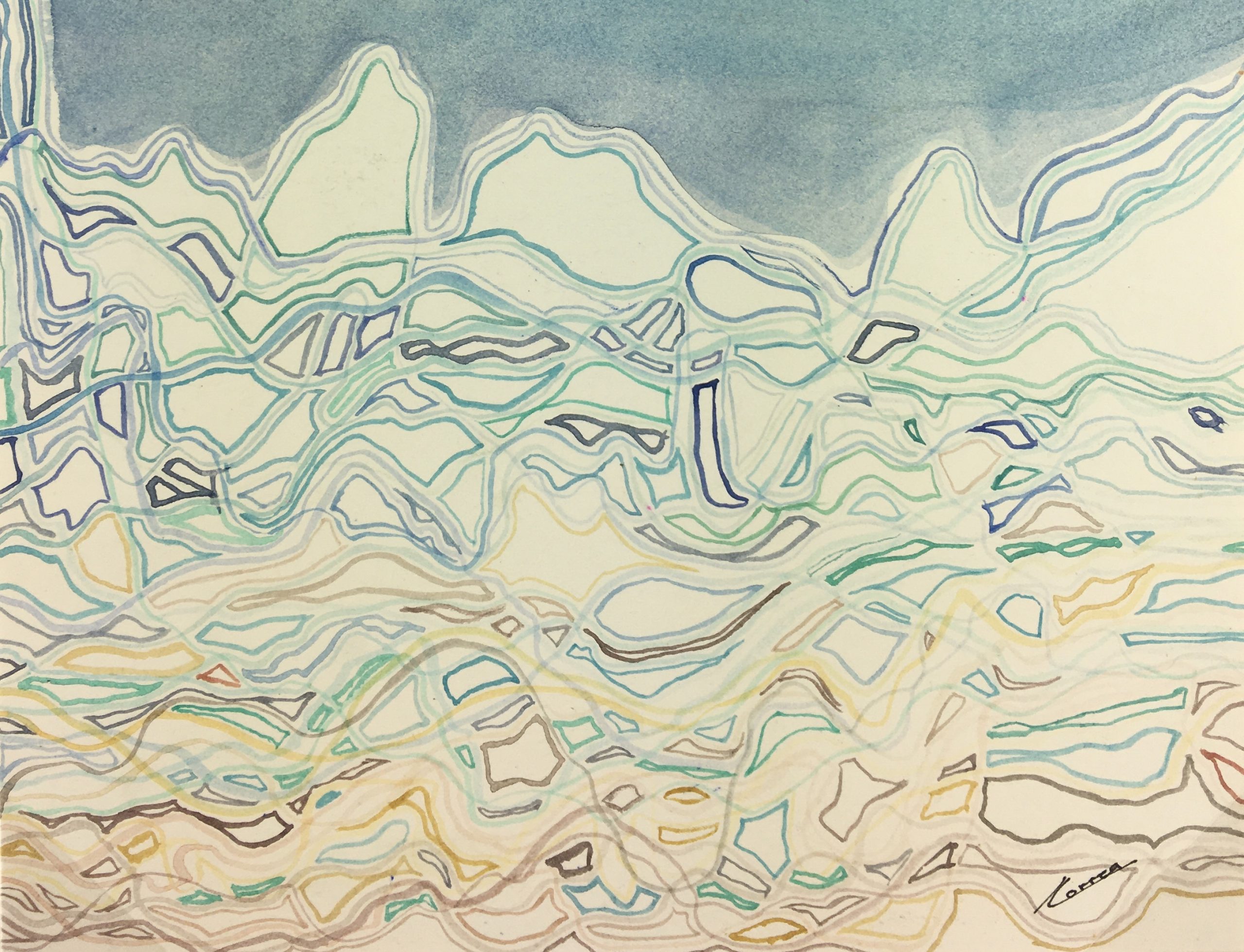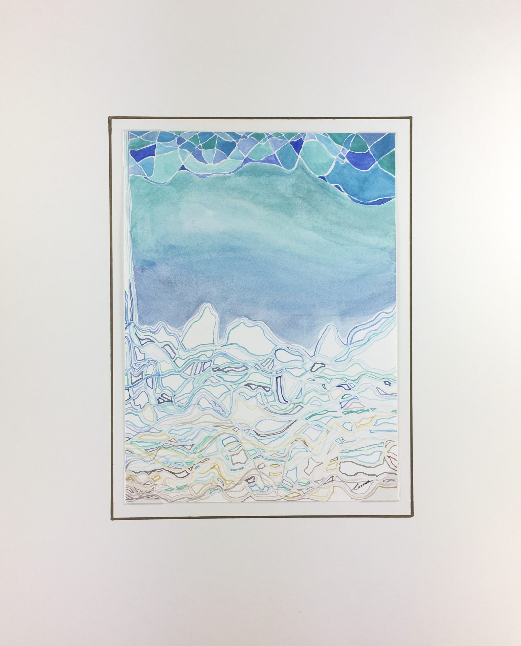 Original Art on paper displayed on a white mat with a gold border. Mat fits a standard-size frame. Archival plastic sleeve and Certificate of Authenticity included. Original Art, 8.5″W x 11.25″H; mat, 16″W x 20″H.