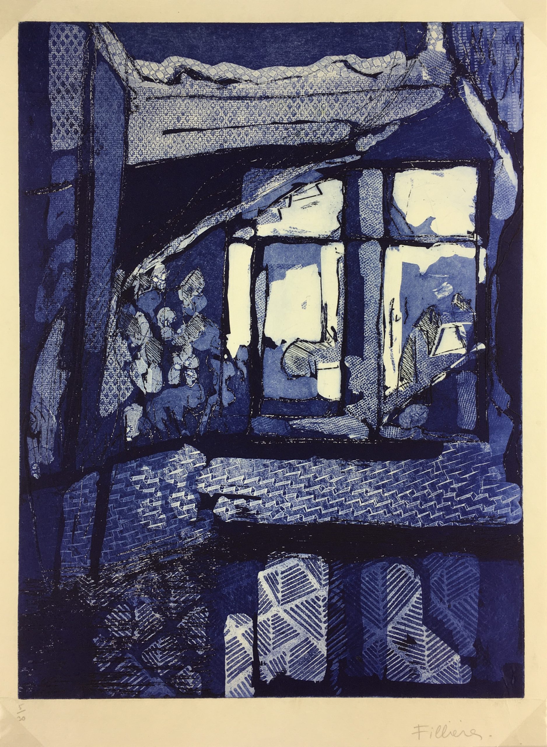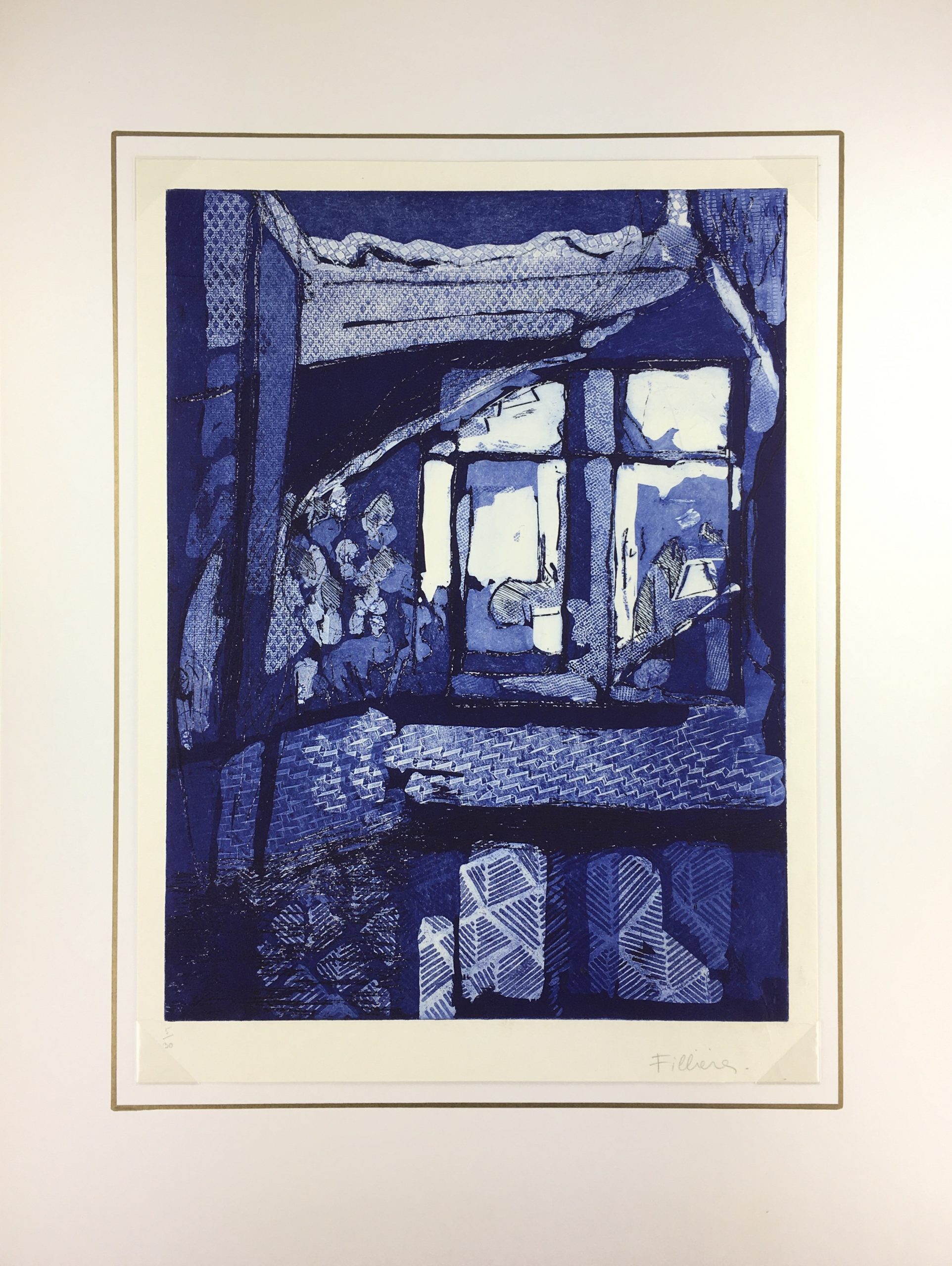 Original Art on paper displayed on a white mat with a gold border. Mat fits a standard-size frame. Archival plastic sleeve and Certificate of Authenticity included. Original Art, 12.75″W x 17.25″H; mat, 18″W x 24″H.