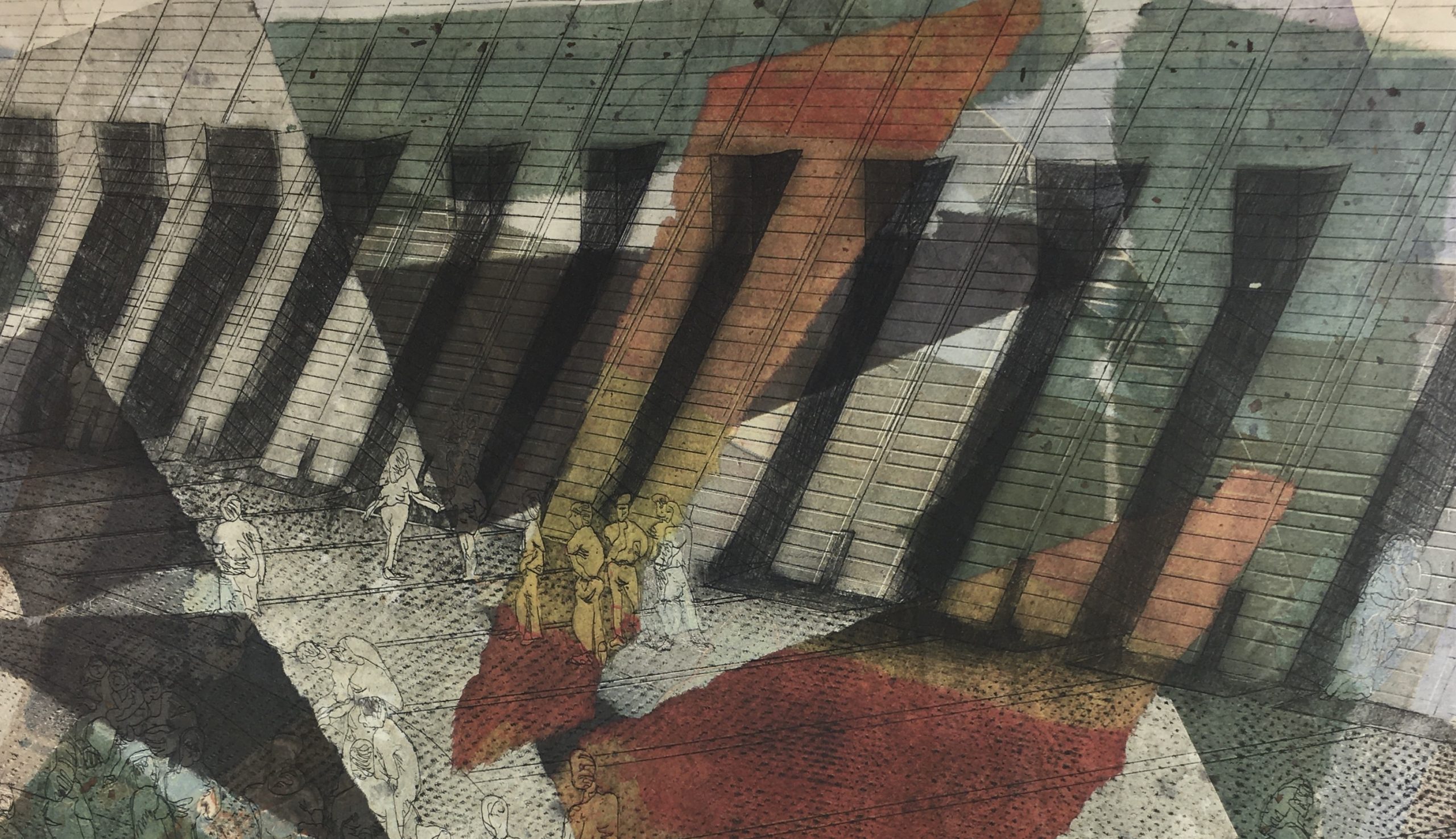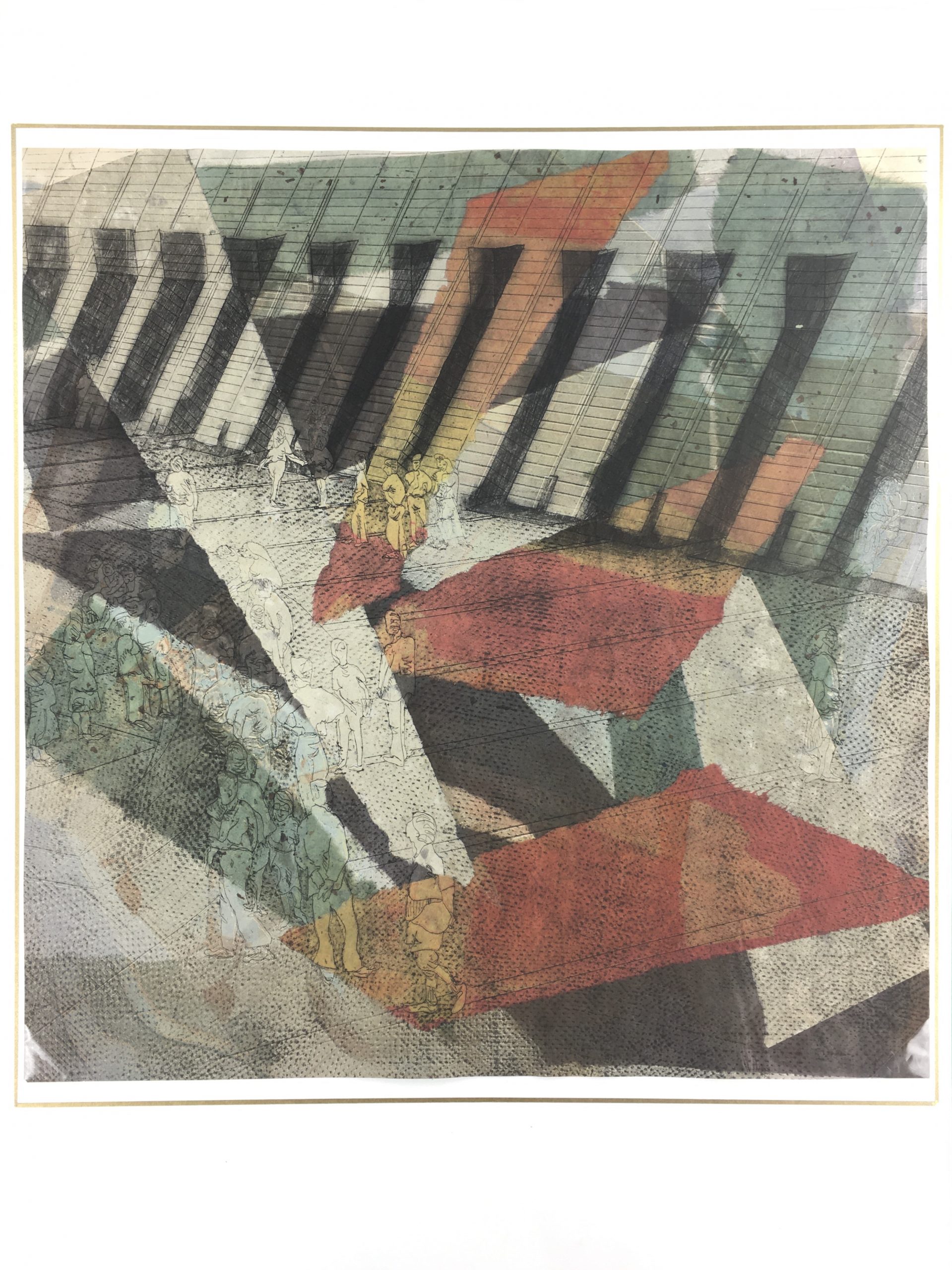 Original Art on paper displayed on a white mat with a gold border. Mat fits a standard-size frame. Archival plastic sleeve and Certificate of Authenticity included. Original Art, 17″W x 17.25″H; mat, 18″W x 24″H.