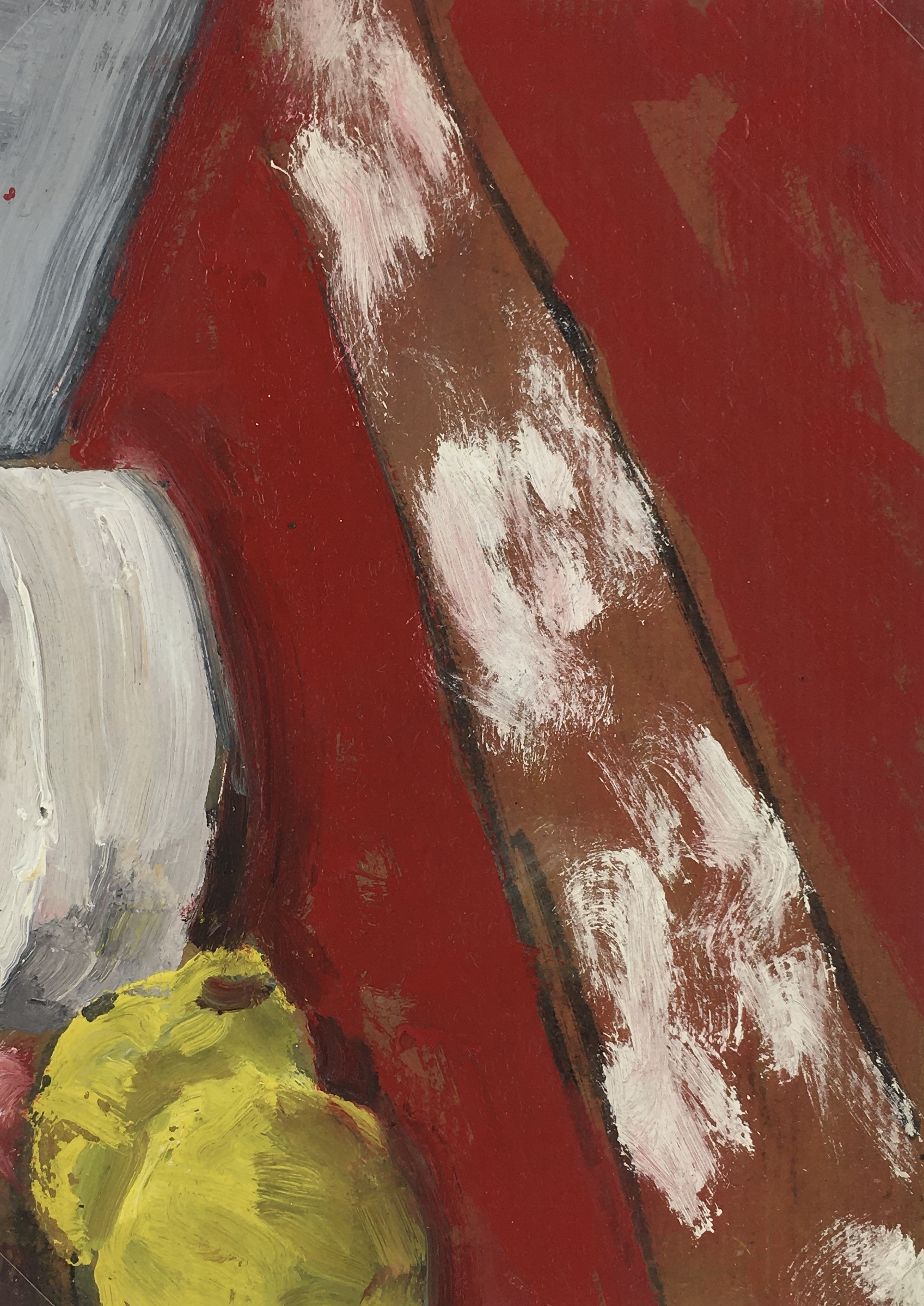 Original Art on paper displayed on a white mat with a gold border. Mat fits a standard-size frame. Archival plastic sleeve and Certificate of Authenticity included. Original Art, 5″W x 7″H; mat, 16″W x 20″H.