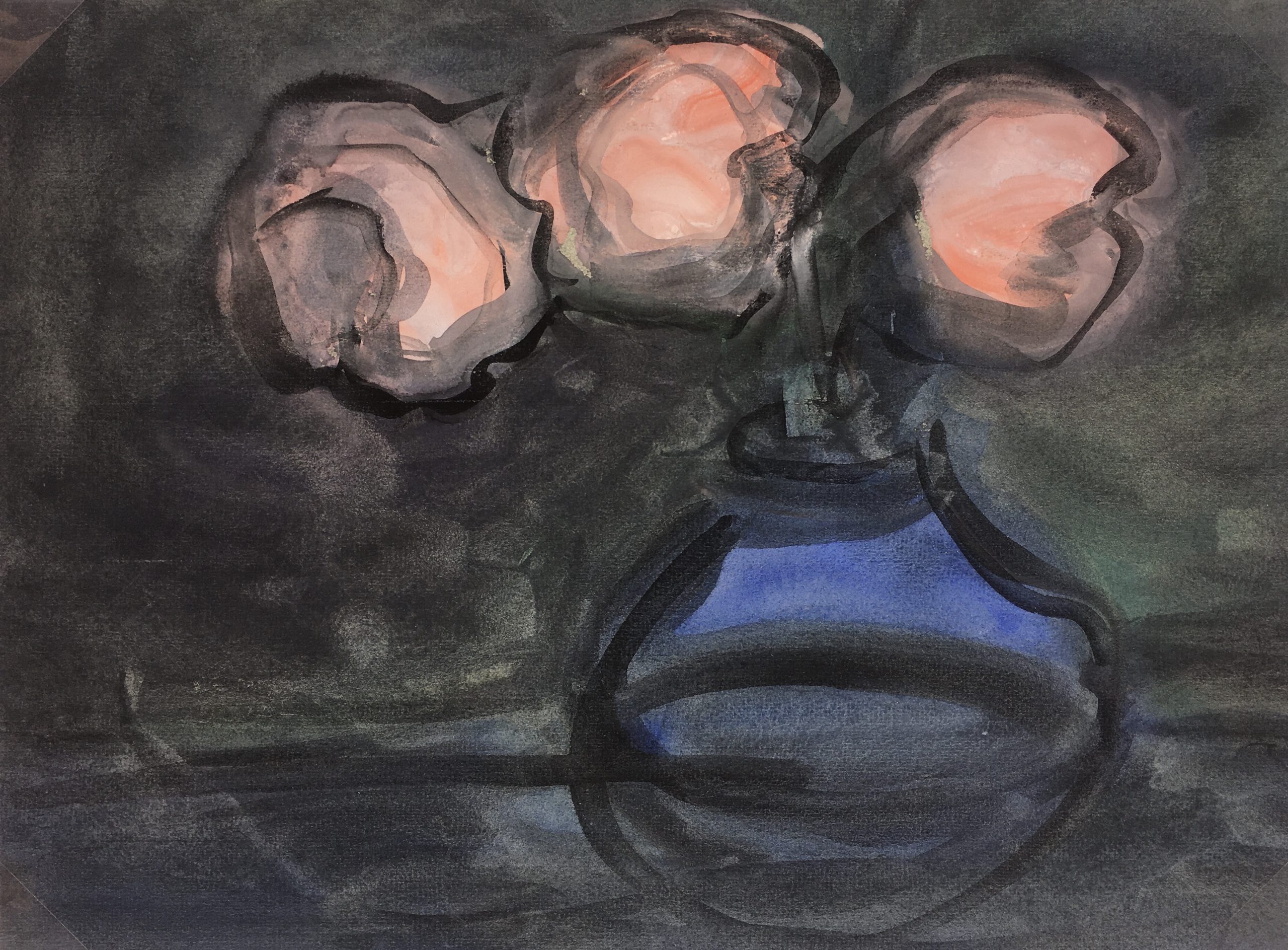 Original Art on paper displayed on a white mat with a gold border. Mat fits a standard-size frame. Archival plastic sleeve and Certificate of Authenticity included. Original Art, 14.25″W x 10.75″H; mat, 24″W x 18″H.