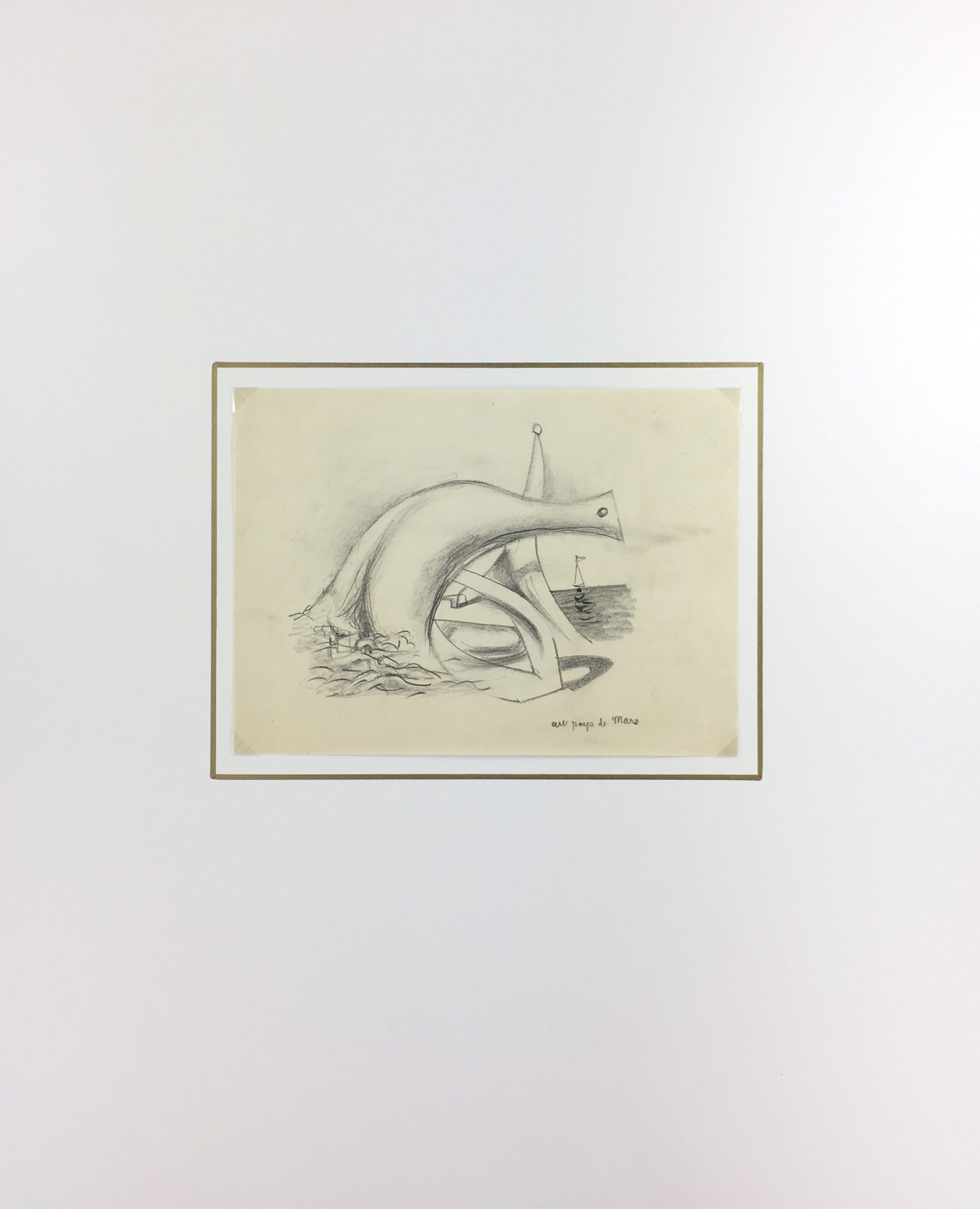 Original Art on paper displayed on a white mat with a gold border. Mat fits a standard-size frame. Archival plastic sleeve and Certificate of Authenticity included. Original Art, 8.25″W x 6″H; mat, 16″W x 20″H.