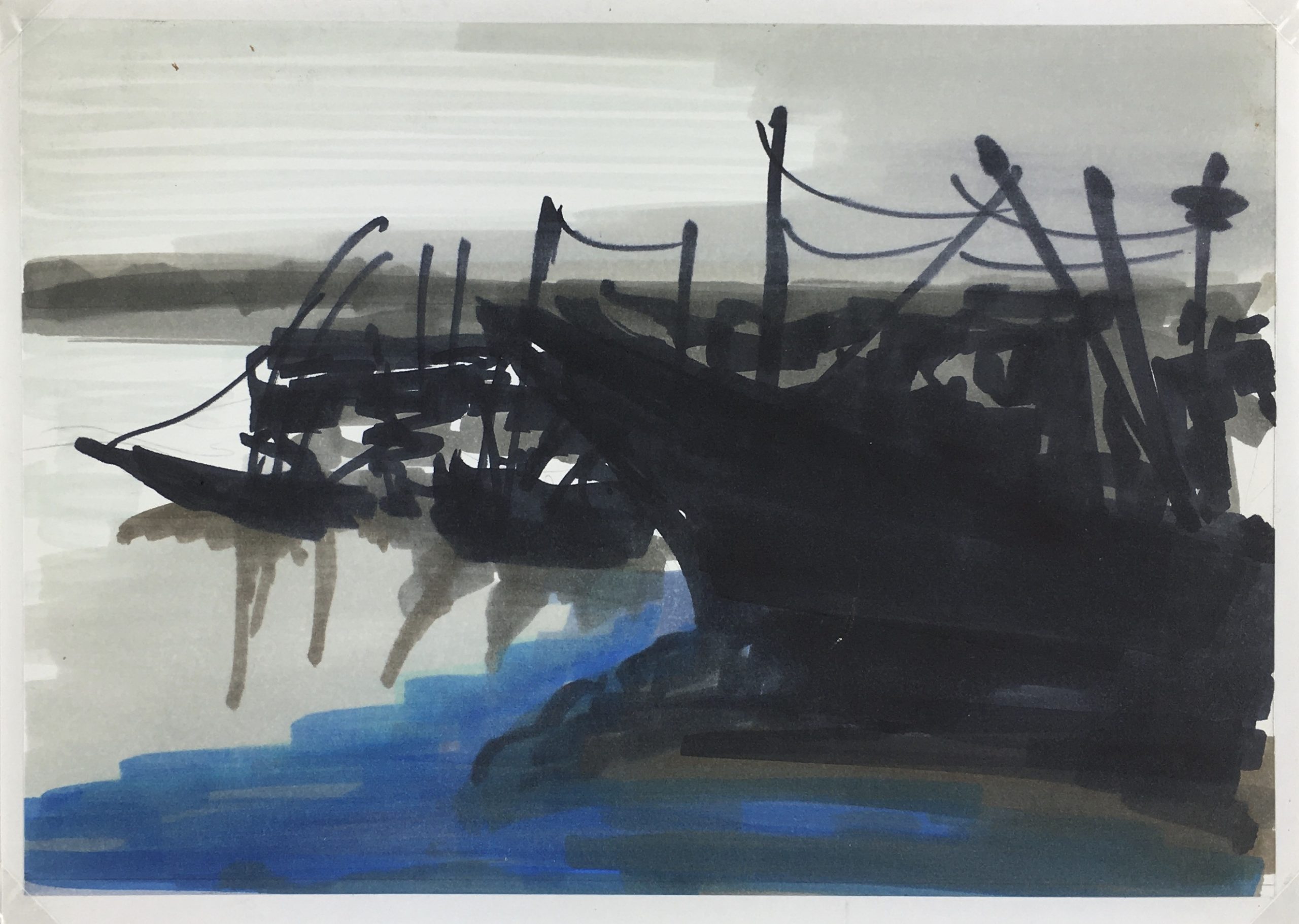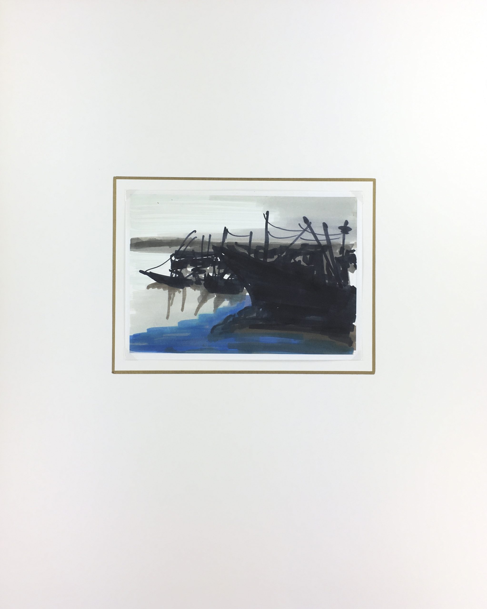 Original Art on paper displayed on a white mat with a gold border. Mat fits a standard-size frame. Archival plastic sleeve and Certificate of Authenticity included. Original Art, 7.75″W x 5.5″H; mat, 16″W x 20″H.
