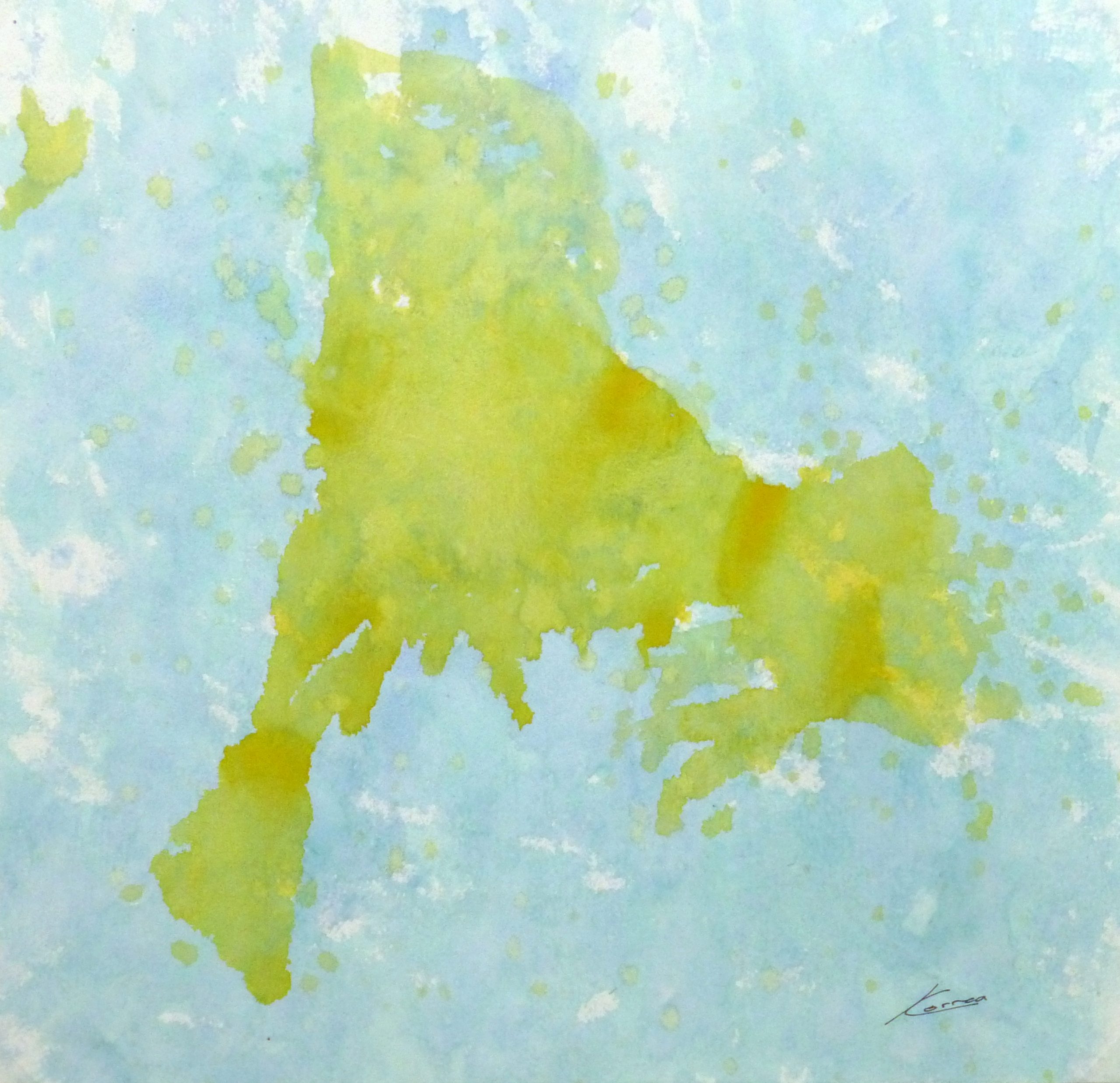 Dynamic abstract watercolor by Merida, Mexico, artist Correa. Signed lower right.