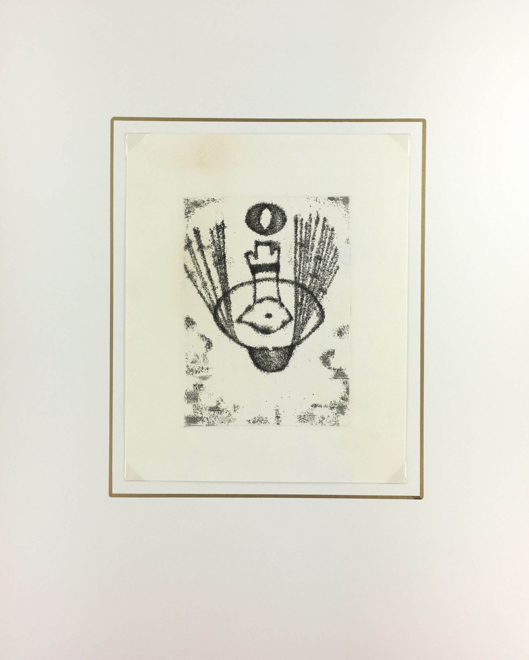 Original Art on paper displayed on a white mat with a gold border. Mat fits a standard-size frame. Archival plastic sleeve and Certificate of Authenticity included. Original Art, 8.5″W x 10.25″H; mat, 16″W x 20″H.