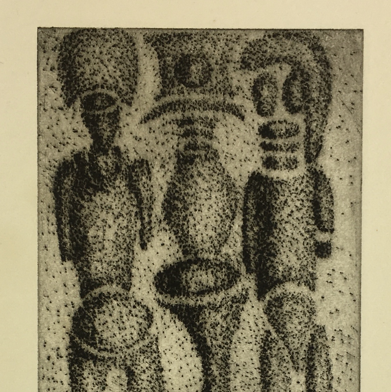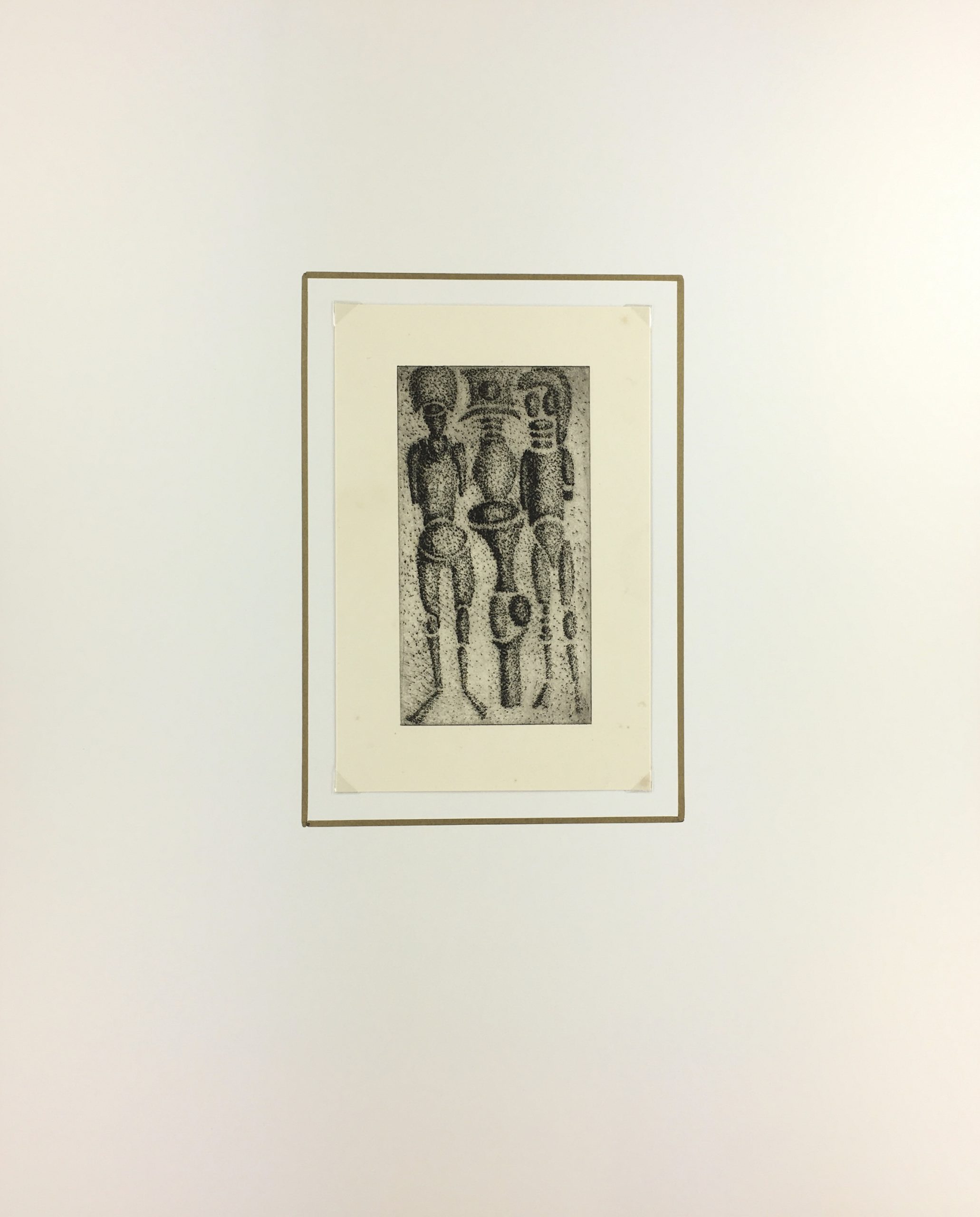 Original Art on paper displayed on a white mat with a gold border. Mat fits a standard-size frame. Archival plastic sleeve and Certificate of Authenticity included. Original Art, 5.25″W x 8″H; mat, 16″W x 20″H.