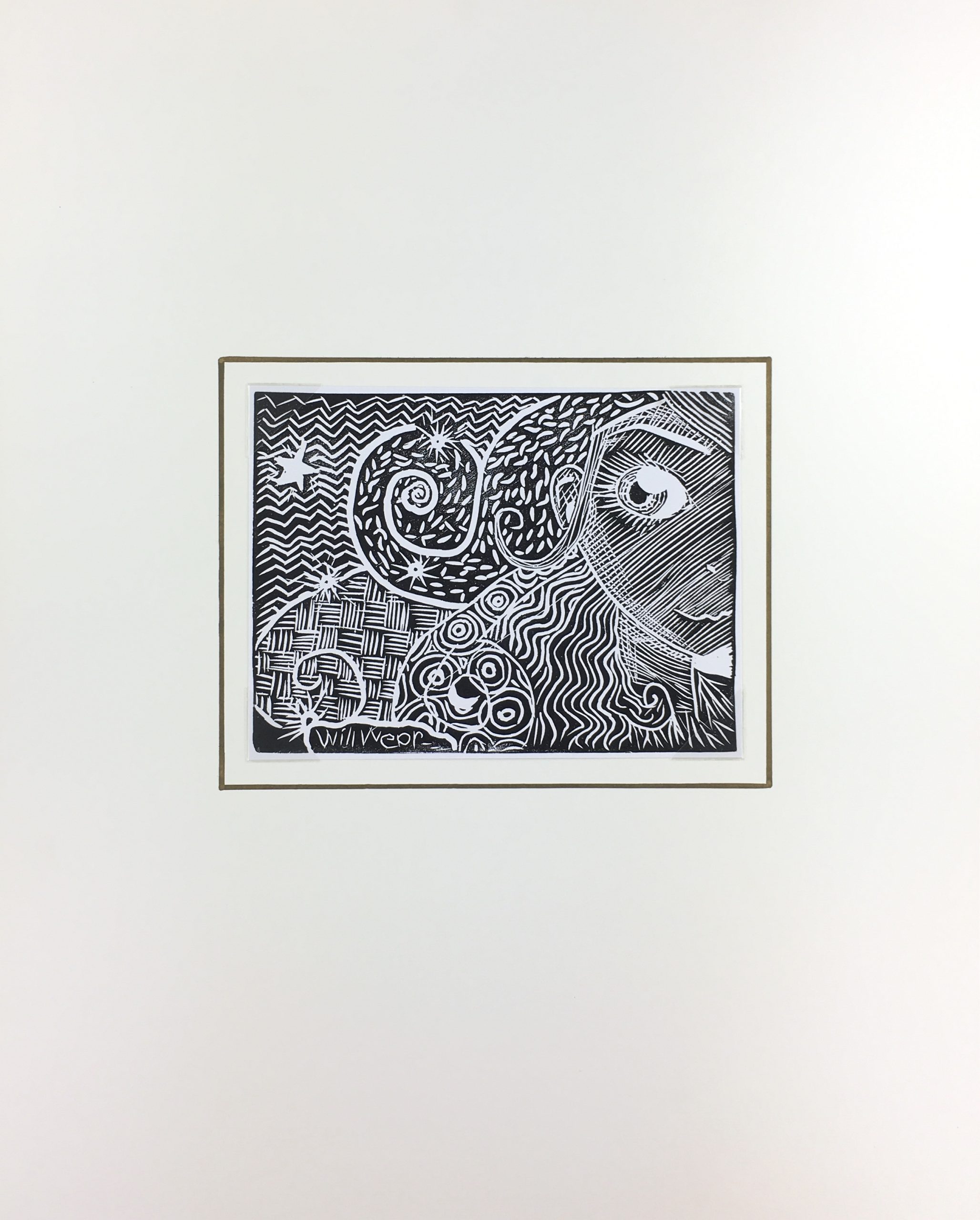 Original Art on paper displayed on a white mat with a gold border. Mat fits a standard-size frame. Archival plastic sleeve and Certificate of Authenticity included. Original Art, 8″W x 6″H; mat, 16″W x 20″H.