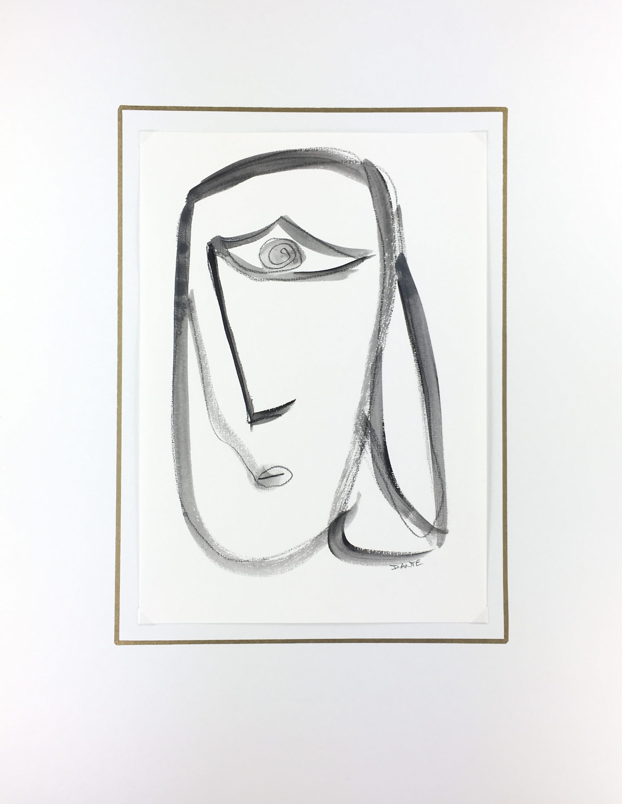 Original Art on paper displayed on a white mat with a gold border. Mat fits a standard-size frame. Archival plastic sleeve and Certificate of Authenticity included. Original Art, 9″W x 12″H; mat, 16″W x 20″H.