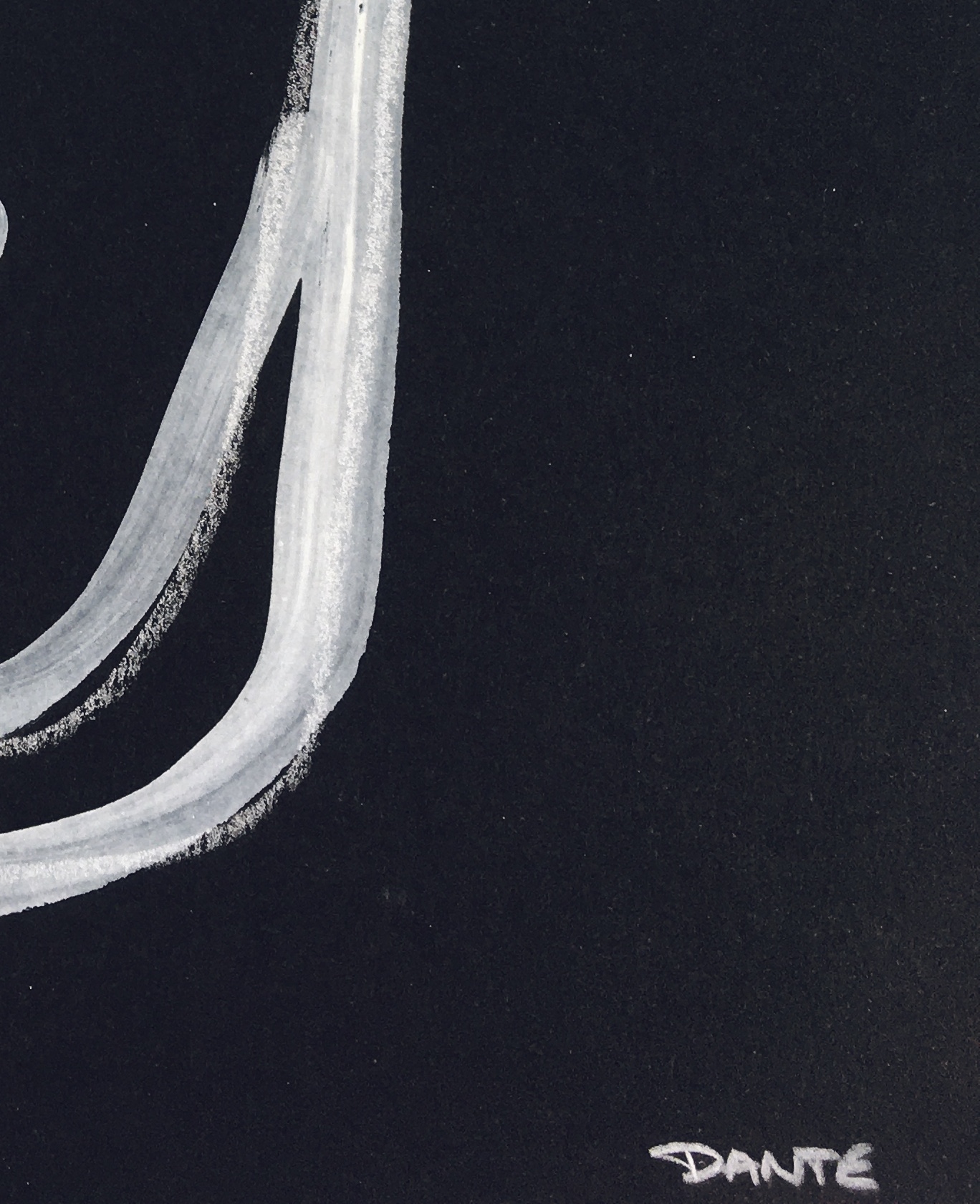 Original Art on paper displayed on a white mat with a gold border. Mat fits a standard-size frame. Archival plastic sleeve and Certificate of Authenticity included. Original Art, 9″W x 12″H; mat, 16″W x 20″H.